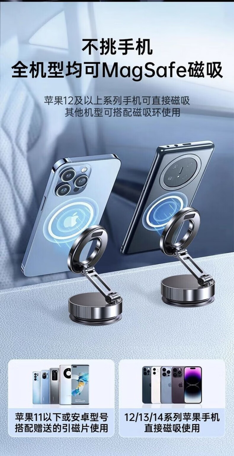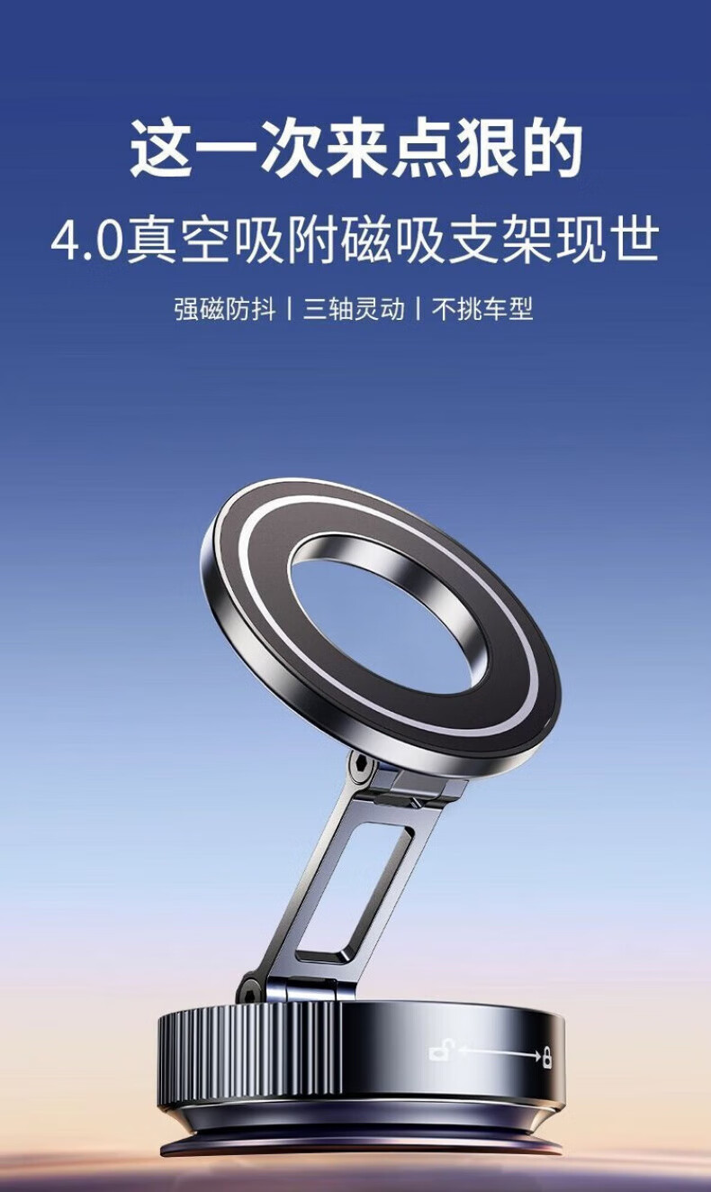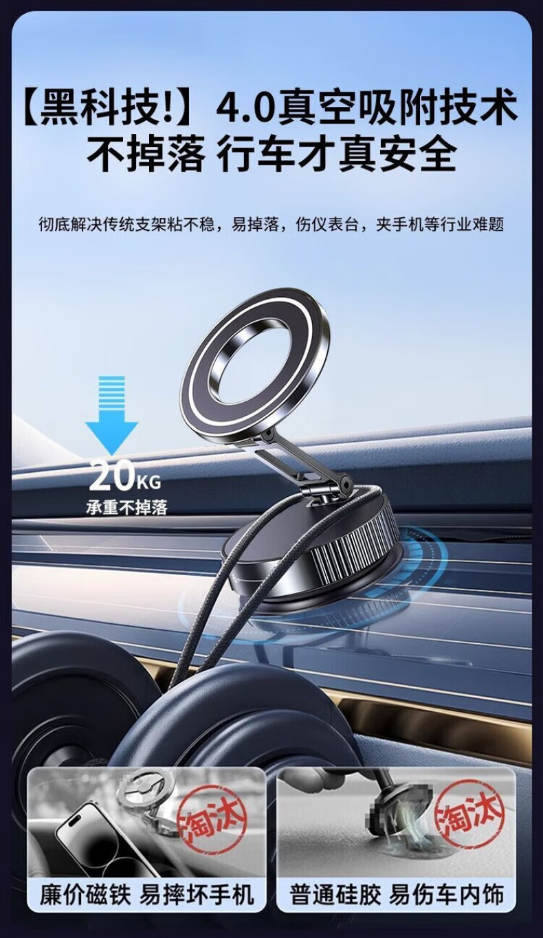 行后真空吸盘磁吸手机支架多功能车载2025新款中控台防抖导航车内专用 【黑色】真空吸附/双层磁吸附/增