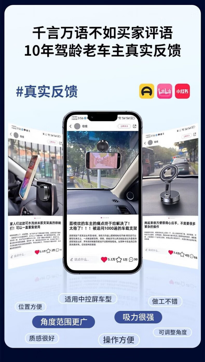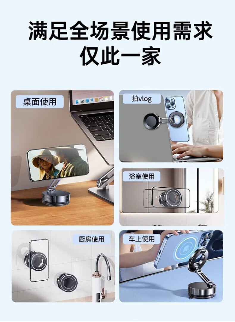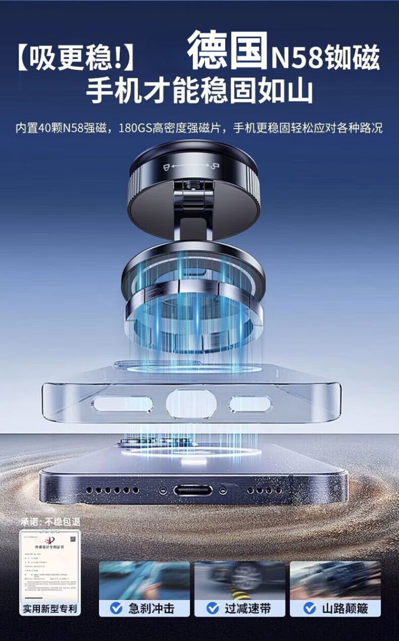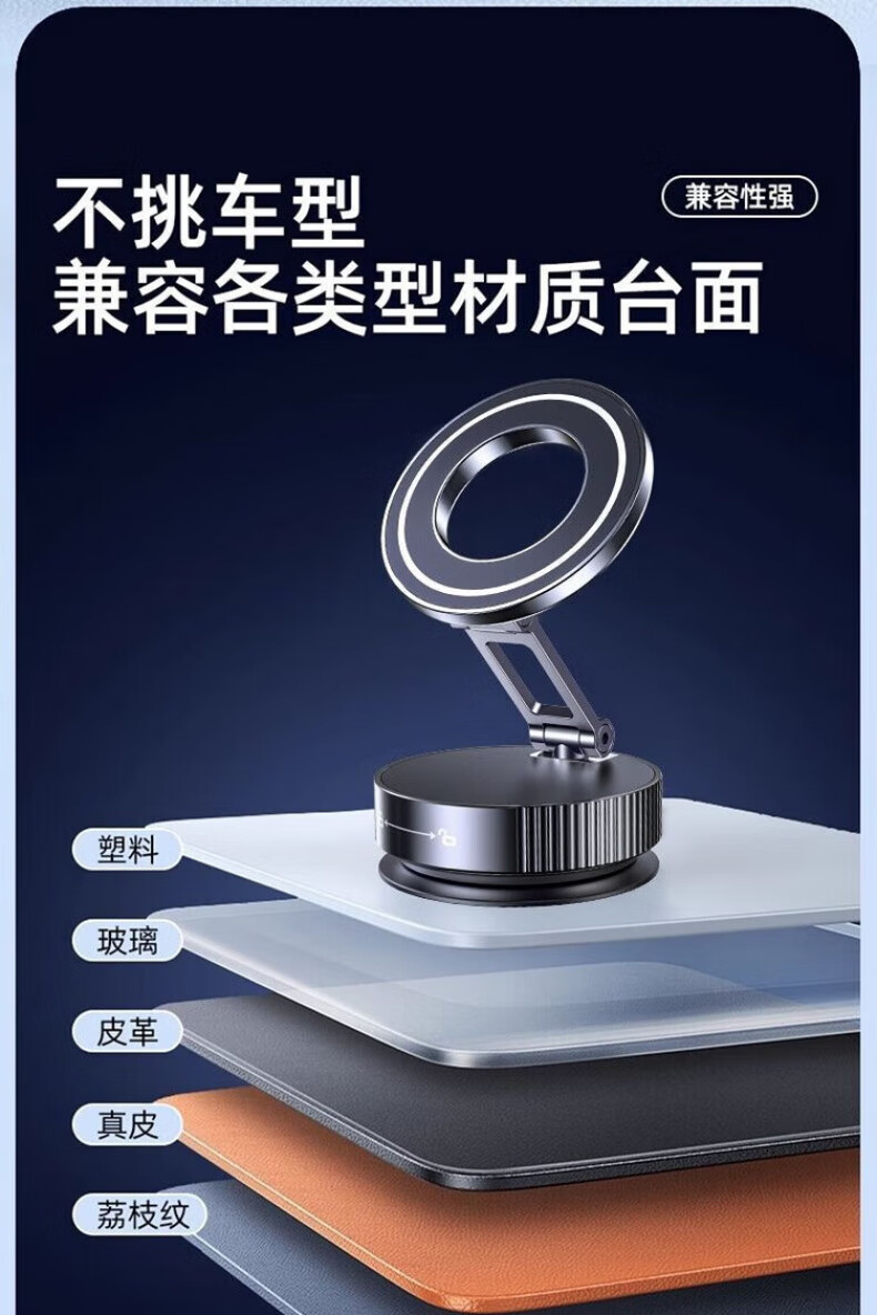 行后真空吸盘磁吸手机支架多功能车载2025新款中控台防抖导航车内专用 【黑色】真空吸附/双层磁吸附/增