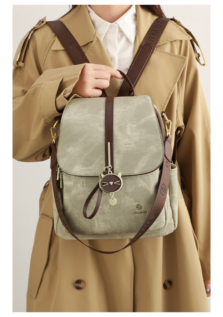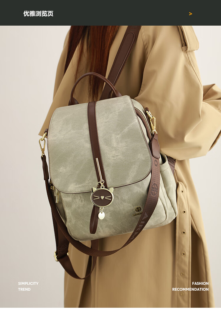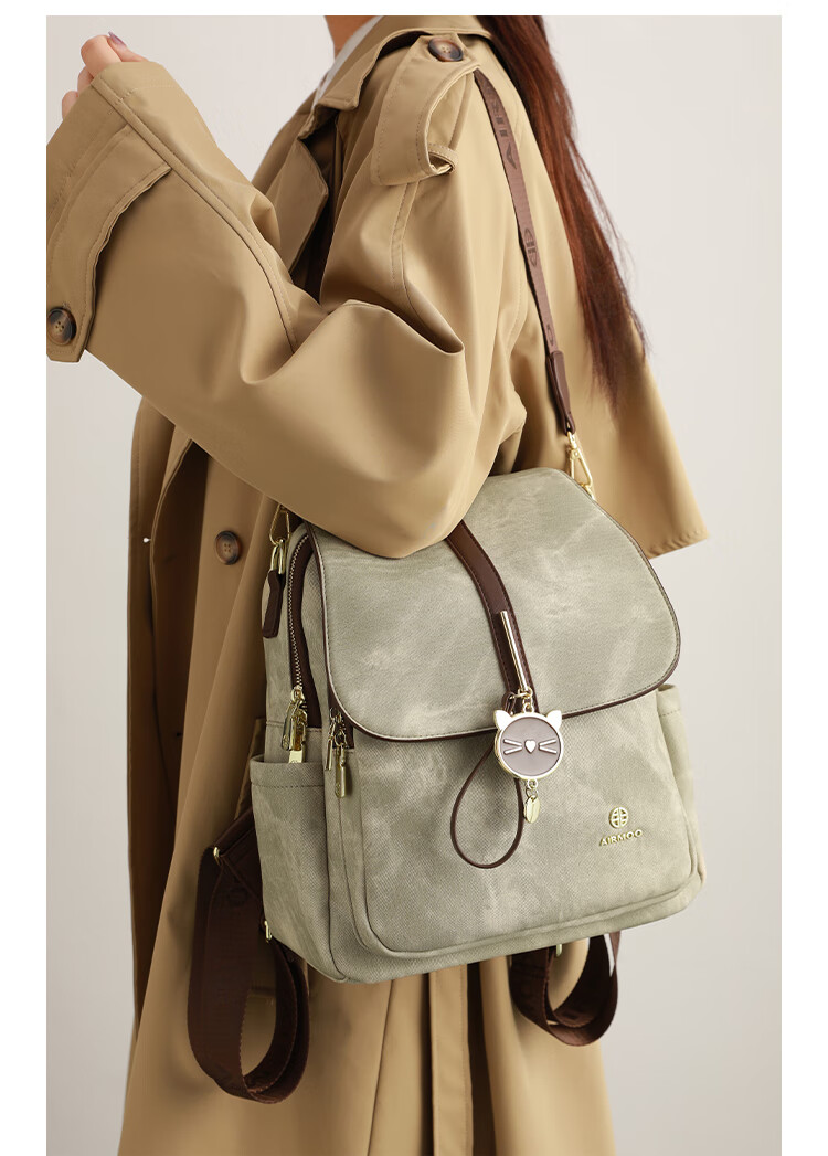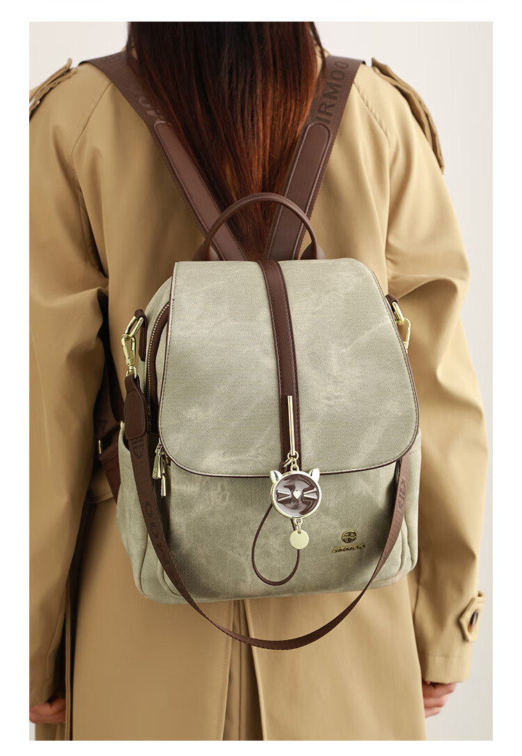 查瑞娜(ZAR&RUILR)香港代购大容量休闲双肩包包女2025新款简约时尚轻便可单肩背包 绿色 关注店铺送礼袋