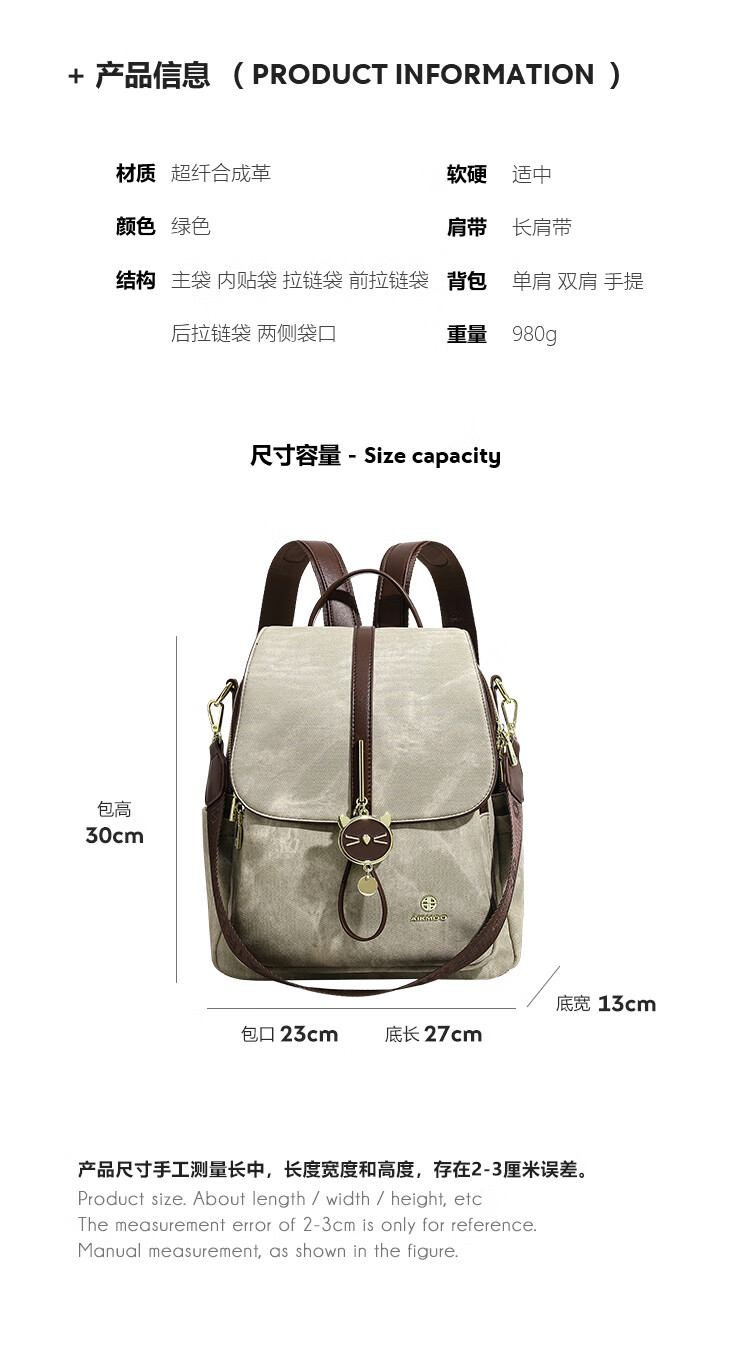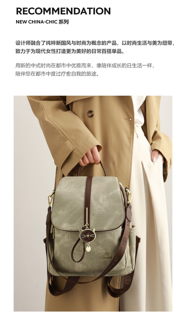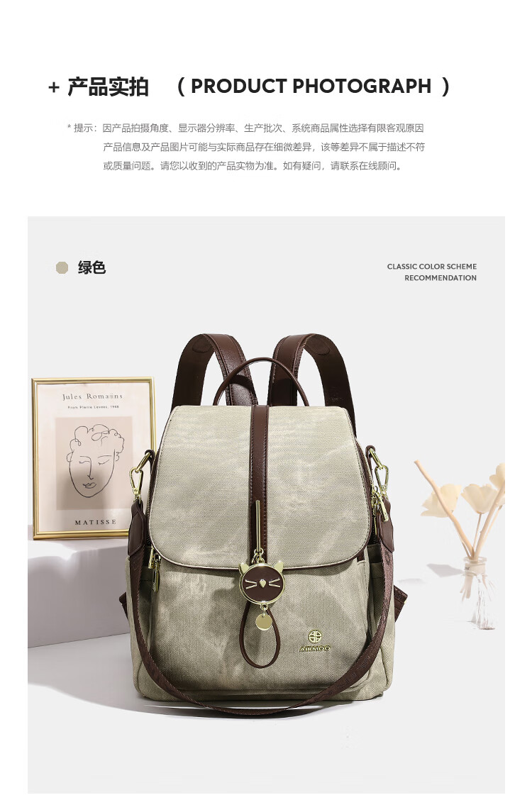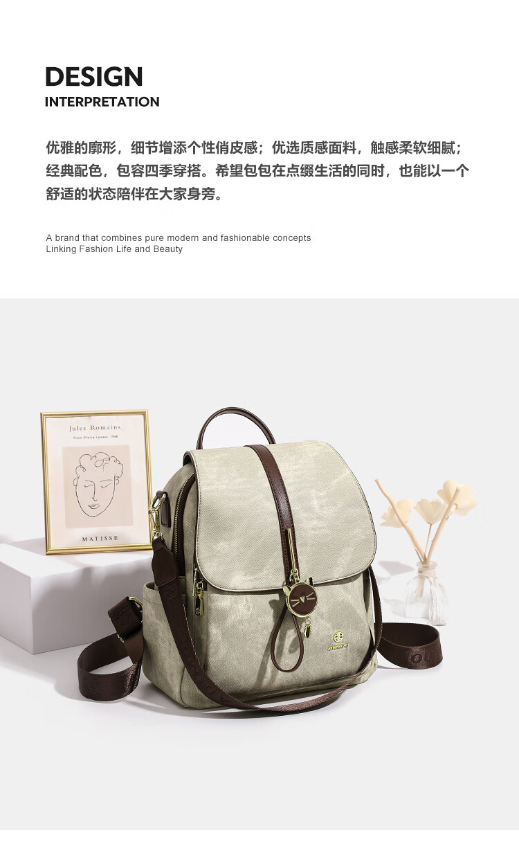 查瑞娜(ZAR&RUILR)香港代购大容量休闲双肩包包女2025新款简约时尚轻便可单肩背包 绿色 关注店铺送礼袋