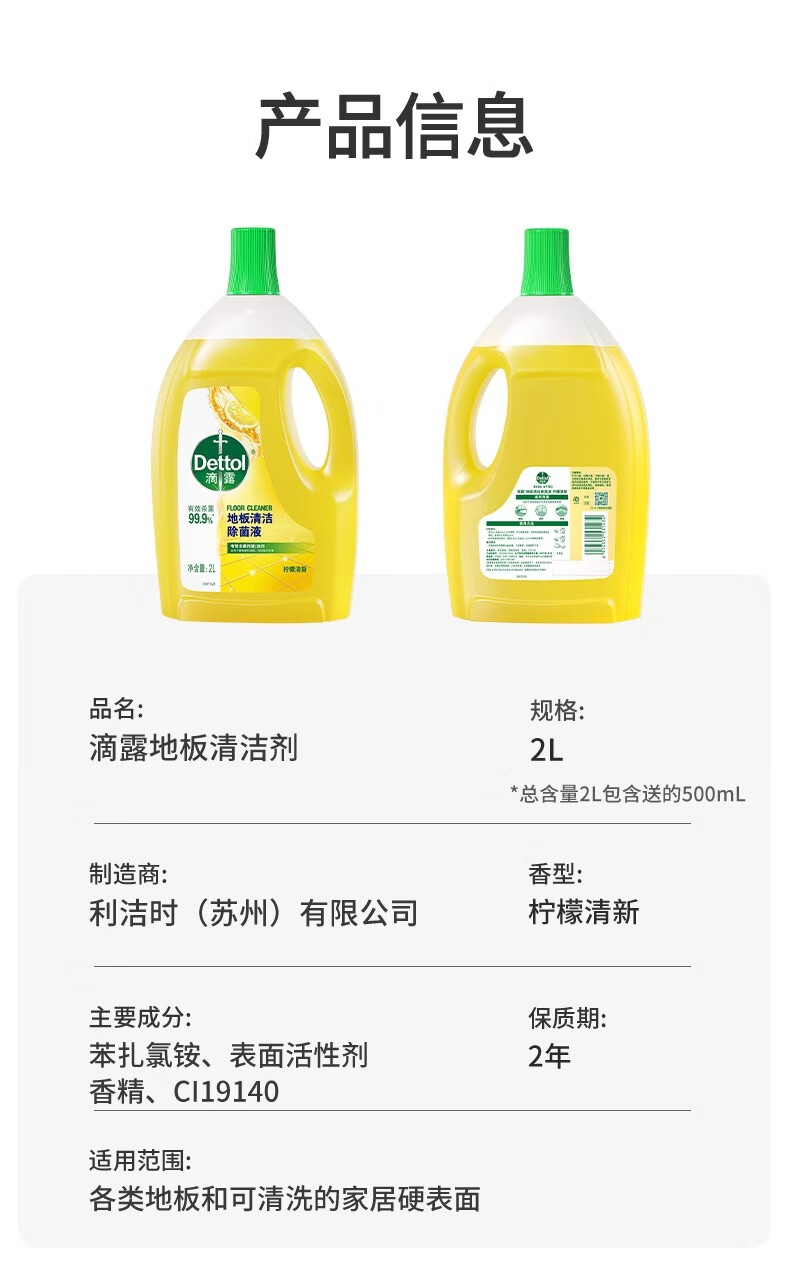 滴露Dettol/滴露地板清洁剂2L瓷砖木地板拖地用清洁液除菌去污柠檬香 柠檬香2L
