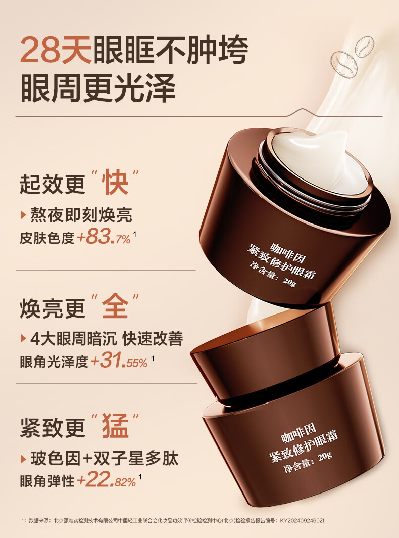 瞳话咖啡因眼霜提拉紧致修护淡化眼圈圈熬夜熊猫眼补水保湿紧致眼肌 咖啡因眼霜两盒 咖啡因眼霜