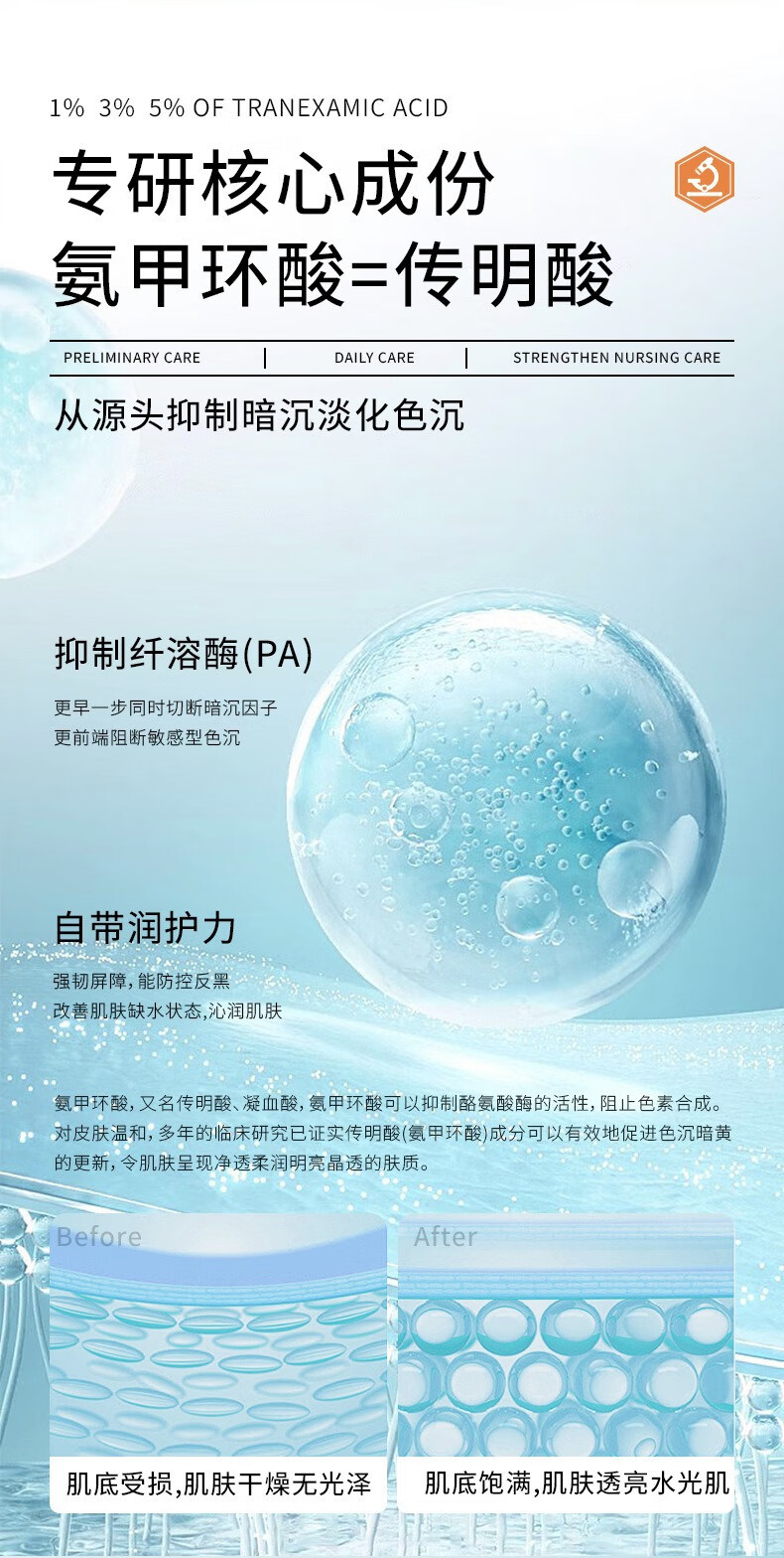 氨甲环酸精华液湿敷液医用去黄褐斑5%械字号改善暗沉提亮肤色 氨甲i环酸精华液(5%)五瓶特惠