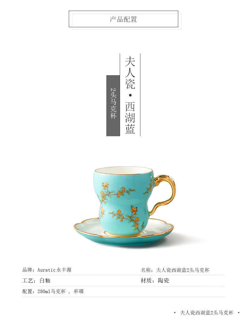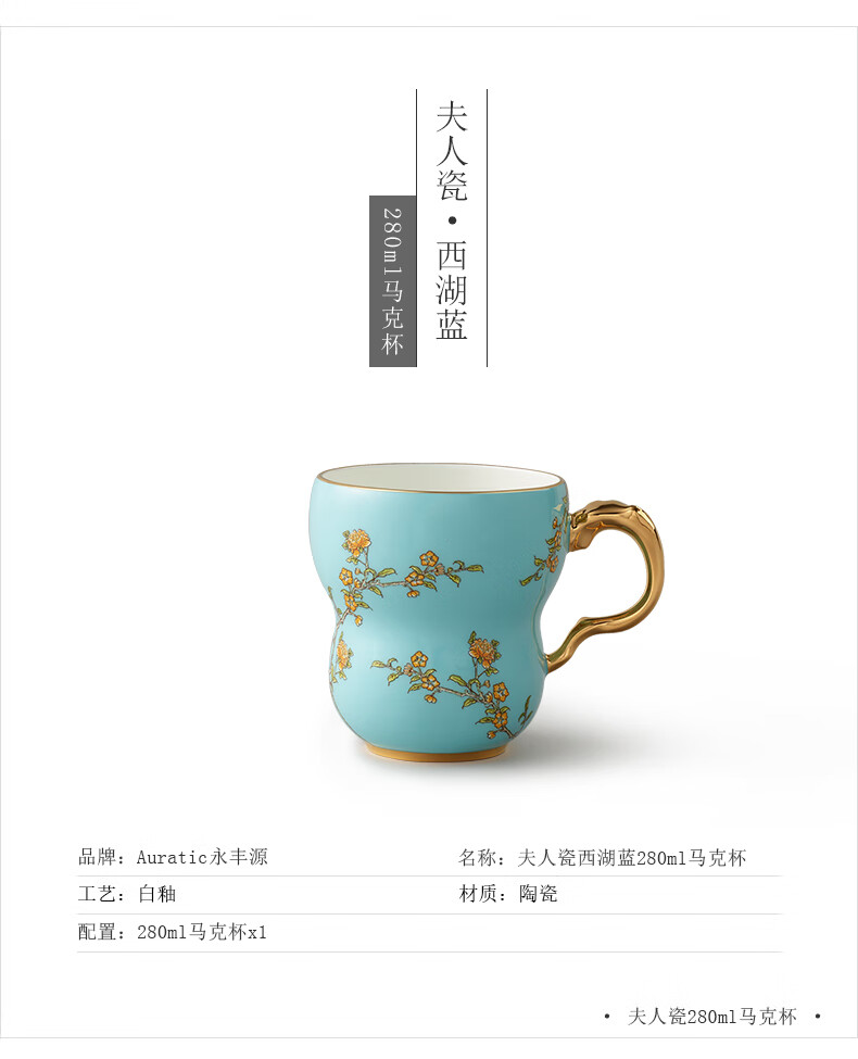 永丰源(auratic)西湖蓝马克杯系列 清心/兰心/琴瑟对杯 陶瓷水杯高颜值 杯子套装 清心单杯 360ml