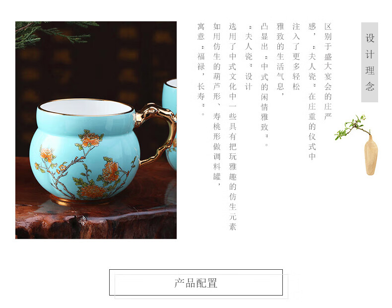 孔家钧窑官窑钧瓷持御壶功夫茶具家用泡茶壶 【套装 一壶六杯】 260ml