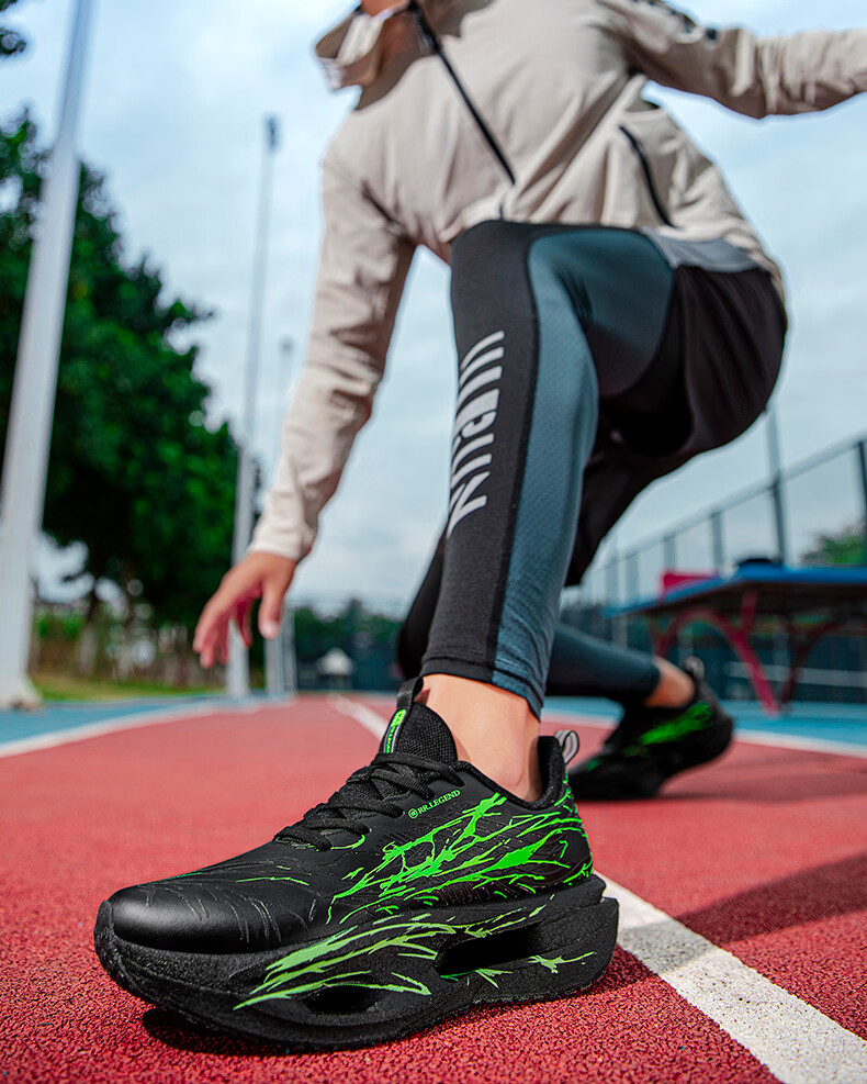 新款赤兔9PRO荧光夜跑鞋学生冬季加绒超轻防滑减震碳板运动童鞋 EM608黑金 加绒 44 270mm