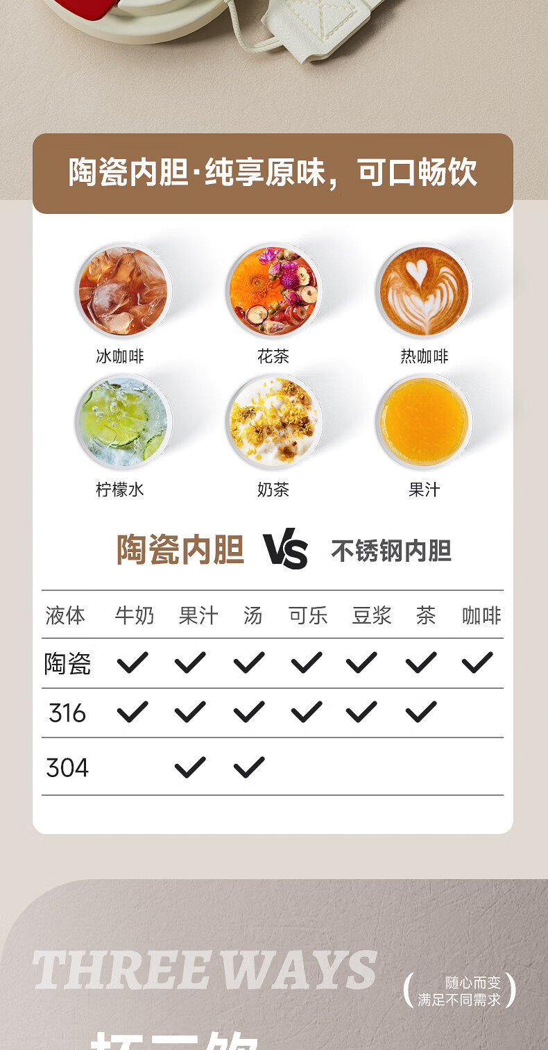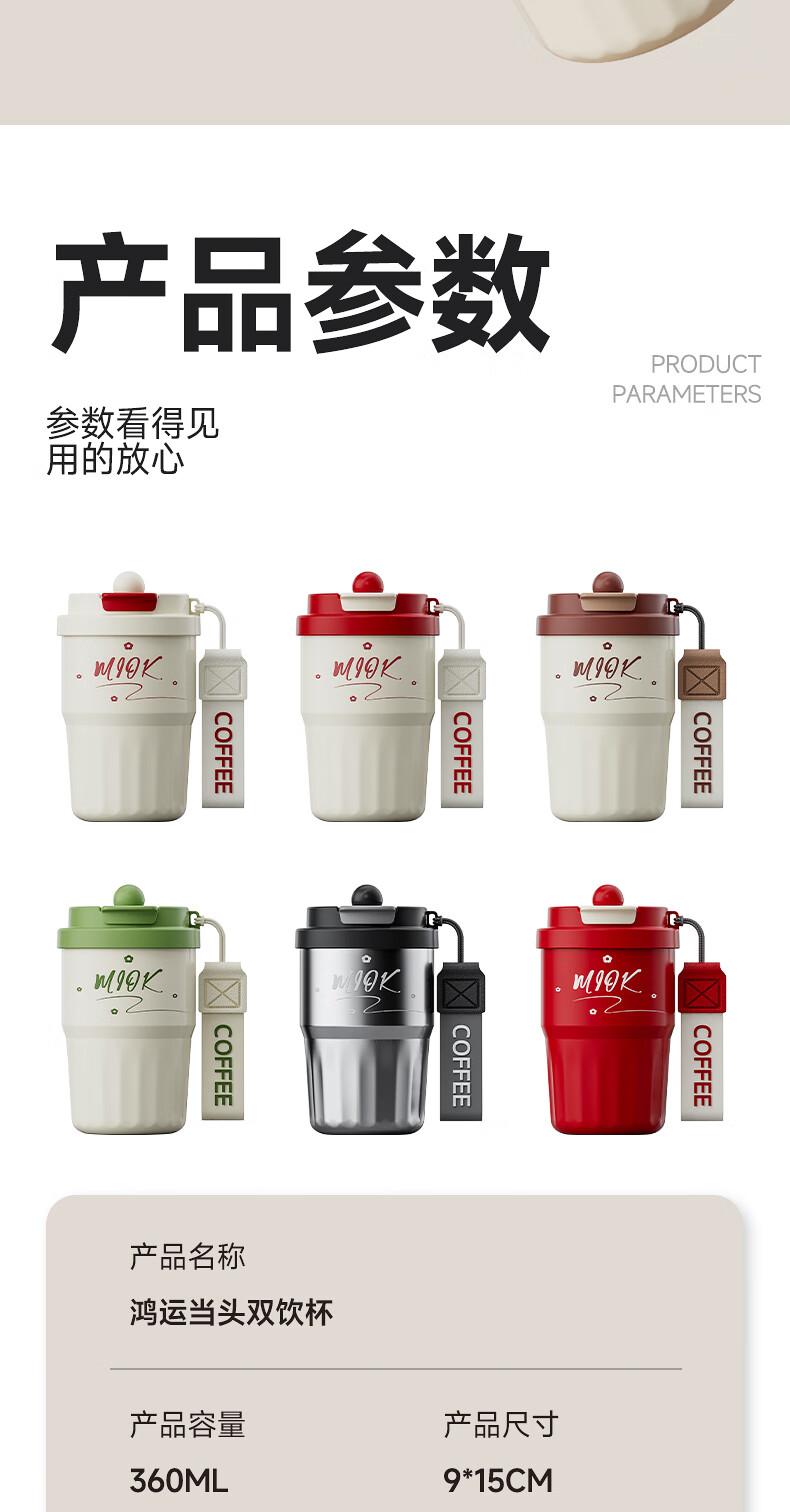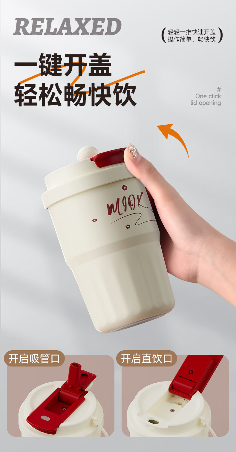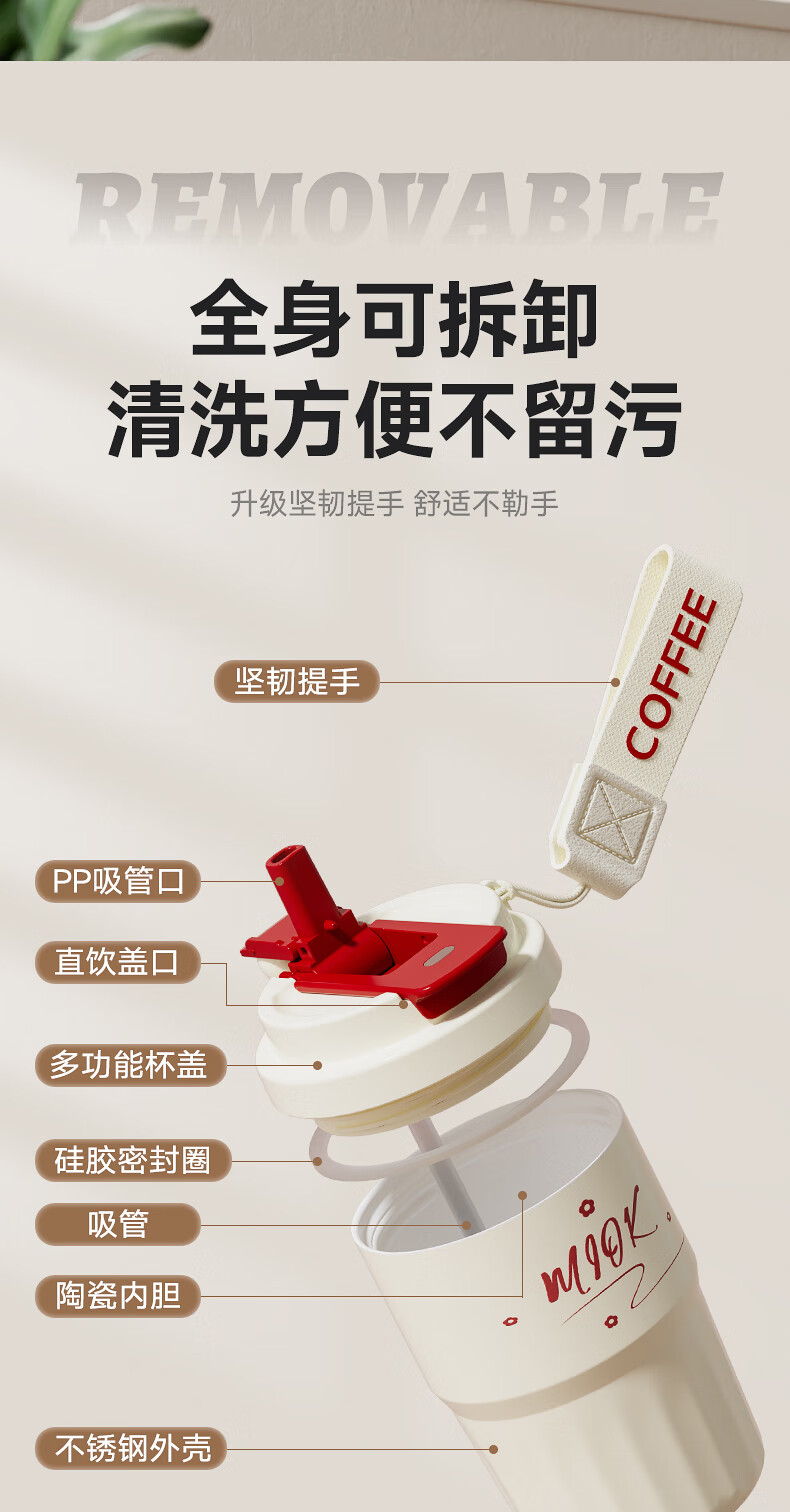 MIOK保温杯女士咖啡杯316不锈钢陶瓷内胆水杯高颜值学生便携随行杯子 清新绿 360ml 【陶瓷内胆+提绳】
