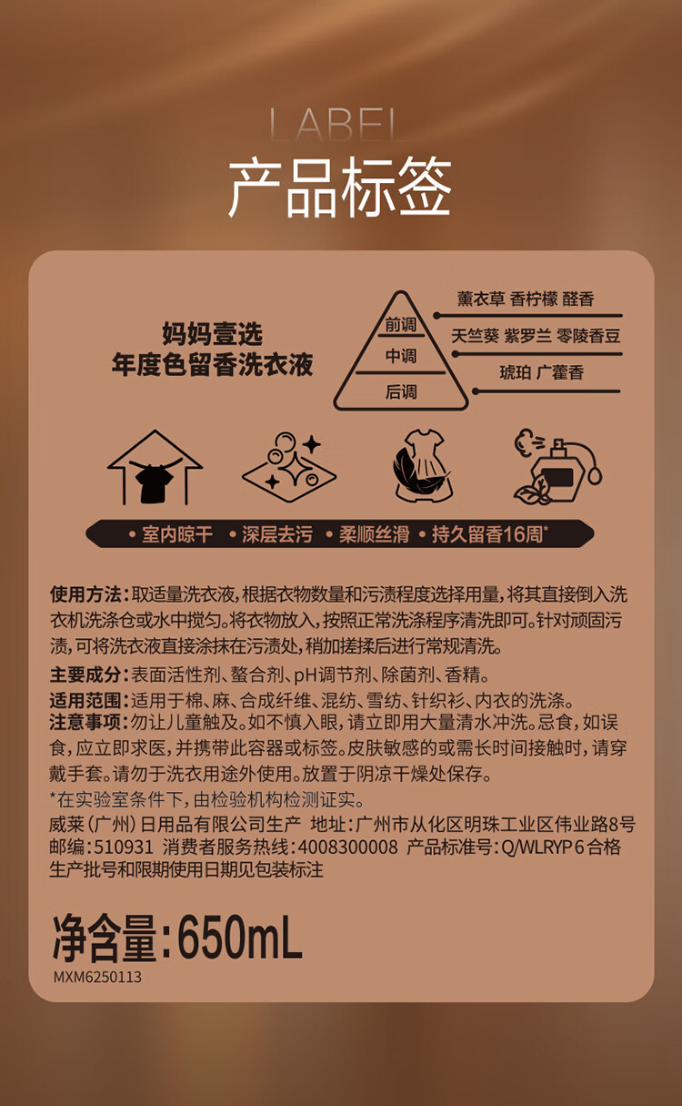 妈妈壹选MOKKA MOUSSE 2025年度色 洗衣液650ml 持久留香112天