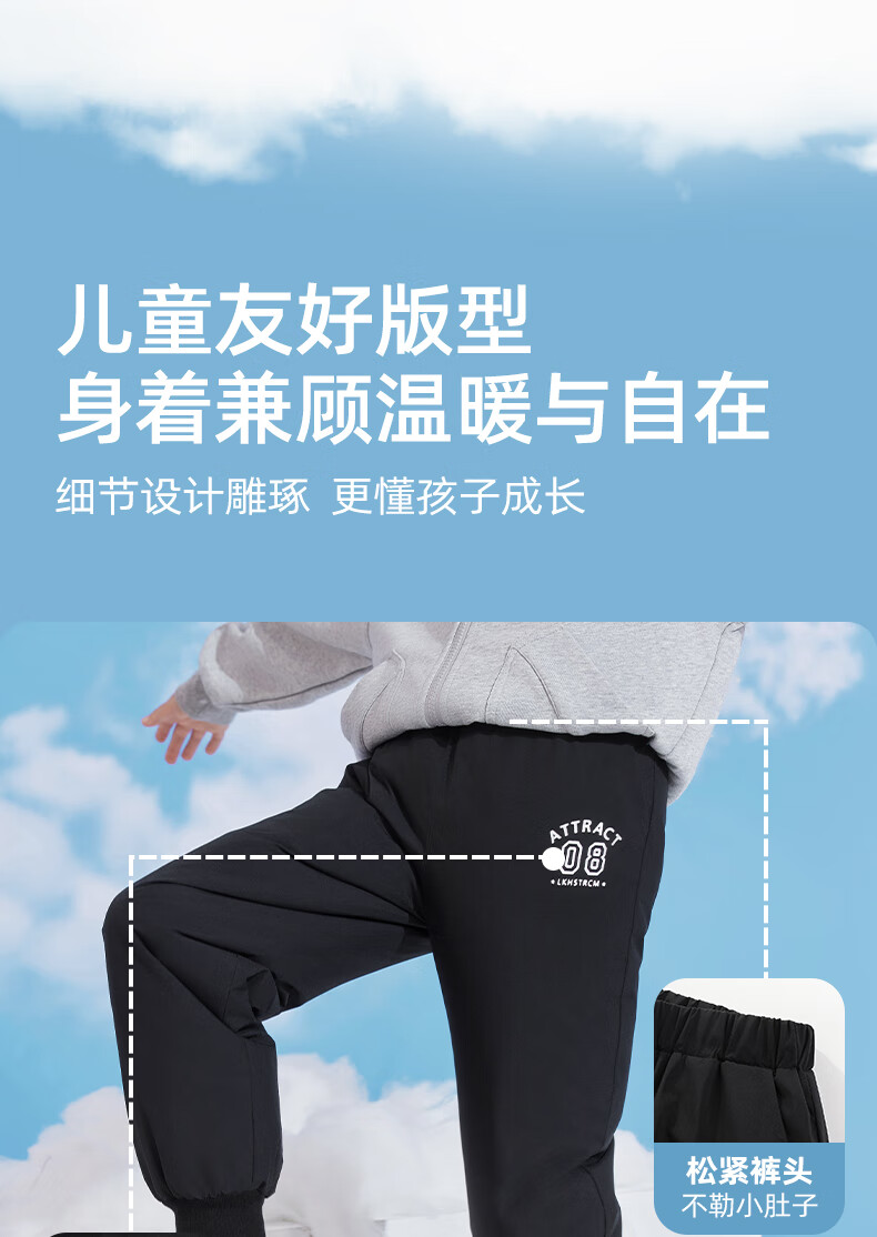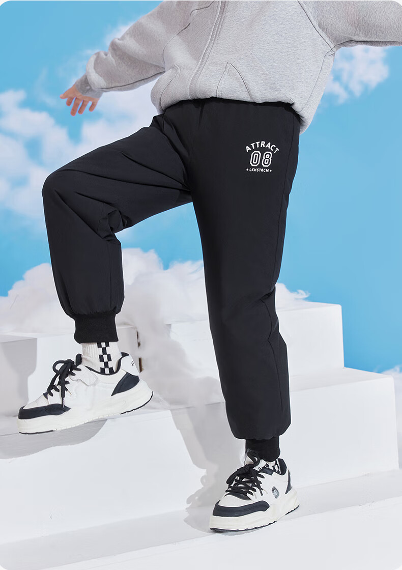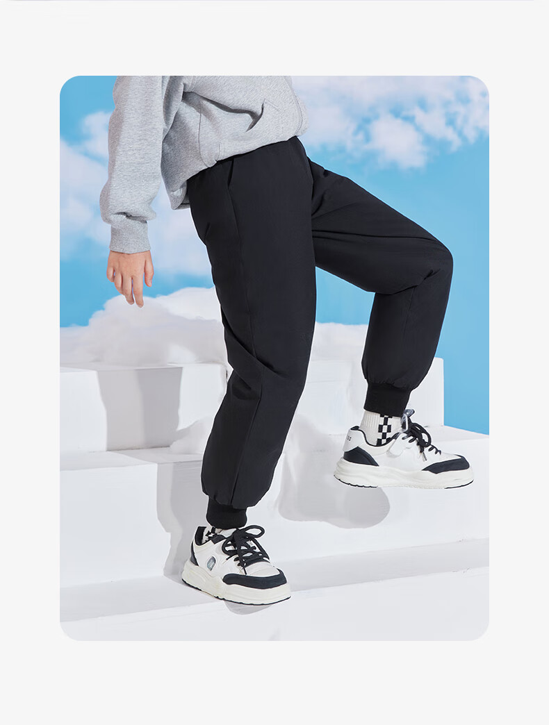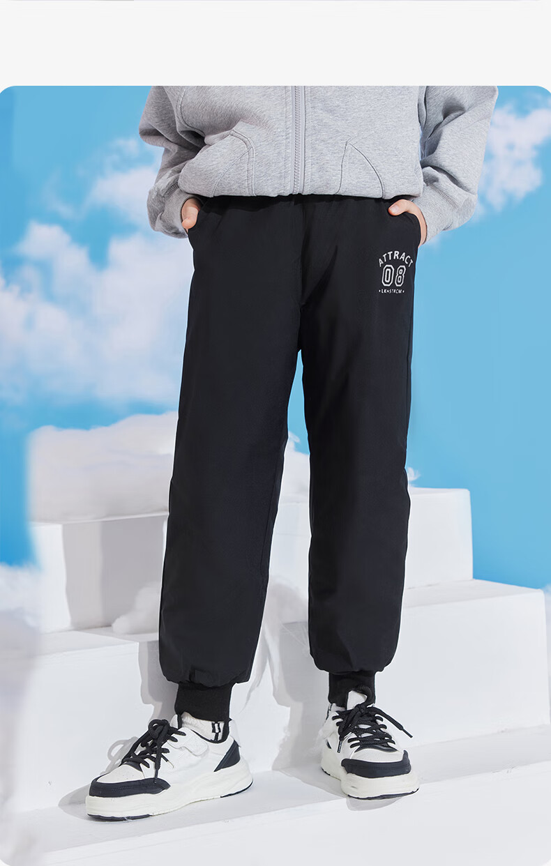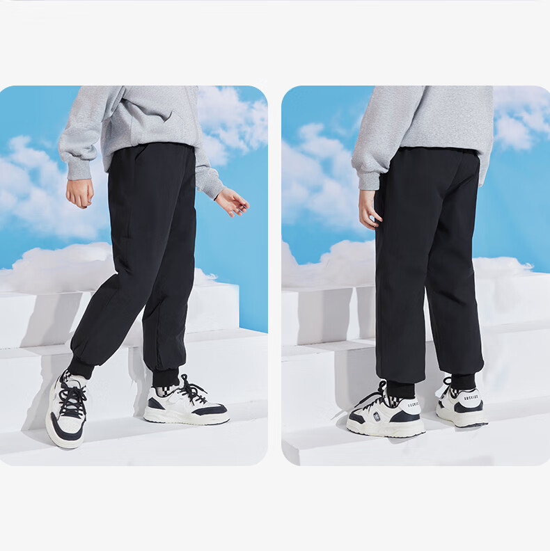 雪中飞儿童羽绒裤新款冬季男女童中大童休闲百搭加厚保暖长裤工装羽绒裤 黑色 170