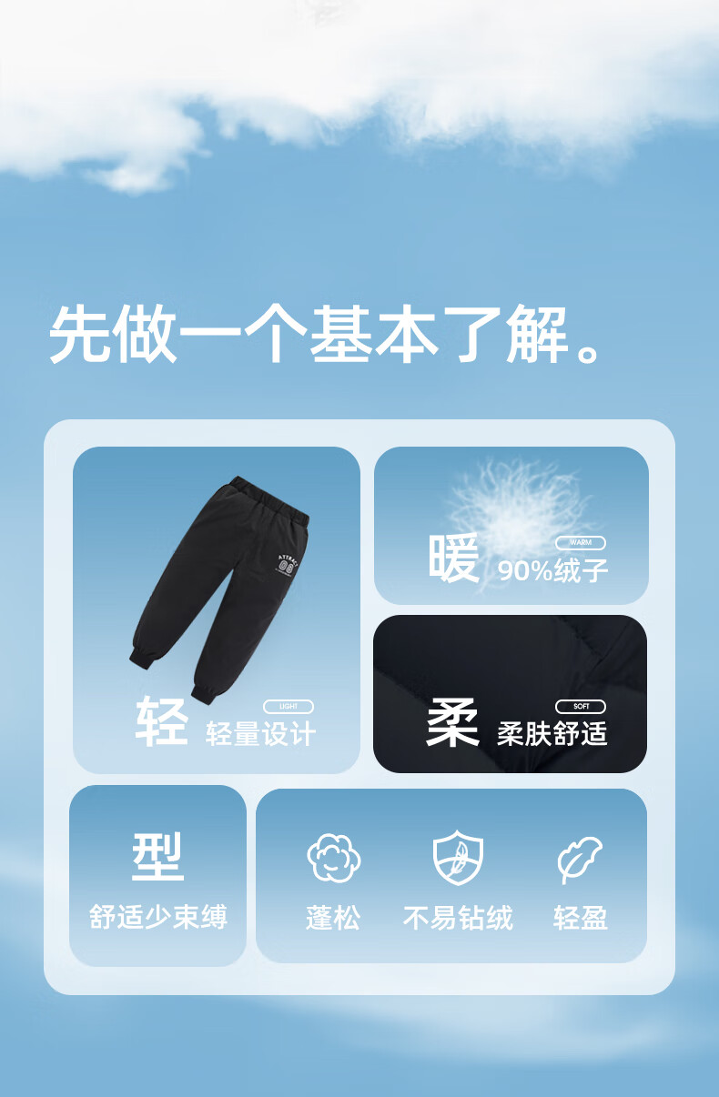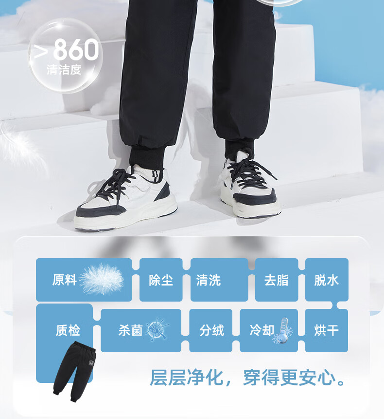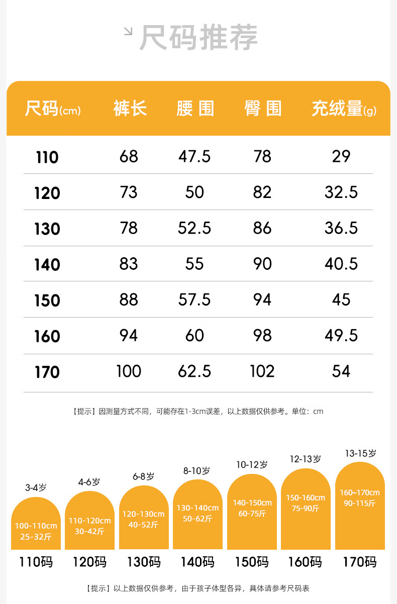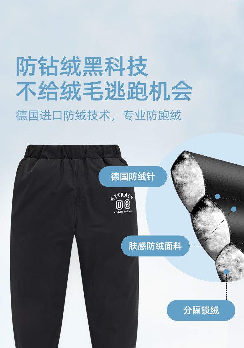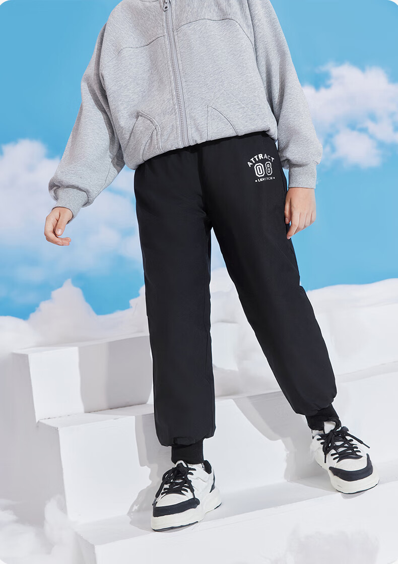 雪中飞儿童羽绒裤新款冬季男女童中大童休闲百搭加厚保暖长裤工装羽绒裤 黑色 170