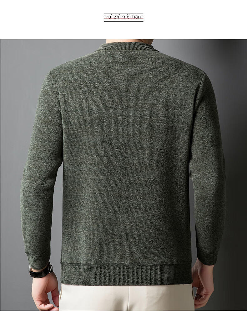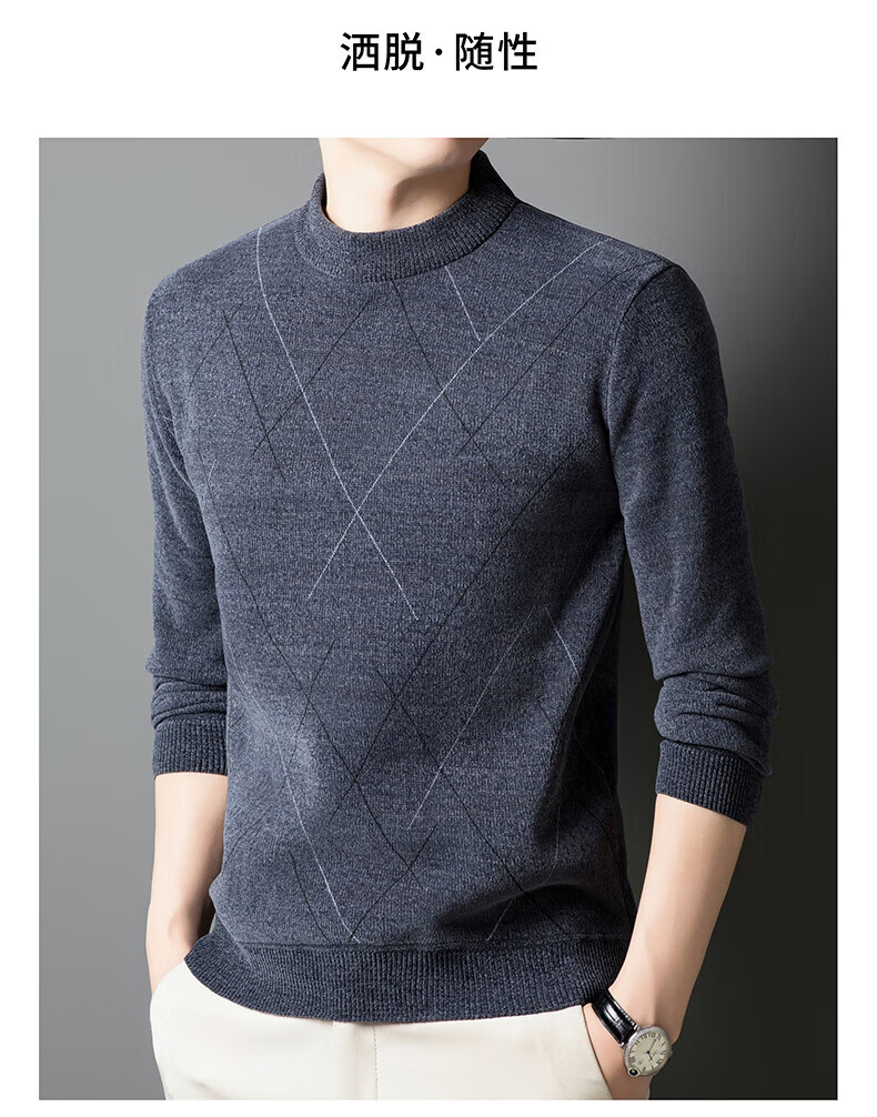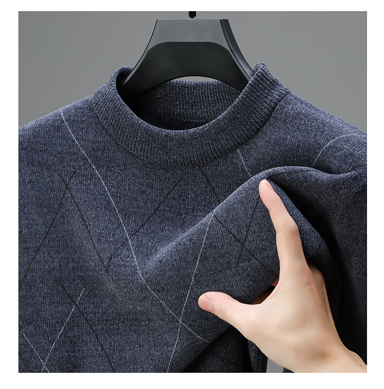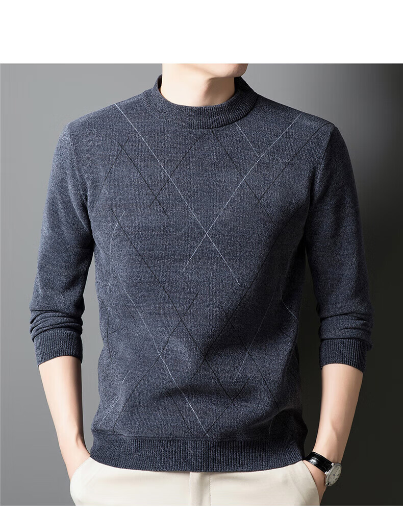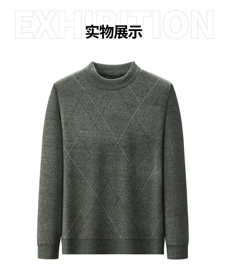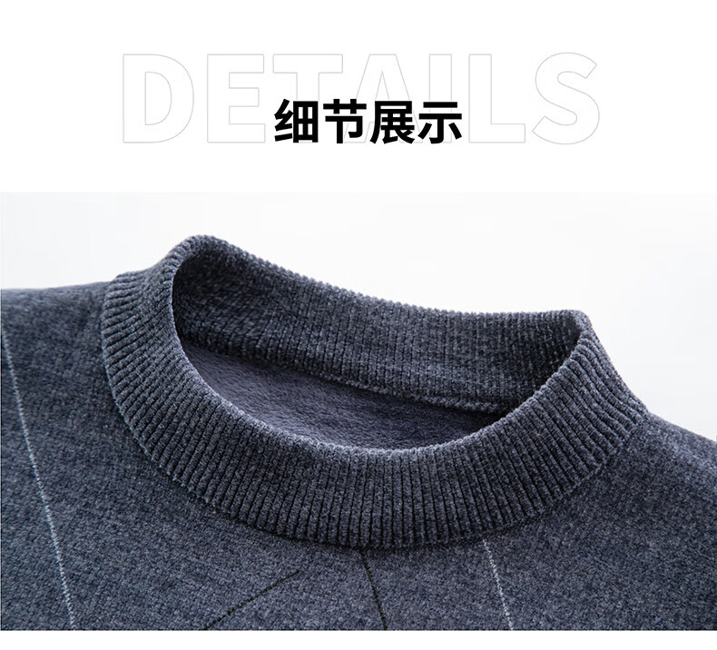 罗蒙圆领条纹针织衫男士秋冬款中青年加绒加厚打底保暖毛线衣内搭男 灰色 L 175(建议125-140斤)