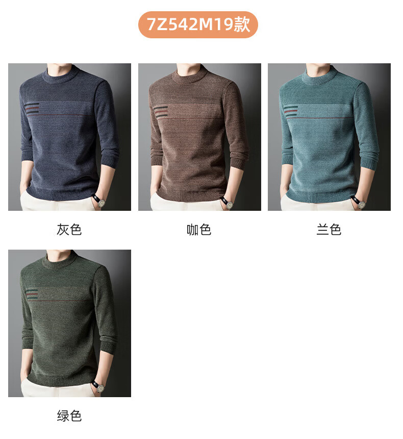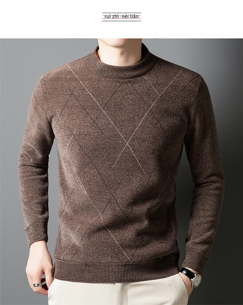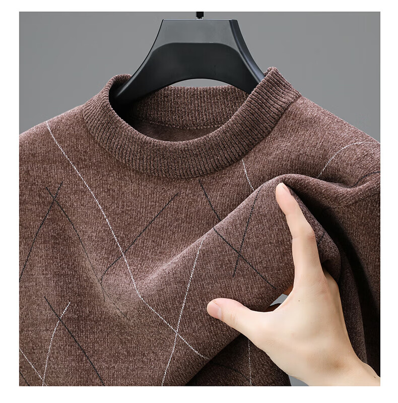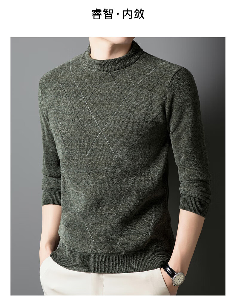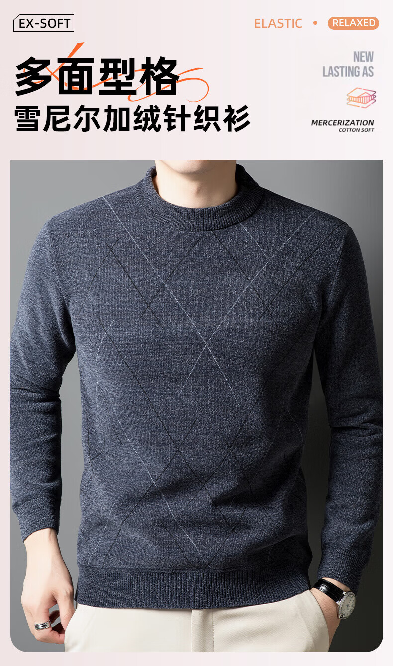 罗蒙圆领条纹针织衫男士秋冬款中青年加绒加厚打底保暖毛线衣内搭男 灰色 L 175(建议125-140斤)