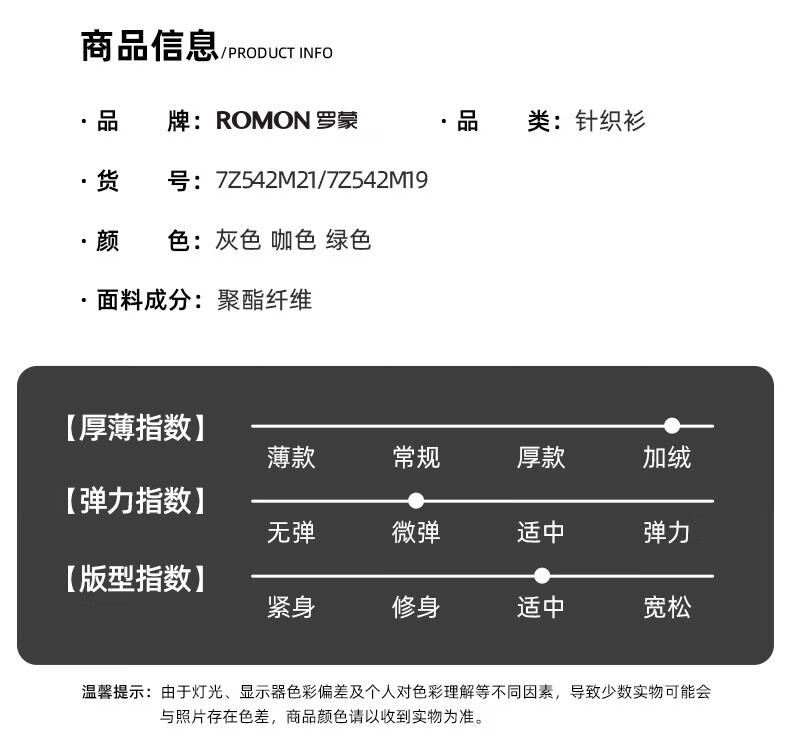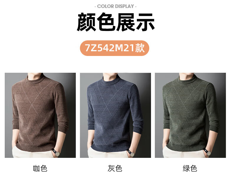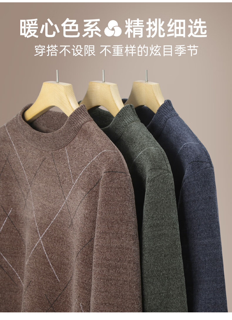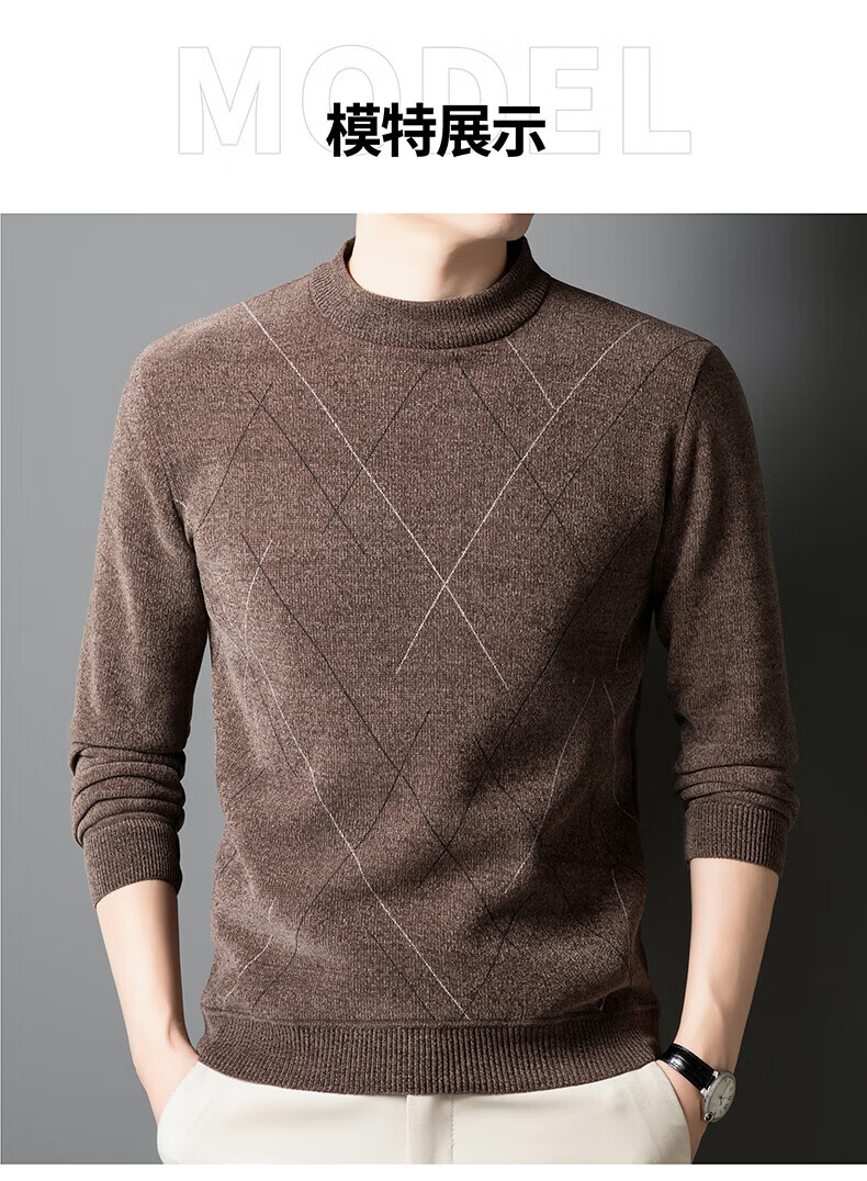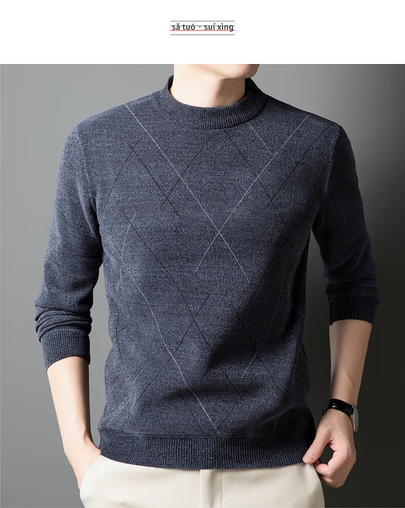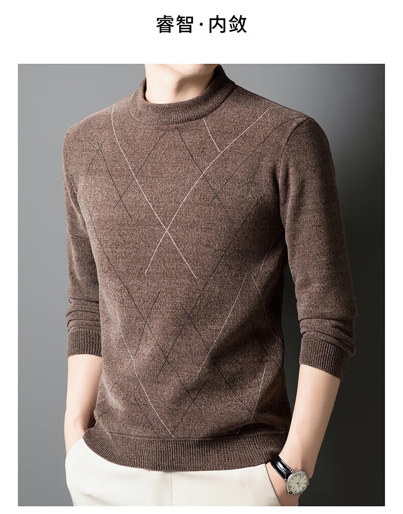 罗蒙圆领条纹针织衫男士秋冬款中青年加绒加厚打底保暖毛线衣内搭男 灰色 L 175(建议125-140斤)