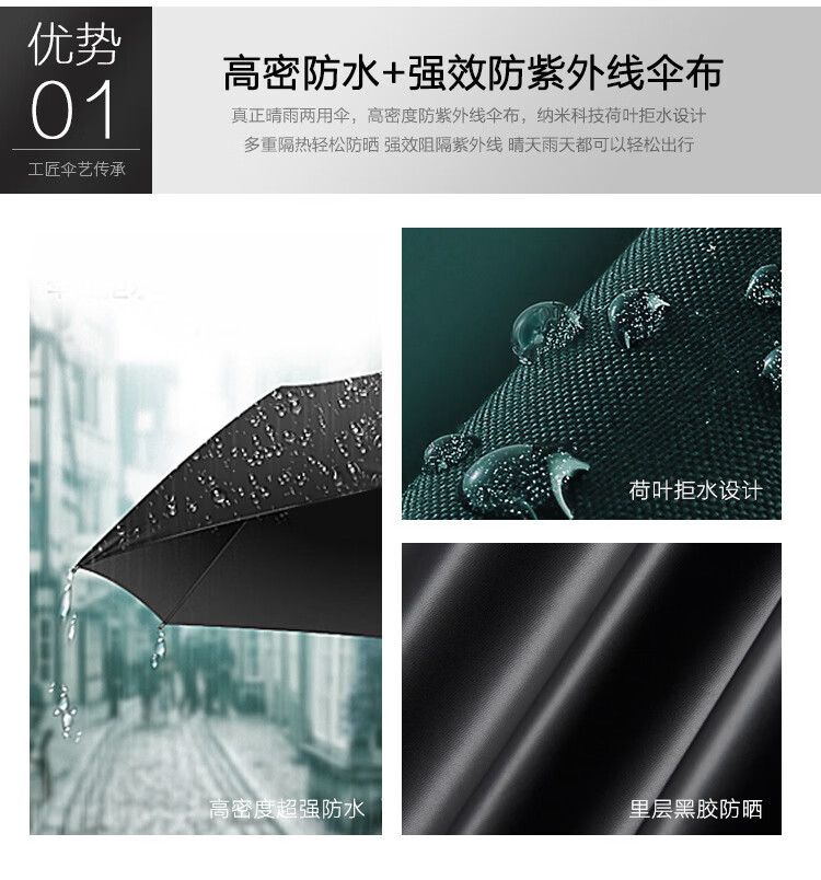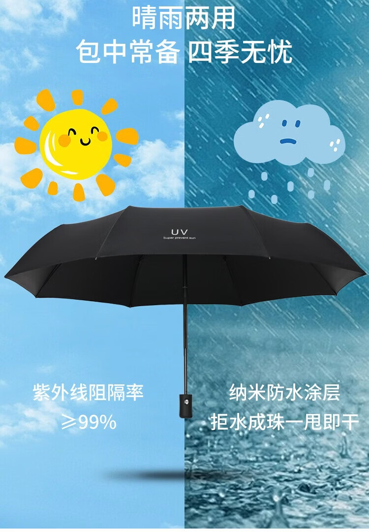 印象城定制雨伞全自动雨伞遮阳伞太阳伞晴雨两用一键全收商务黑胶防晒伞 黑色【全自动】雨伞