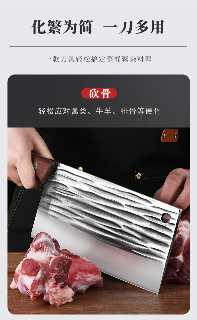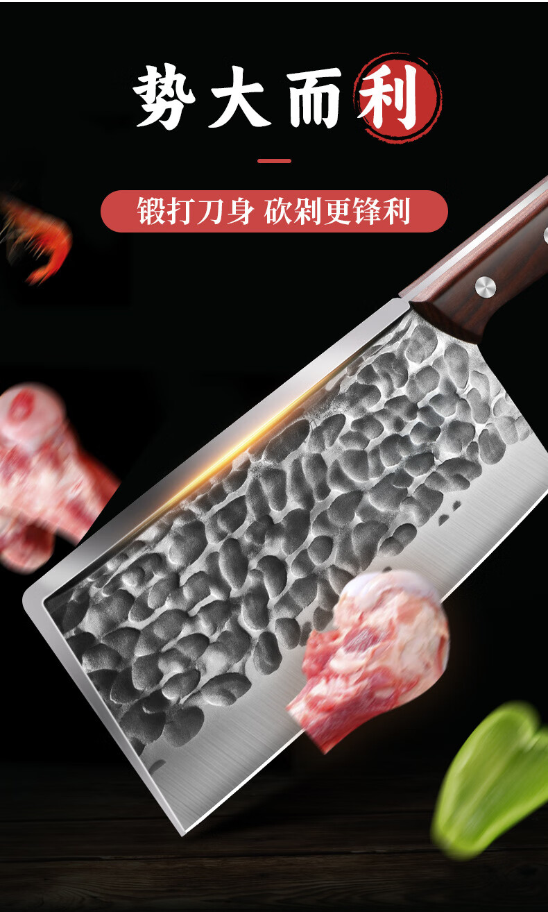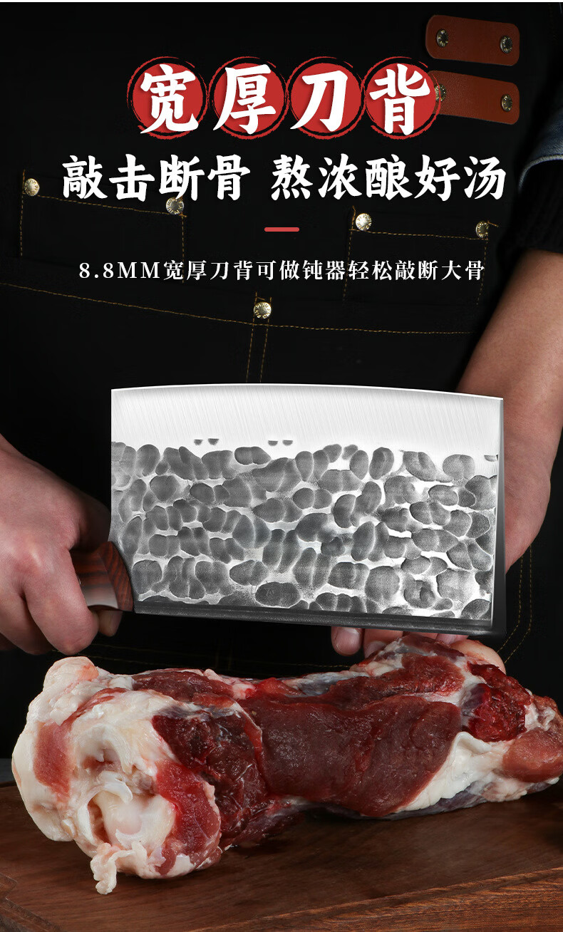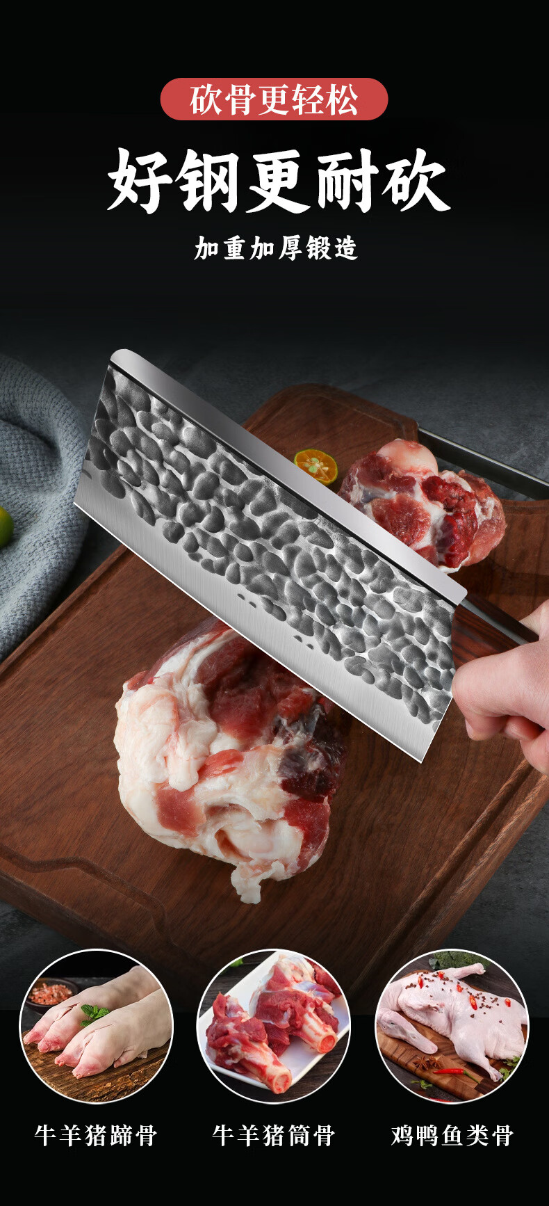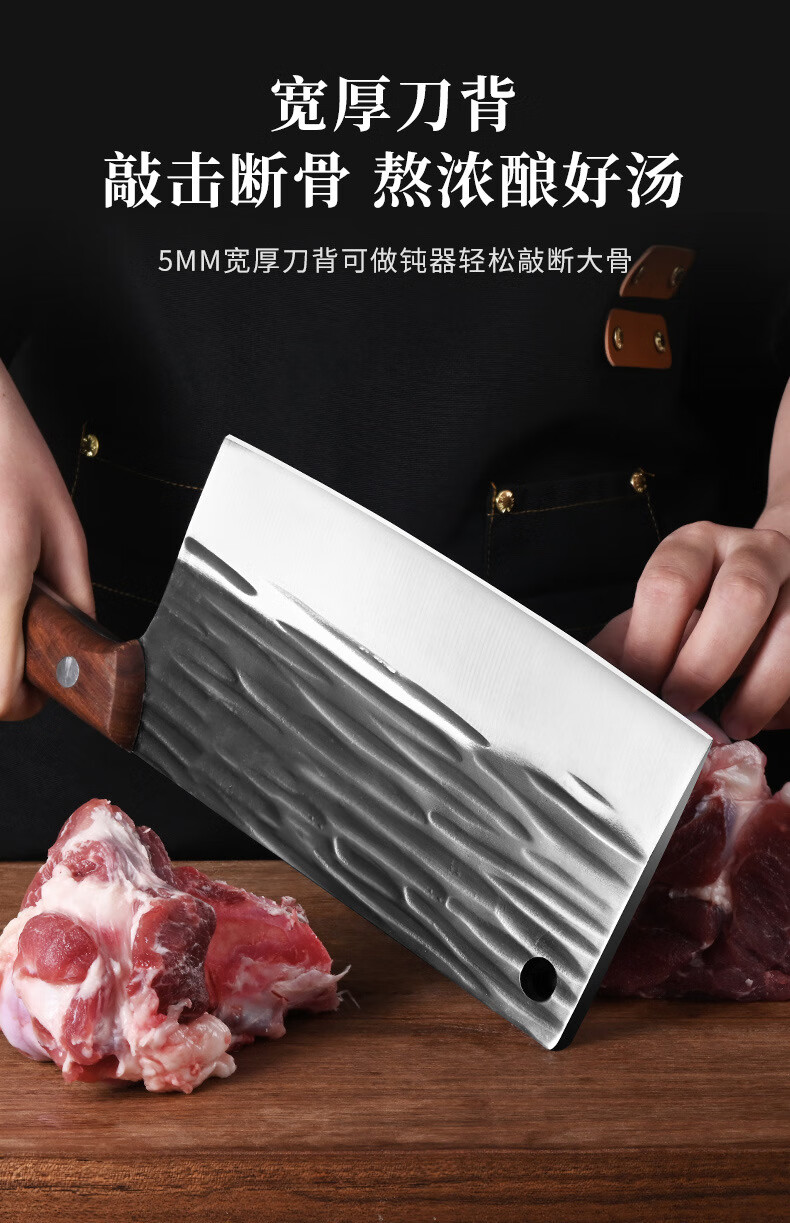阳江加厚菜刀家用斩切两用刀酒店商用斩骨刀不锈钢锻打剁砍骨刀具 锋利斩切刀【升级加厚版】
