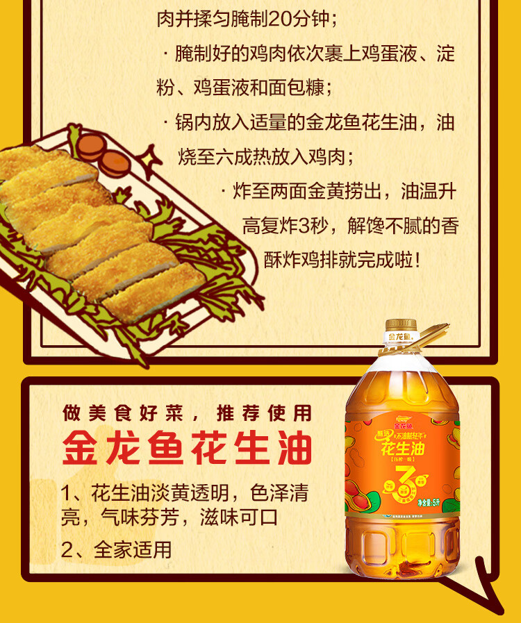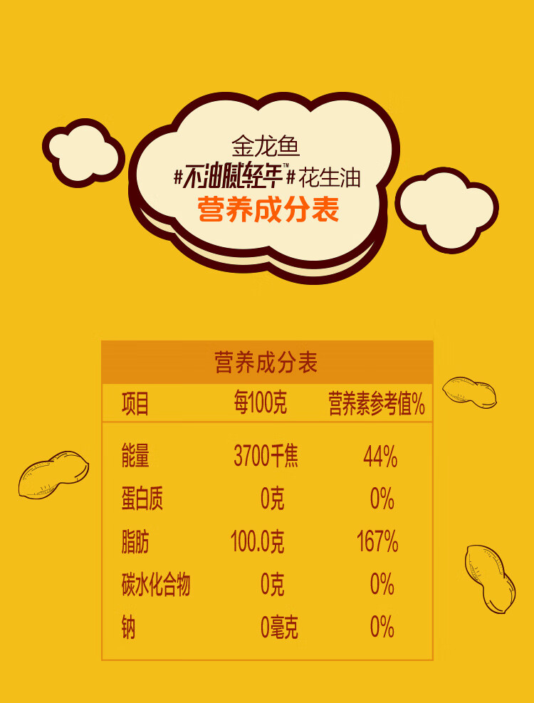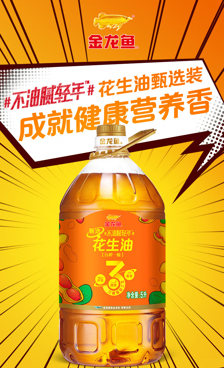 金龙鱼食用油 不油腻轻年花生油5L (整箱装) 5L*4桶