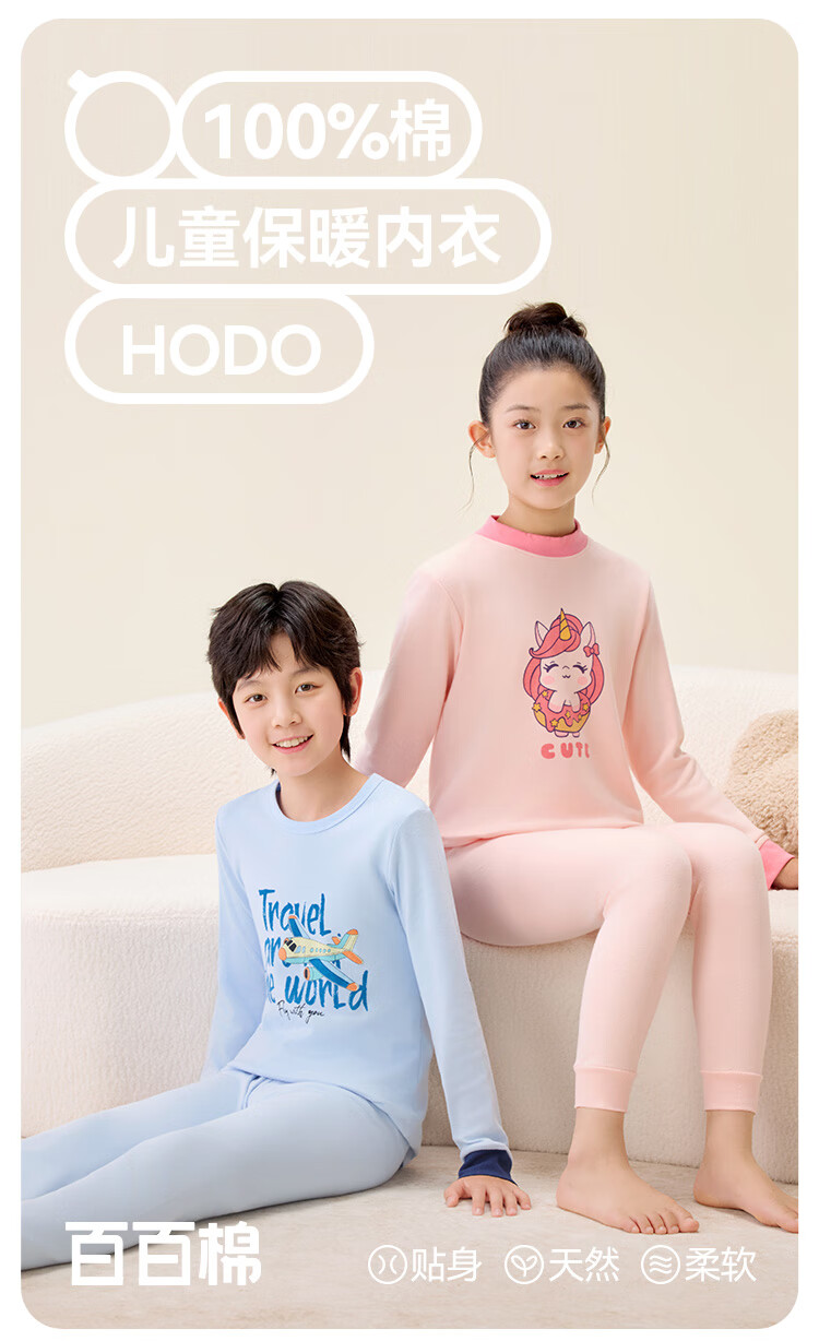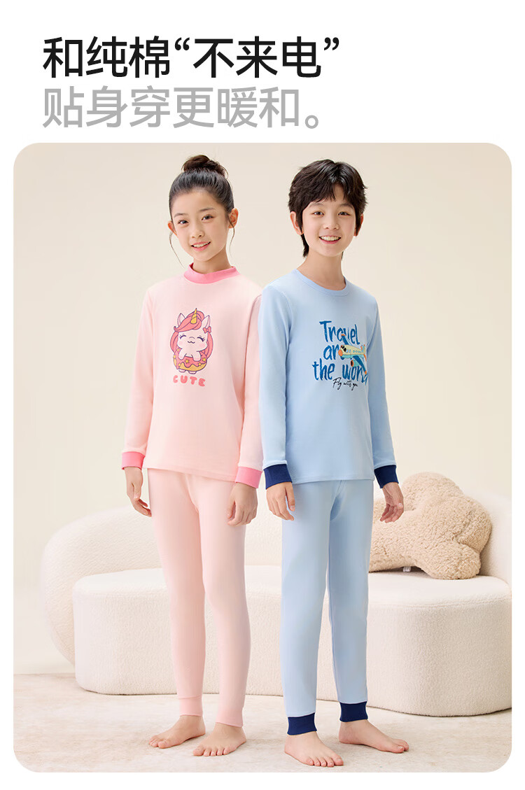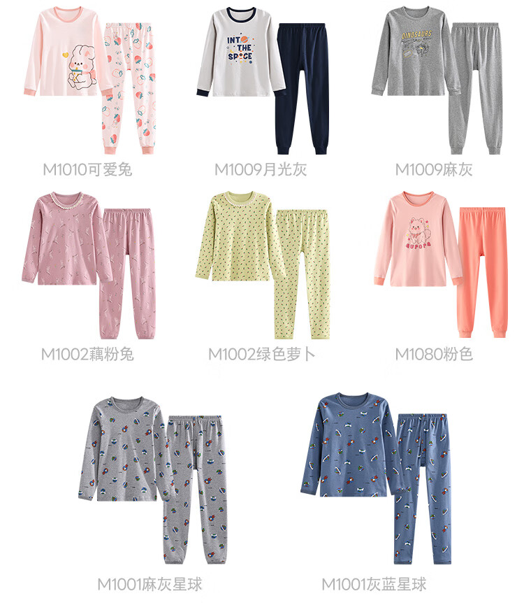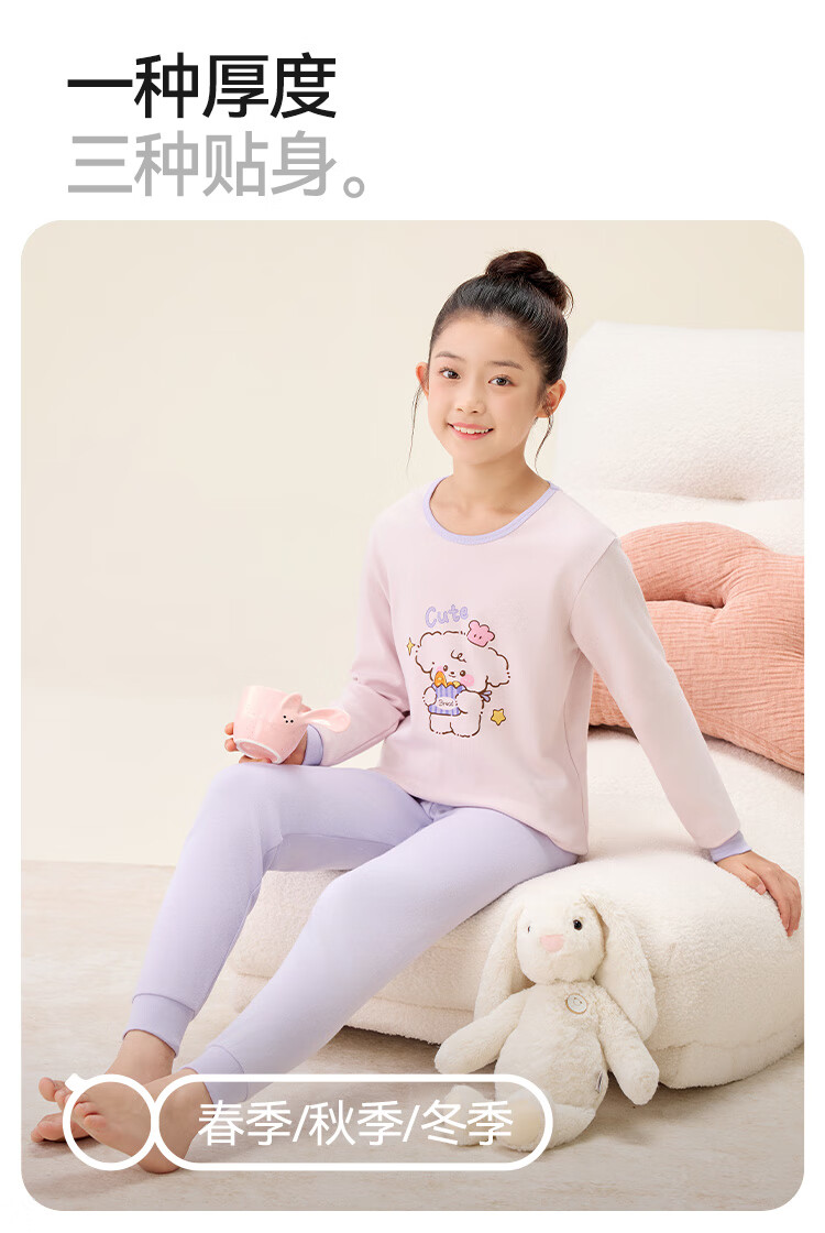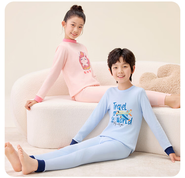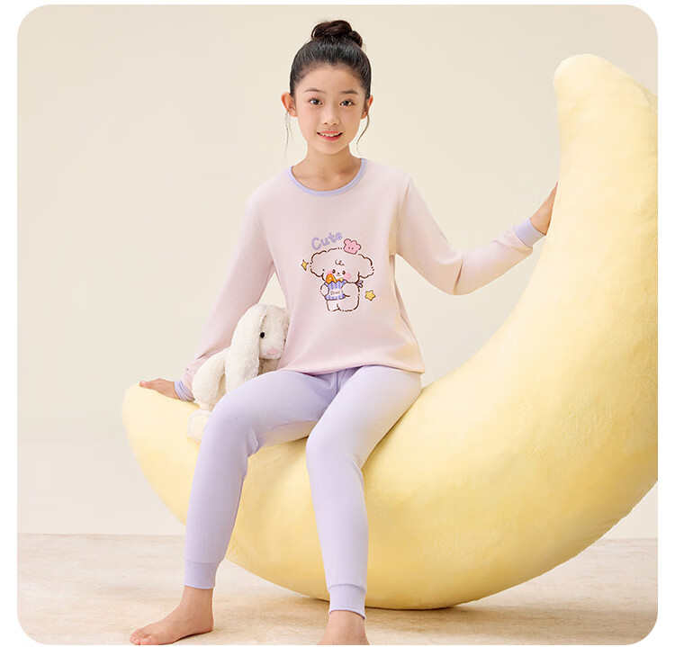 红豆纯棉秋衣秋裤中大童秋冬内衣套装儿童居家睡衣M1010罗莎粉150