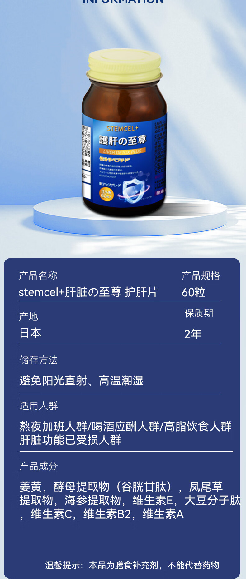 stemcel+日本原装进口护肝片水飞蓟熬夜喝酒脂肪肝降转氨酶养清肝排毒60粒 1瓶装【1粒顶8粒·行业天花板·专利护肝】买3赠1