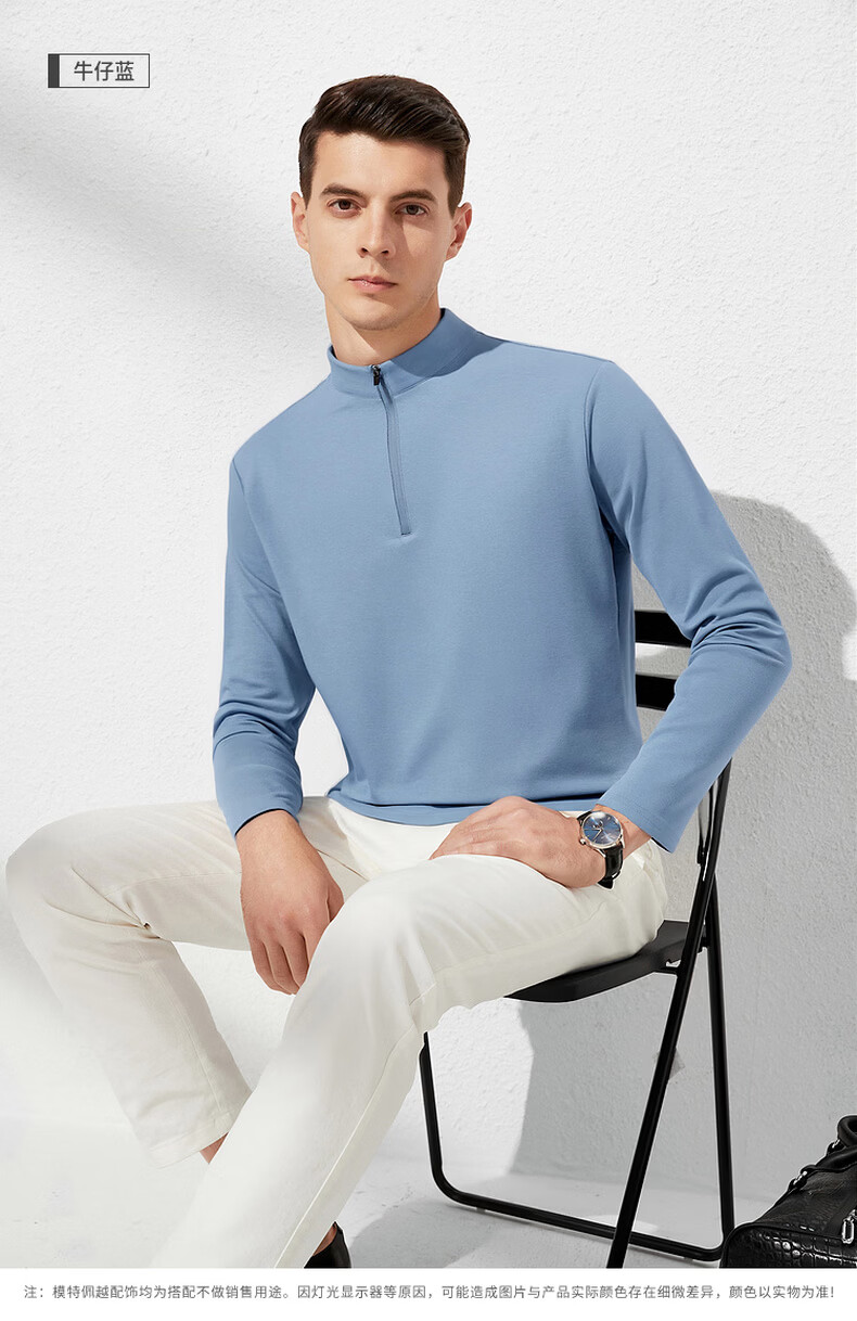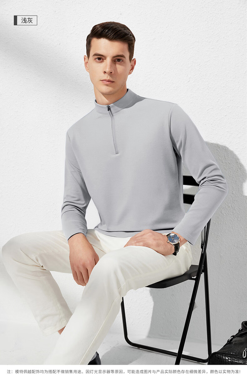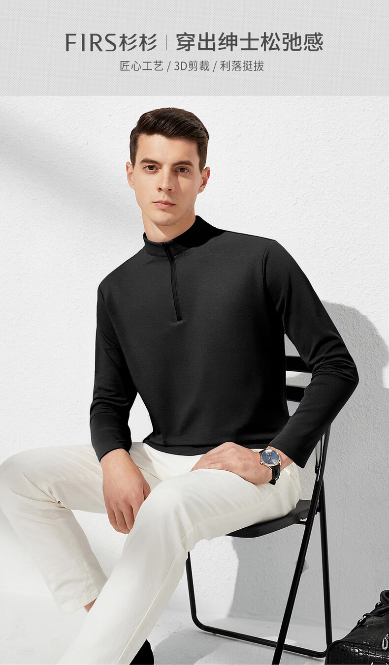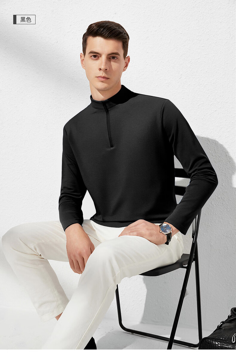 杉杉【经典百搭】春季新款休闲套头长袖T恤男 黑色 M