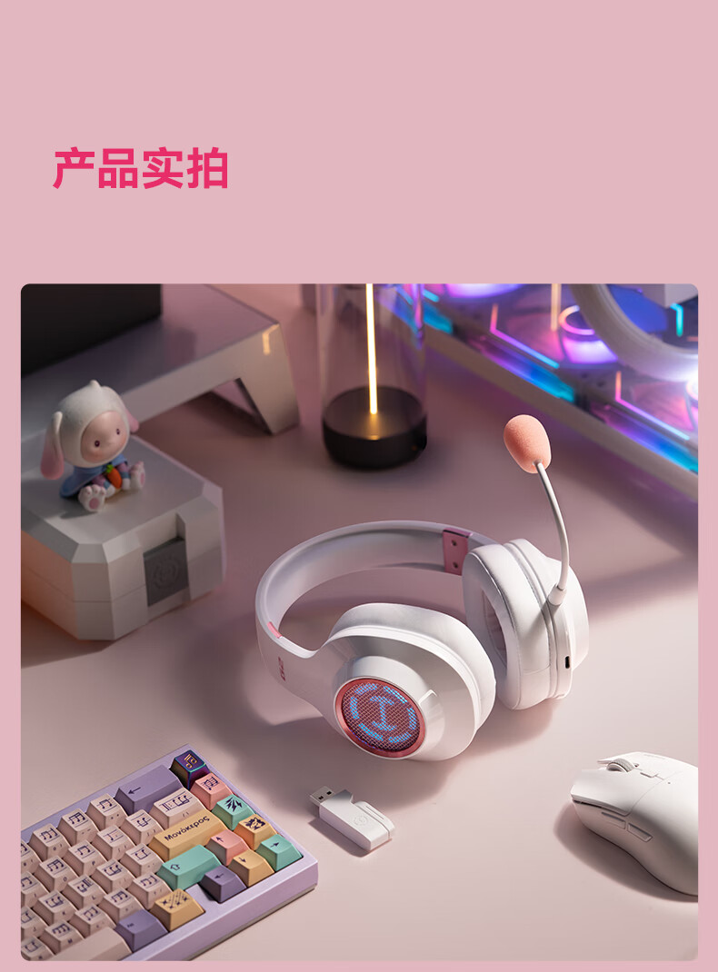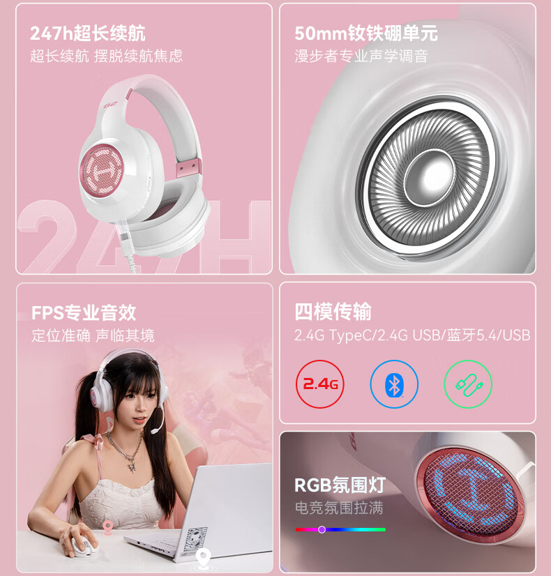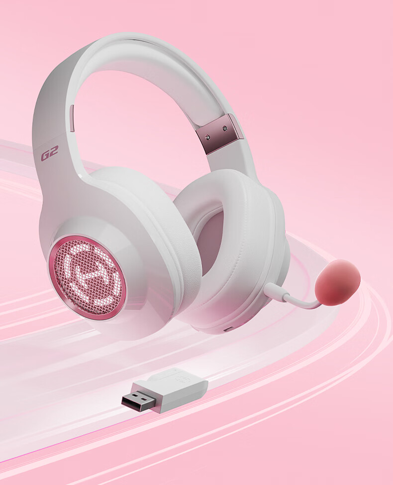 漫步者(EDIFIER)HECATE G2无线版 2.4G有线蓝牙四模头戴式耳机电竞游戏电脑无线专用三角洲FPS吃鸡无畏契约 雾光粉