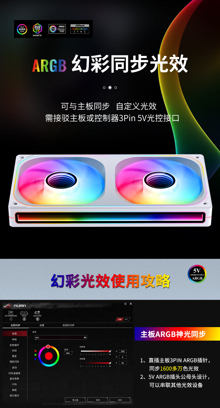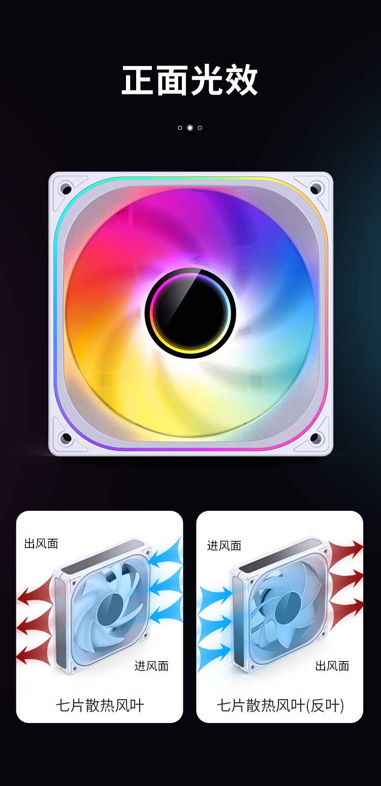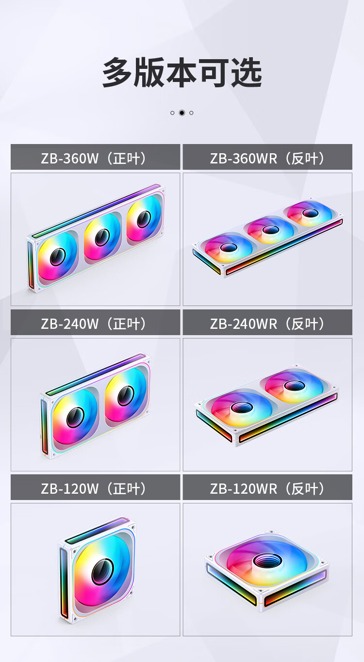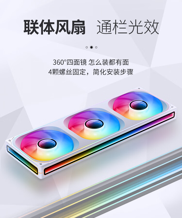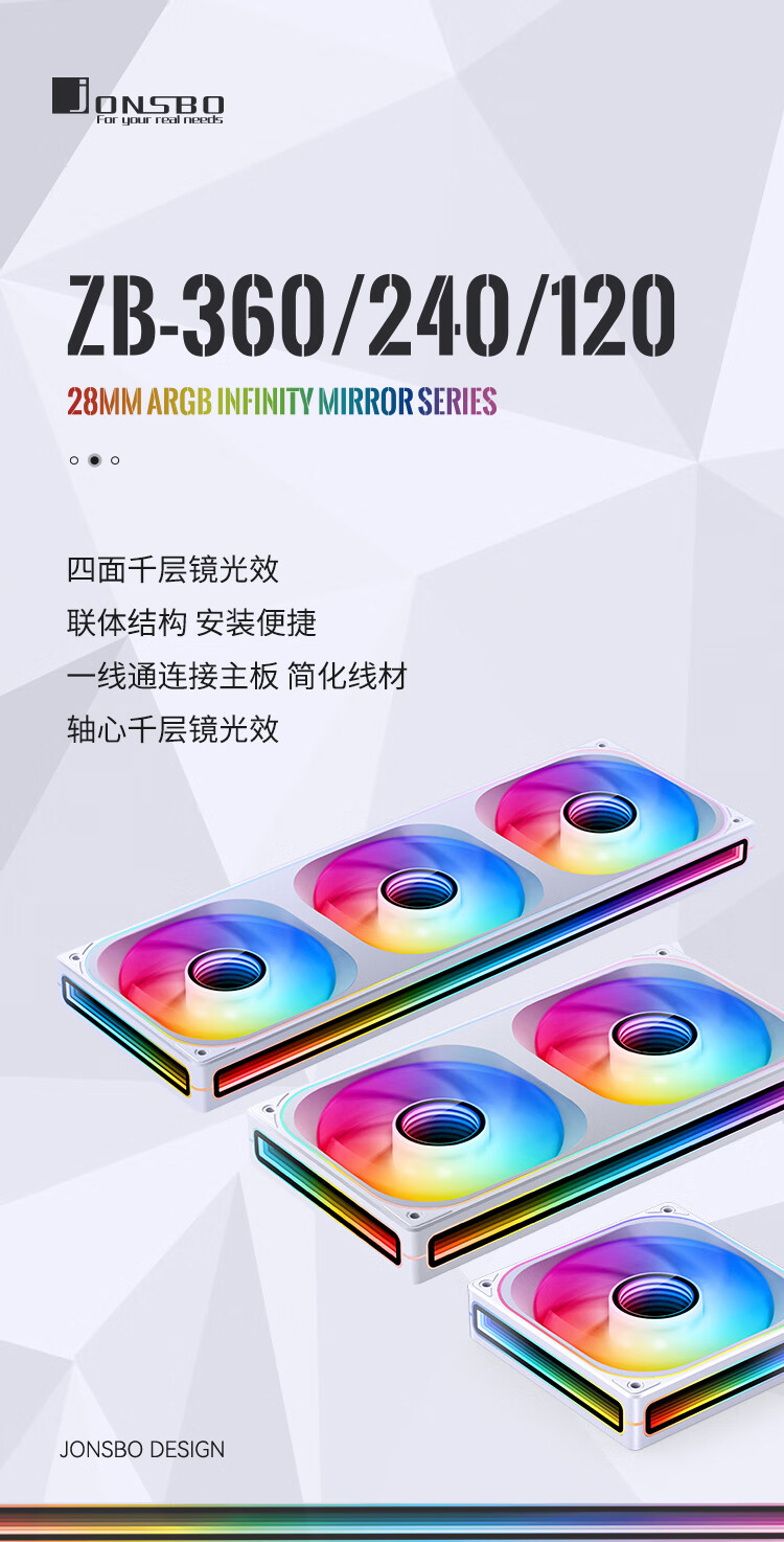 乔思伯(JONSBO)ZB-360WR ARGB版白色反叶 12CM*3机箱风扇(轴心/四面一体千层镜光效/3连体/PWM公母头)