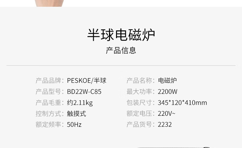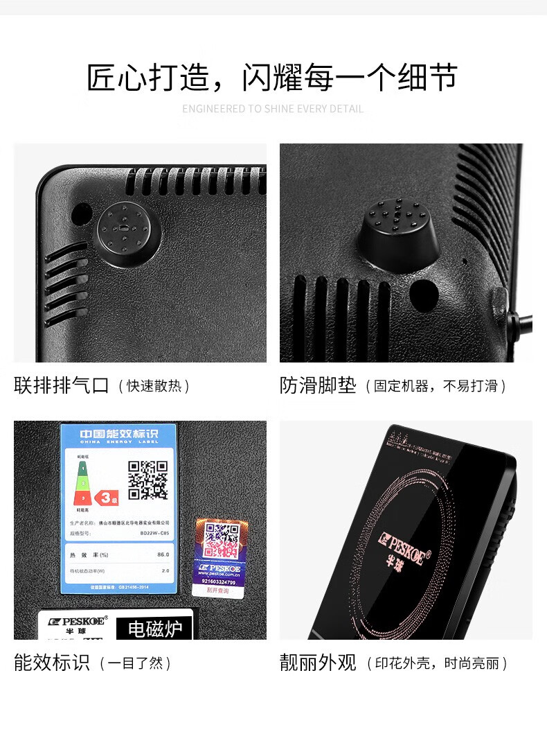 半球(PESKOE) 电磁炉 触控微晶面板多功能家用智能电磁炉 大功率爆炒炉灶大火力火锅电磁炉 智能升级款(单机)