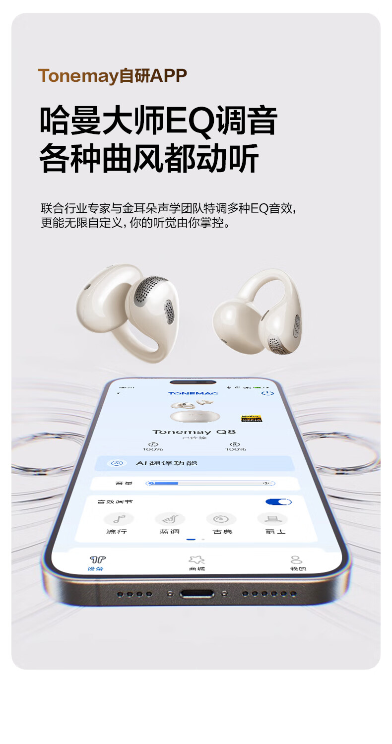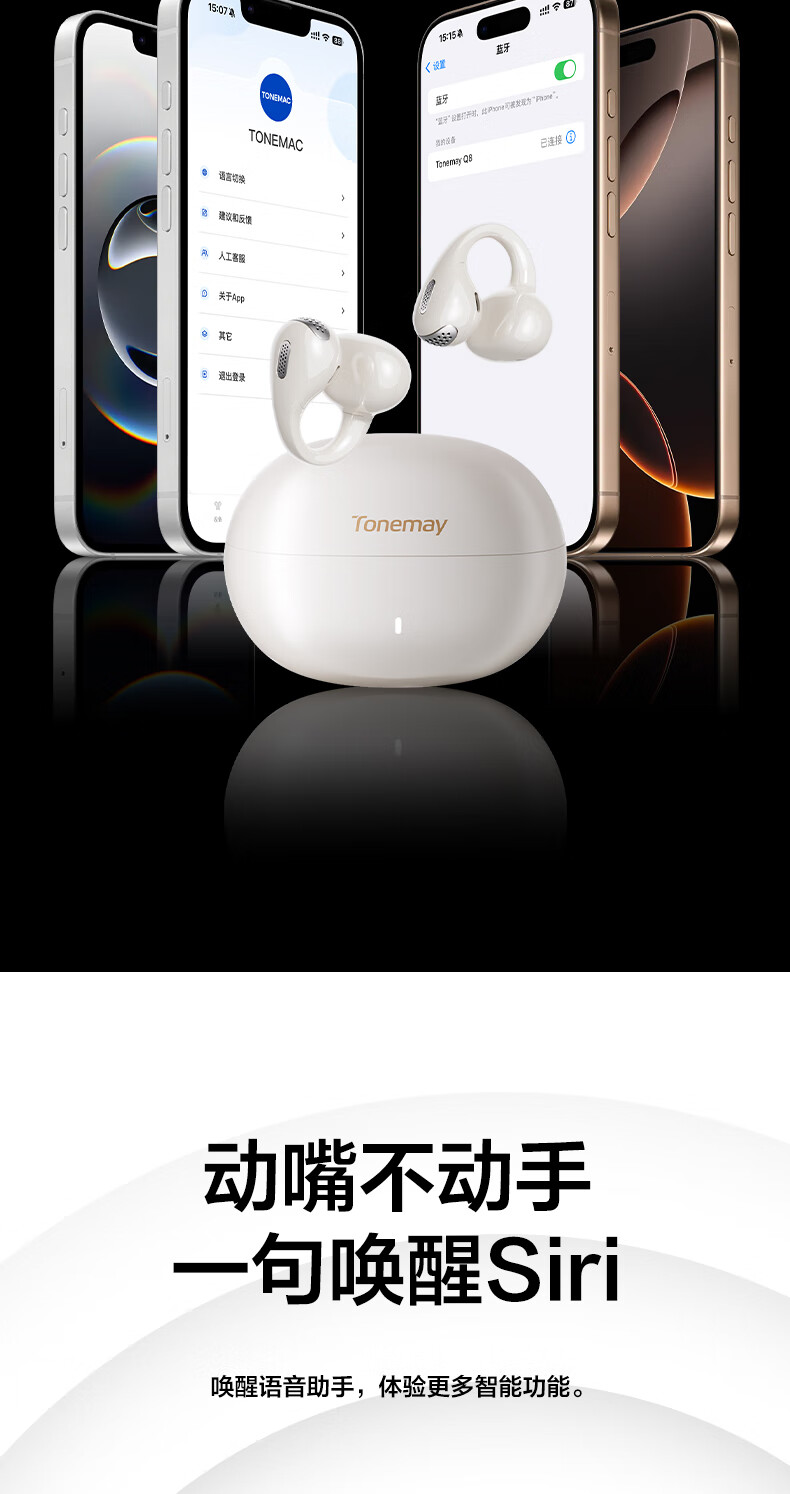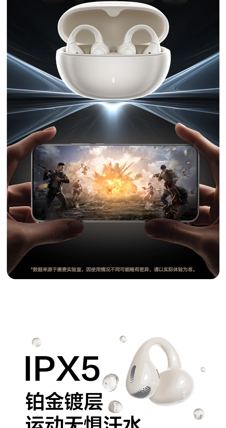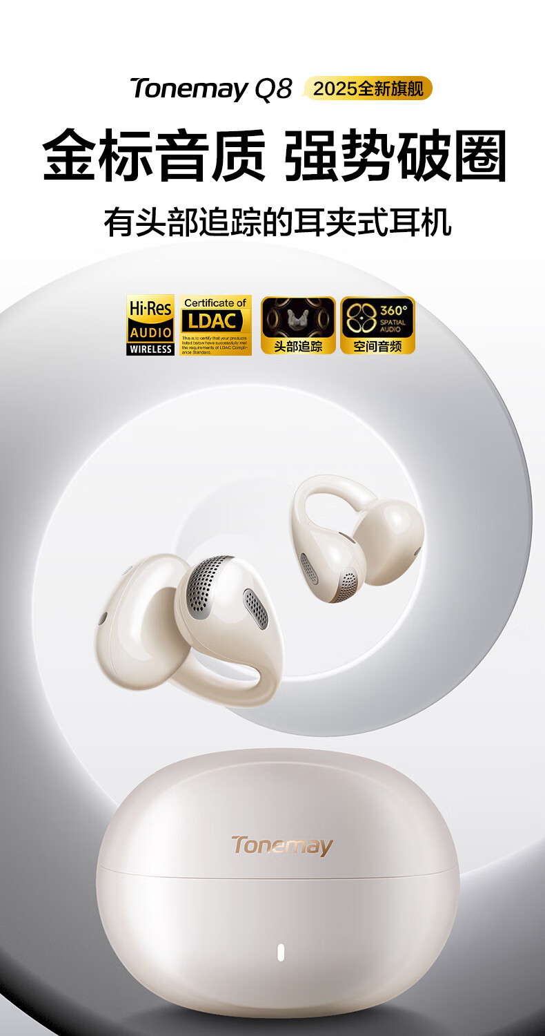 唐麦Q8耳夹开放式蓝牙耳机骨传导概念AI翻译会议通话降噪无线不入耳运动挂耳式防汗适用苹果华为游戏白