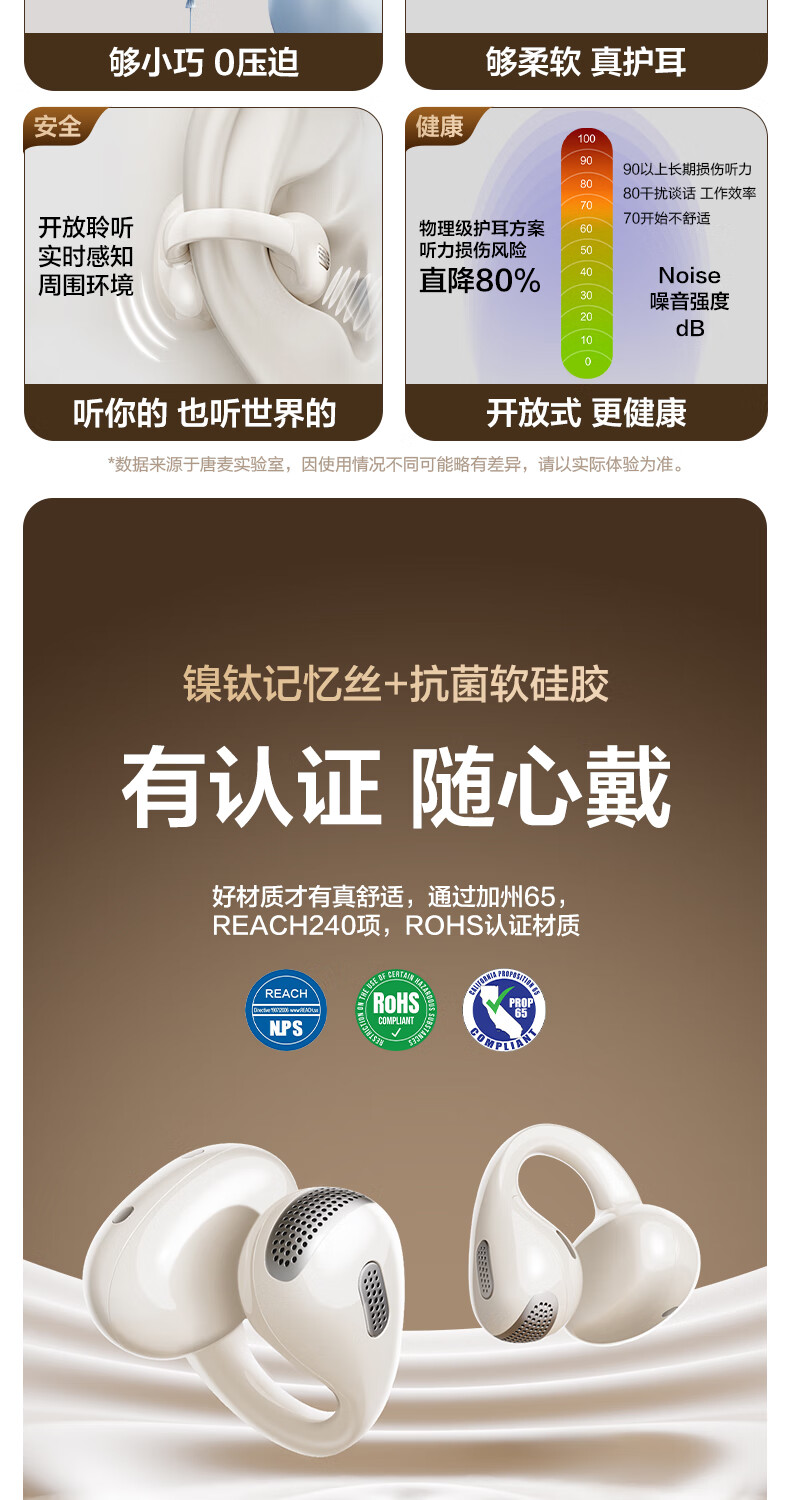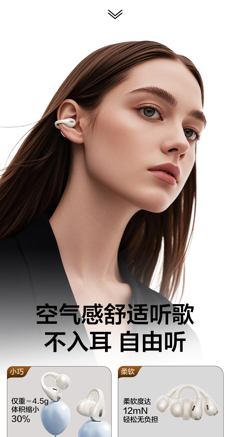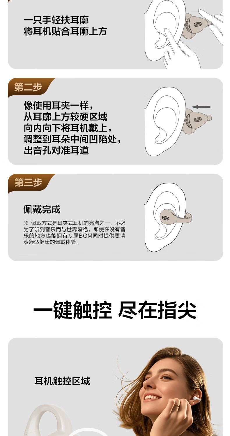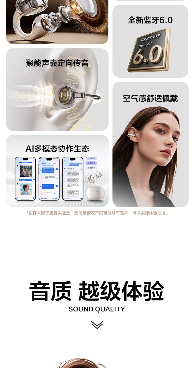 唐麦Q8耳夹开放式蓝牙耳机骨传导概念AI翻译会议通话降噪无线不入耳运动挂耳式防汗适用苹果华为游戏白