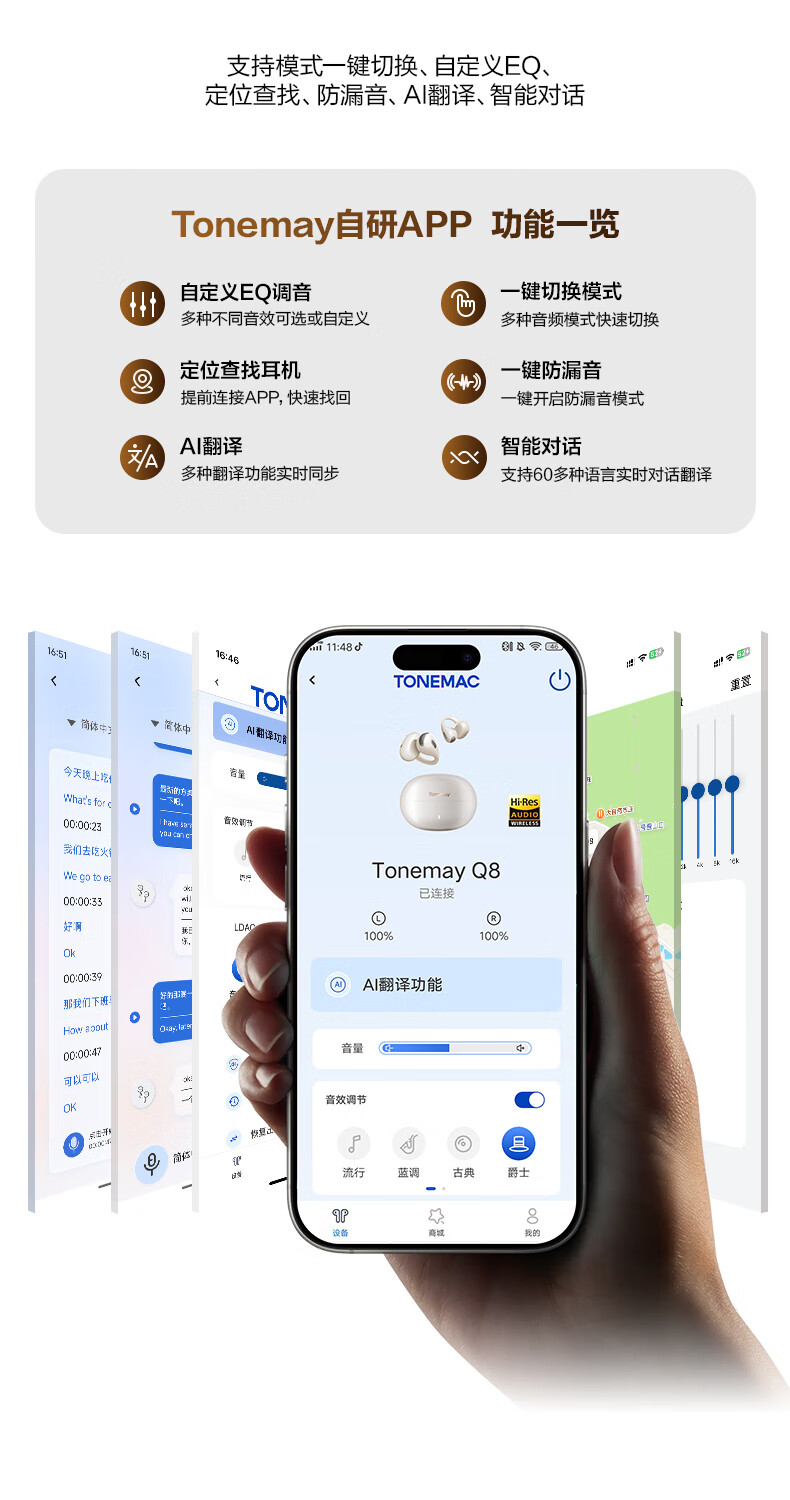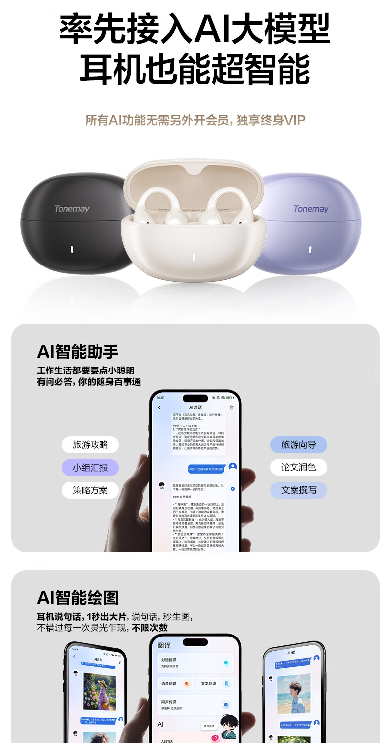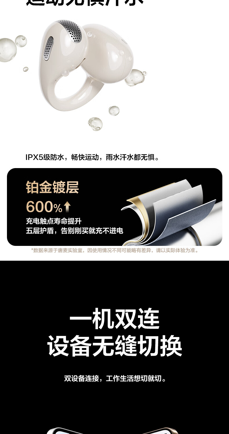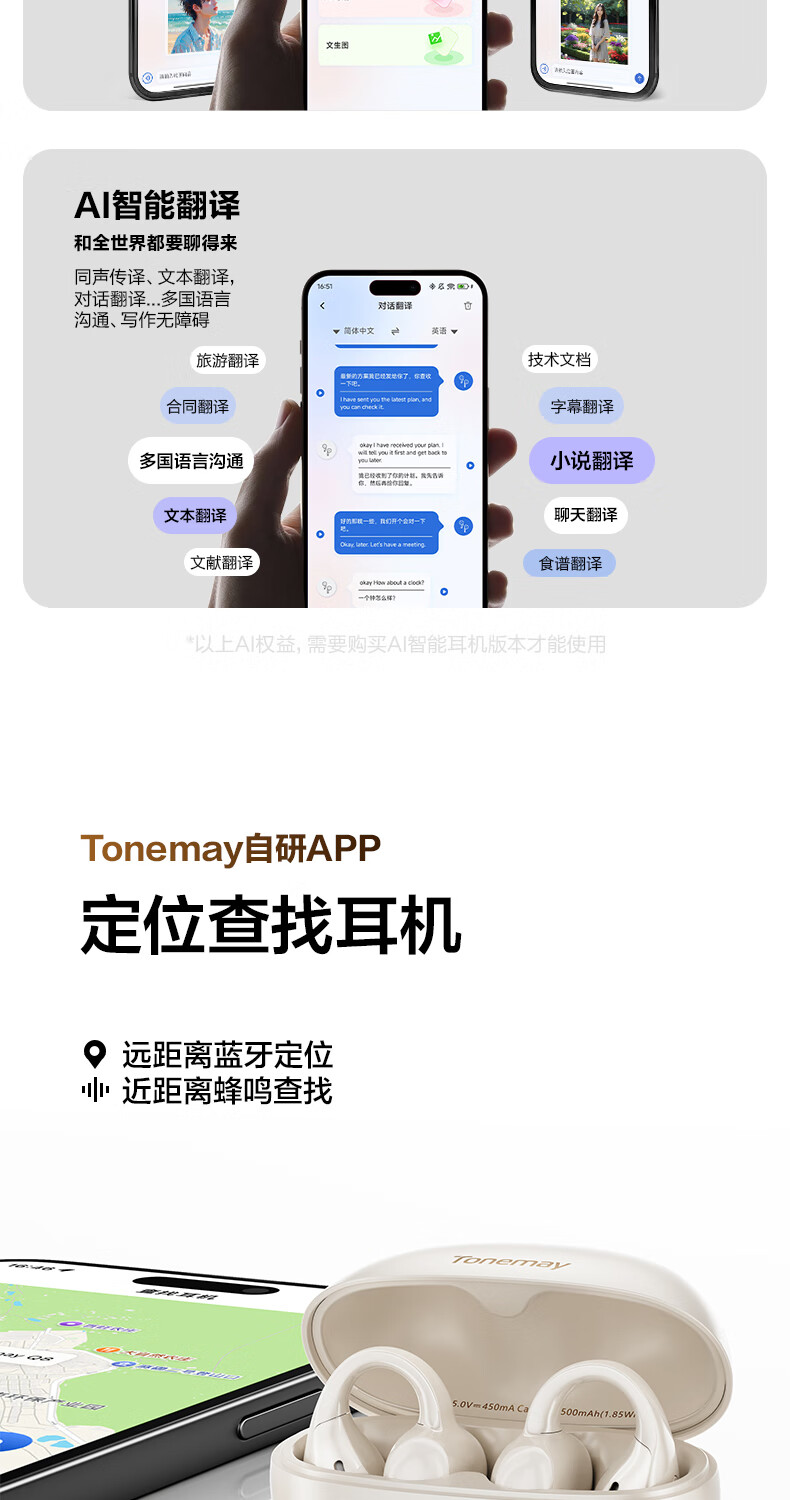 唐麦Q8耳夹开放式蓝牙耳机骨传导概念AI翻译会议通话降噪无线不入耳运动挂耳式防汗适用苹果华为游戏白