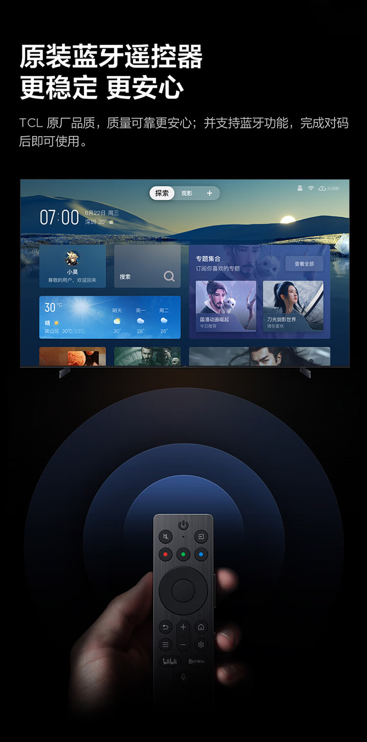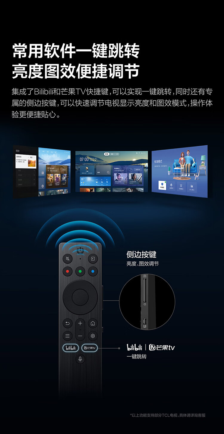 TCL妙控蓝牙遥控器 RC802A 原装遥控 自定义按键 语音操控 快捷侧边亮度/图效调节 智能遥控器