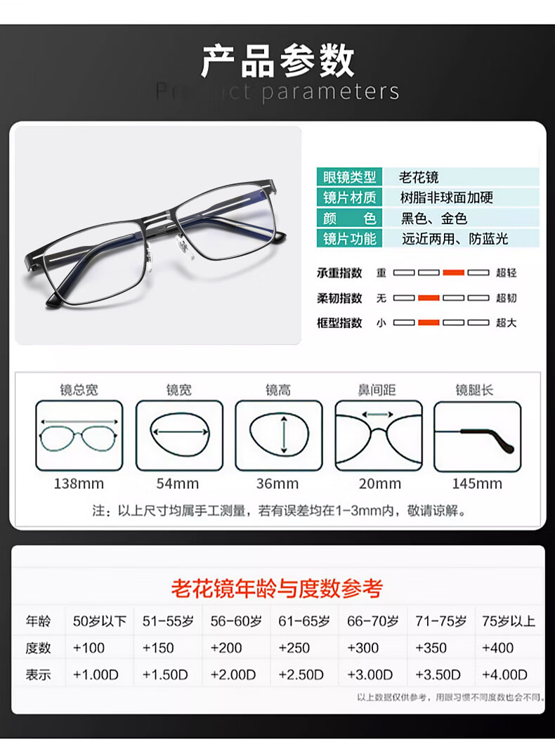 LESCA LUNETIER老花镜男高清超轻防蓝光抗疲劳老人老光眼镜女士老年远近两用男式