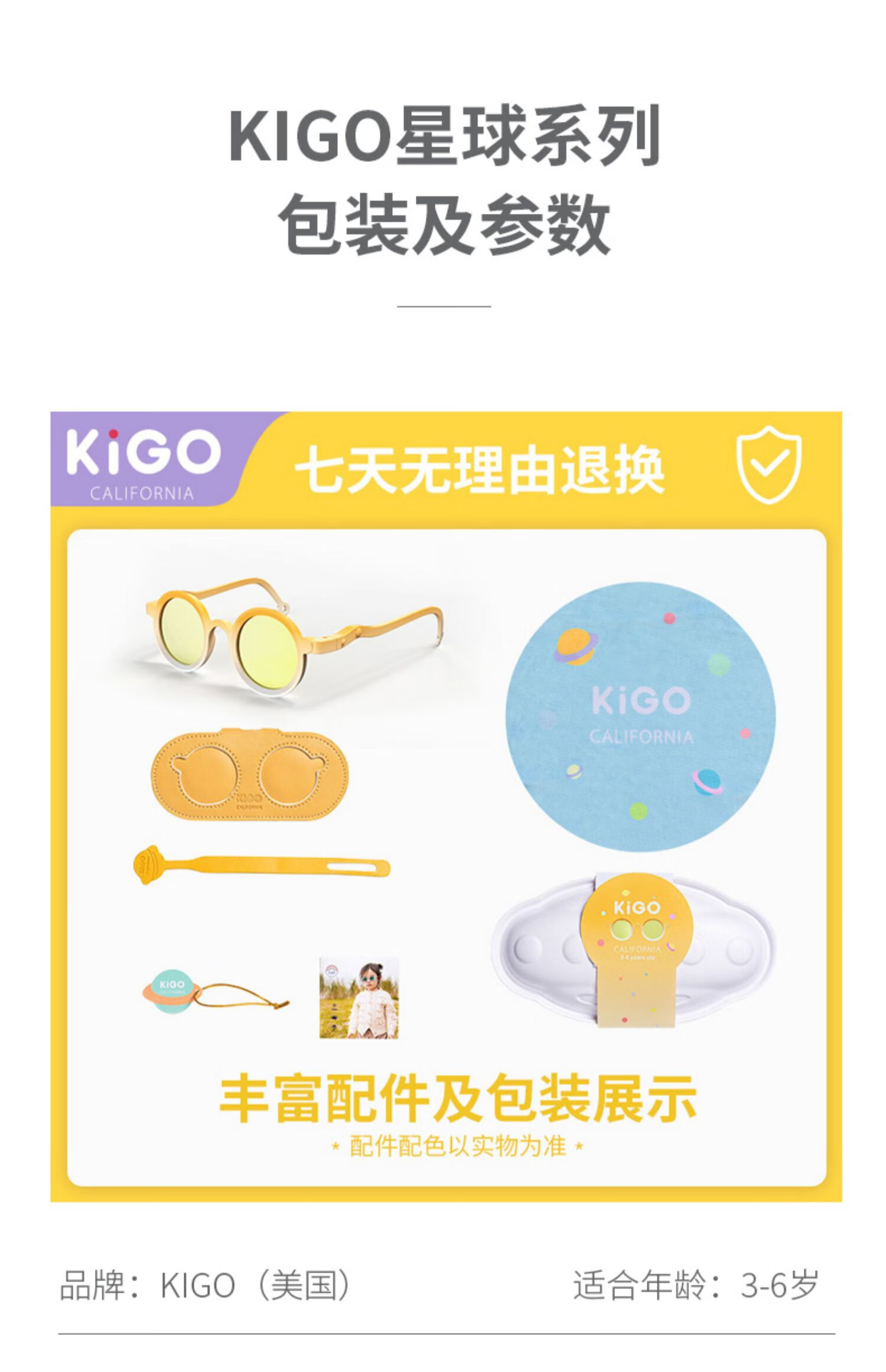 Kigo防晒渐变系列儿童太阳镜户外防紫外线活力晚秋橙(3-6岁)