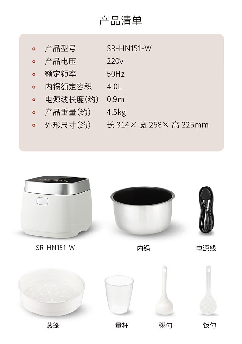 松下(Panasonic)【国家补贴20%】饭光光电饭煲4-5人IH加热家用电饭锅多功能煮饭锅一级能效4升以旧换新SR-HN151-W