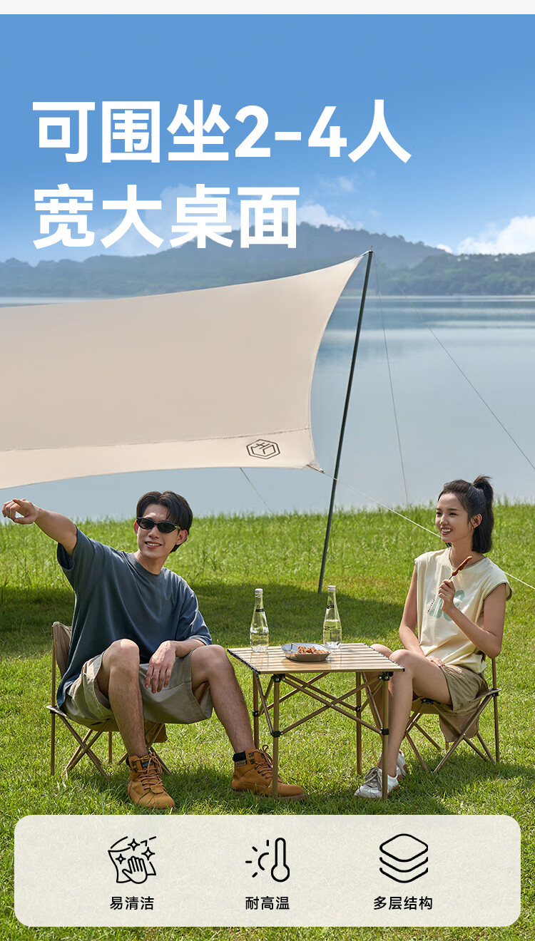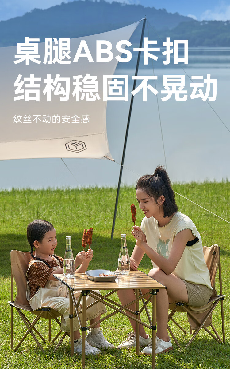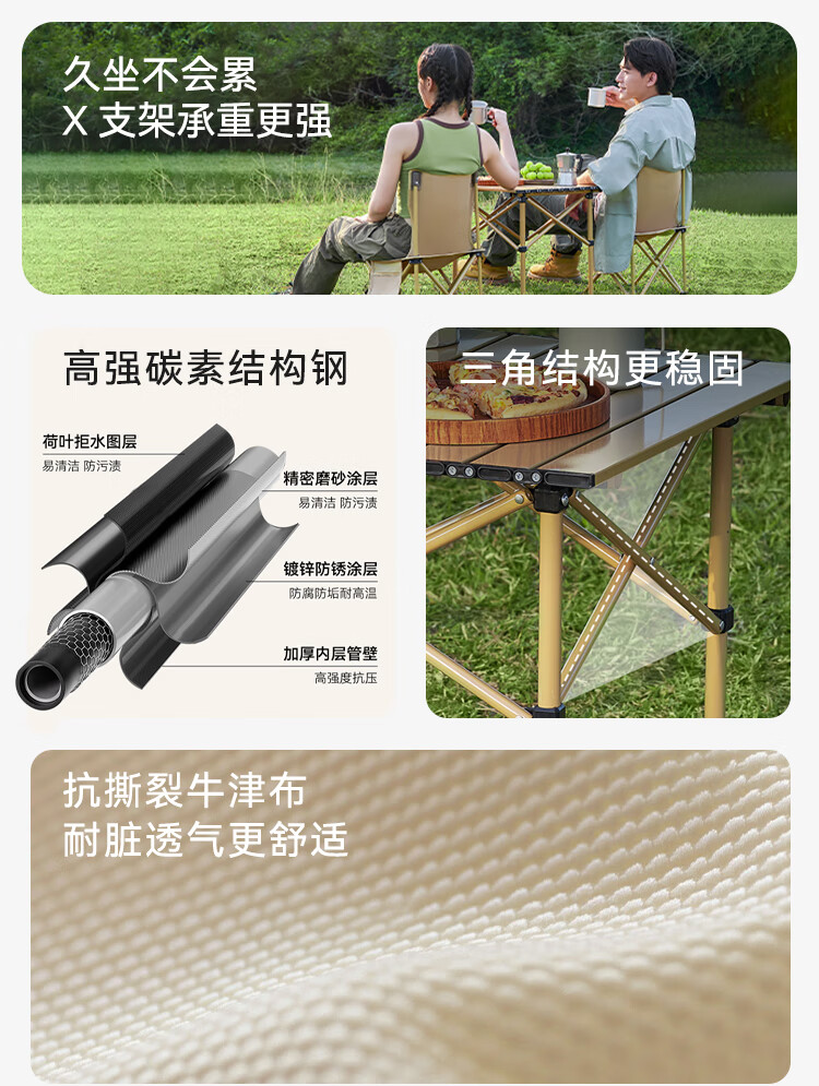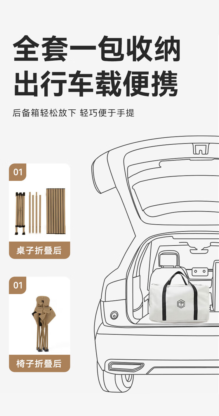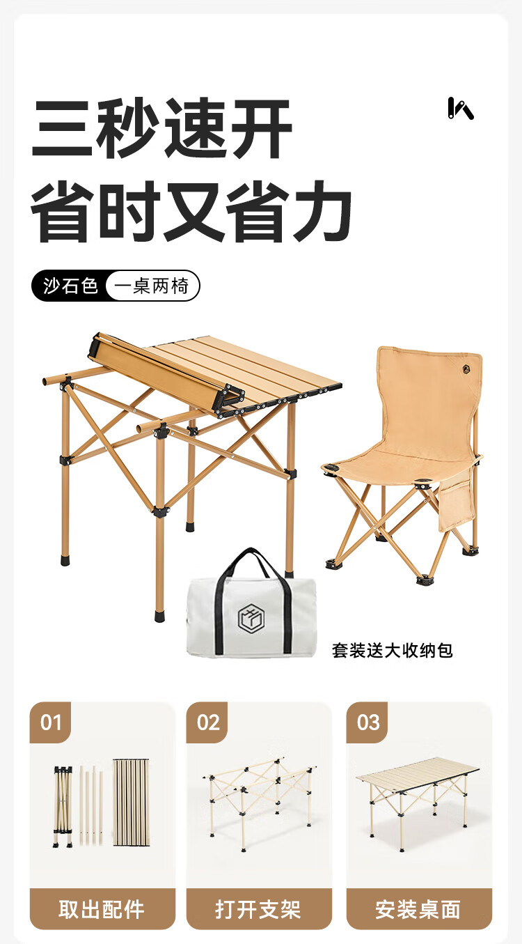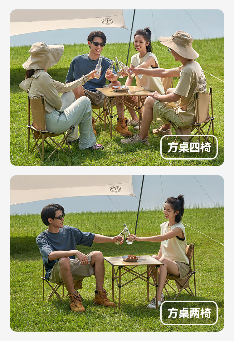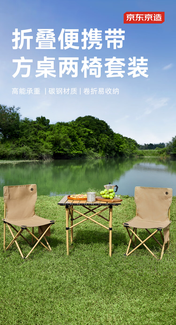 京东京造户外便携桌椅套装 一桌两椅 露营聚会野餐装备 折叠桌椅 沙石色