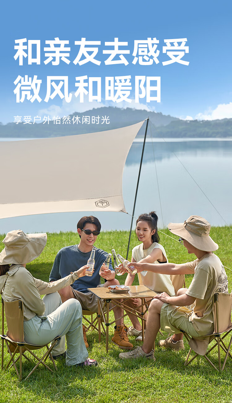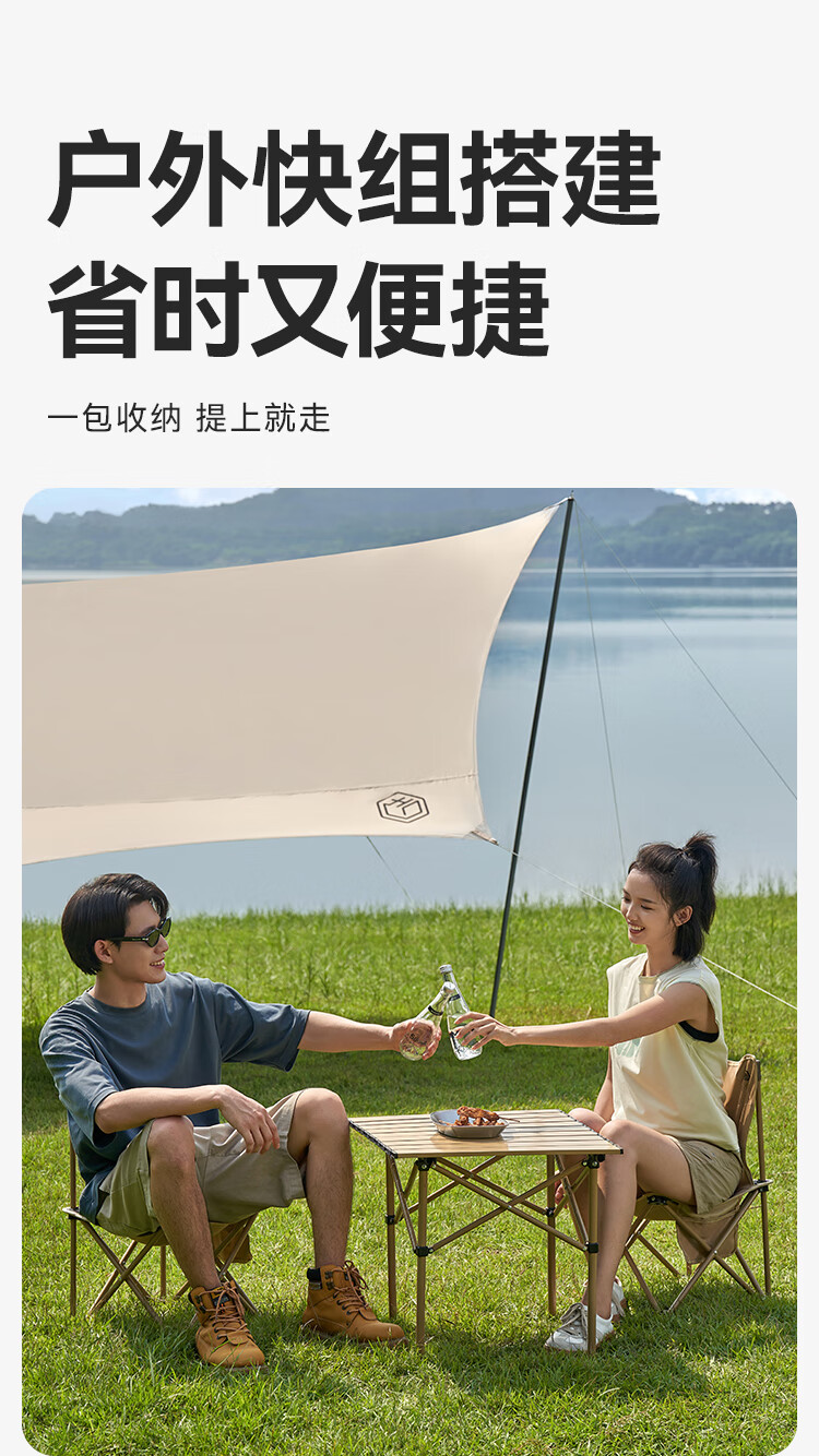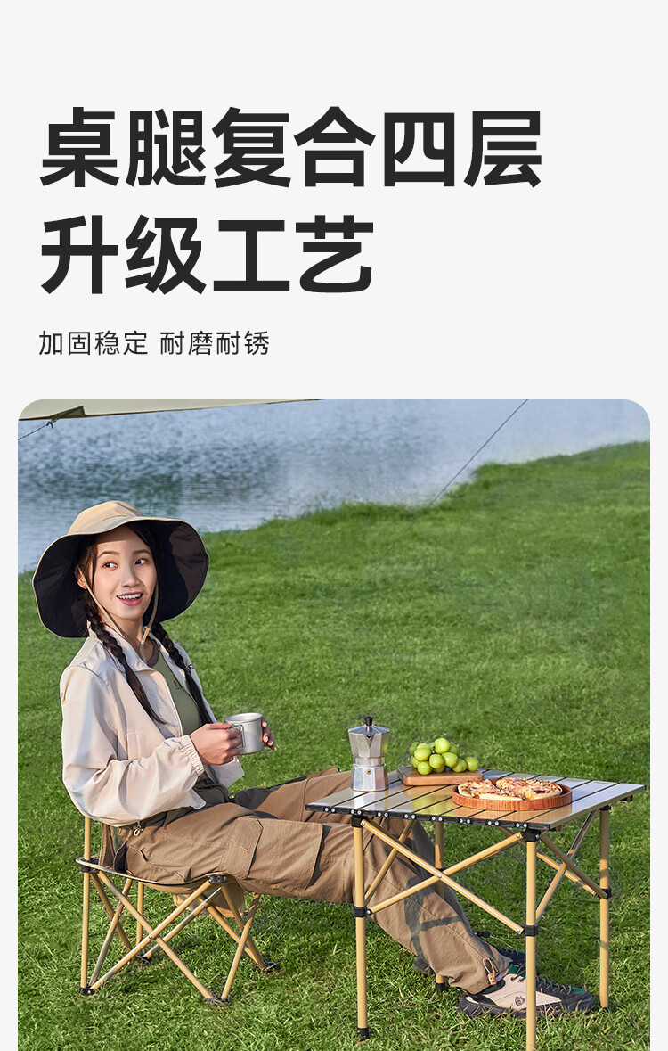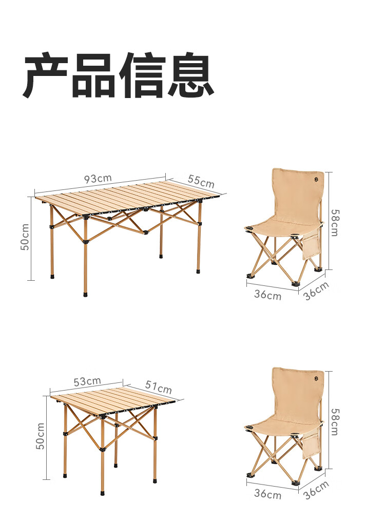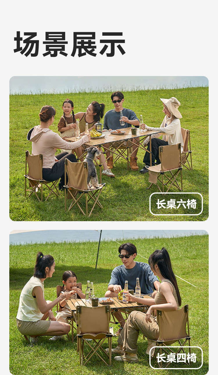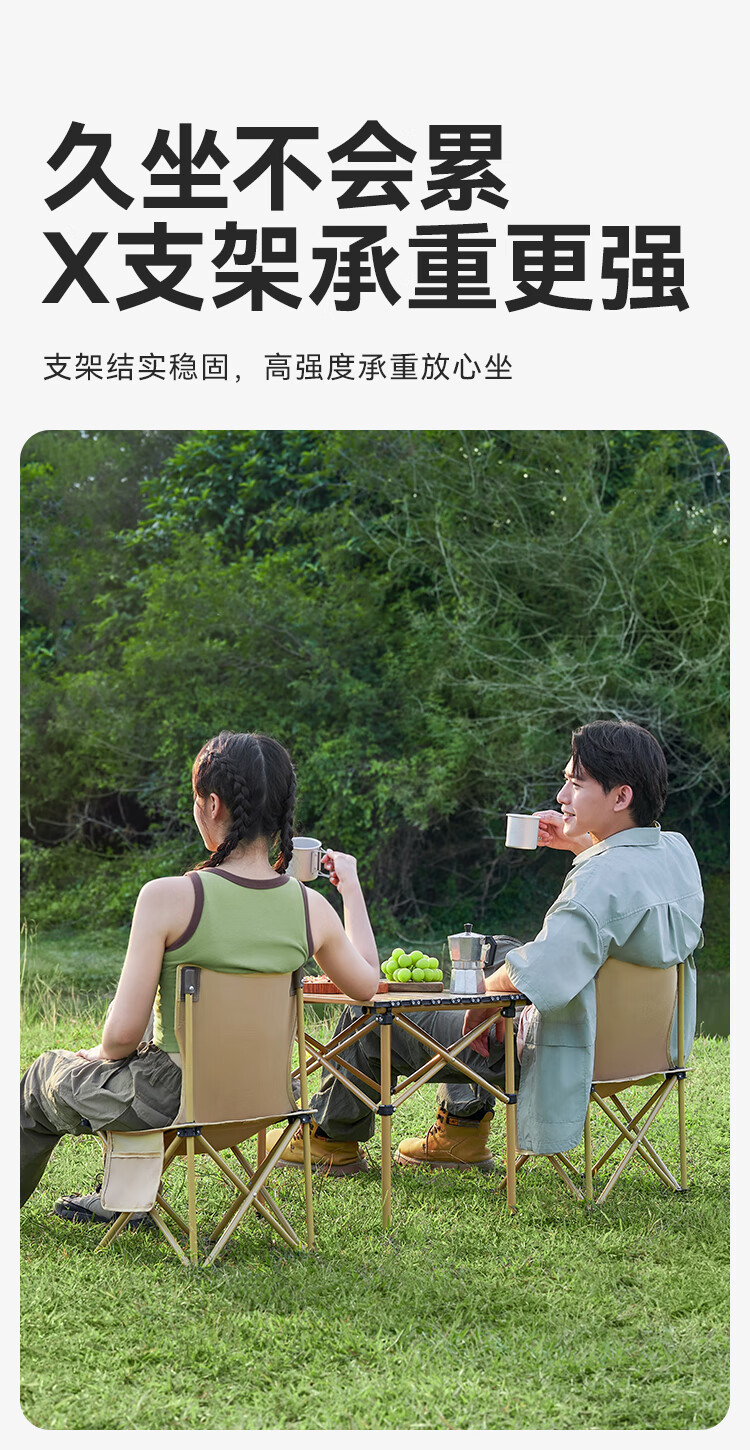 京东京造户外便携桌椅套装 一桌两椅 露营聚会野餐装备 折叠桌椅 沙石色