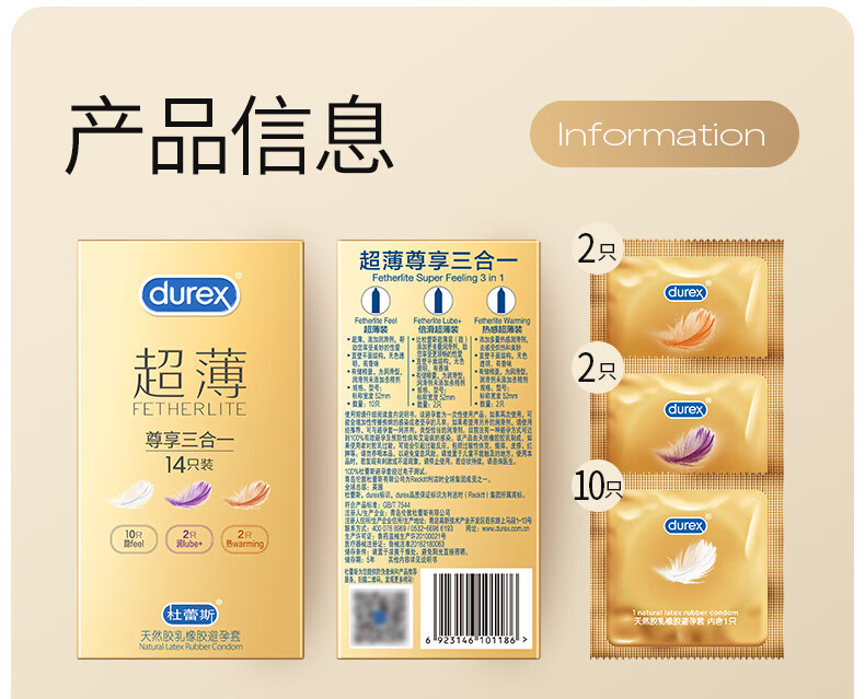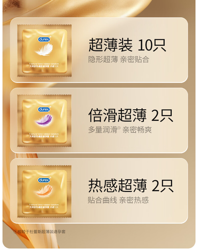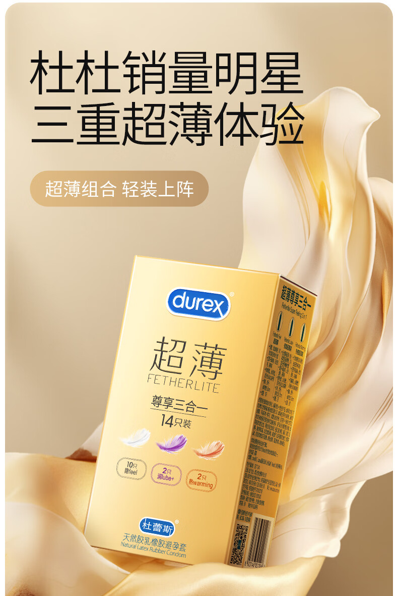 杜蕾斯(durex)超薄尊享避孕套 隐feel男女用安全套 中号热感套套成人计生用品 超薄尊享三合一