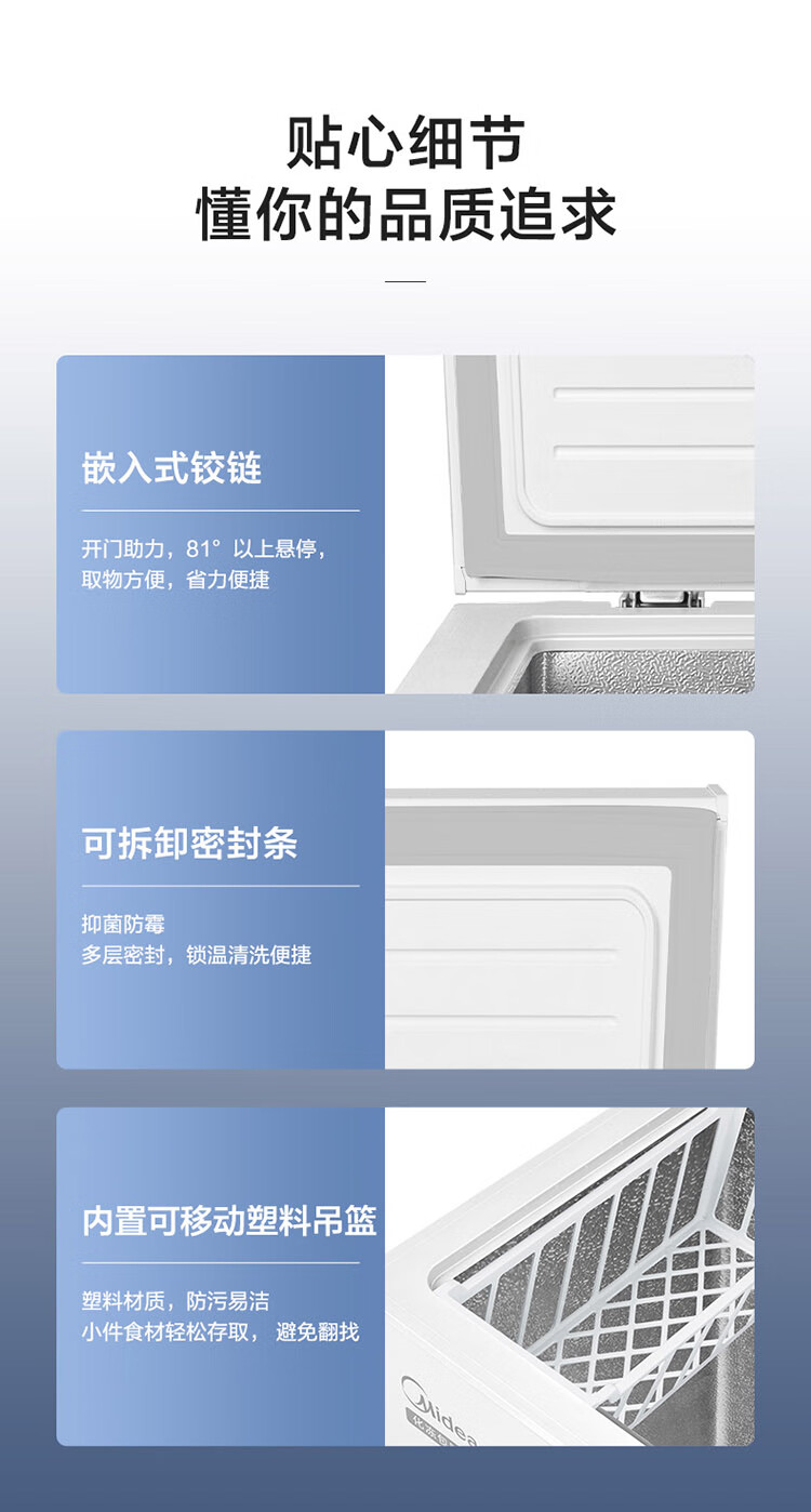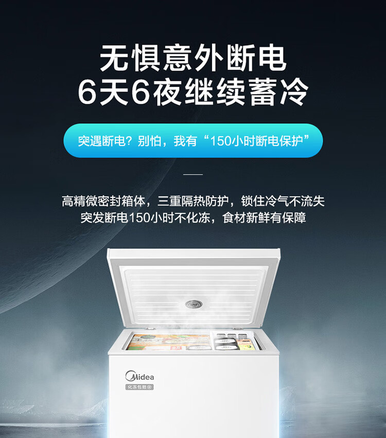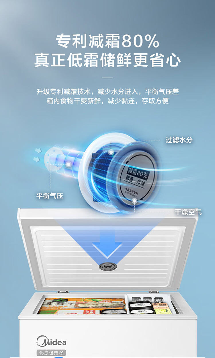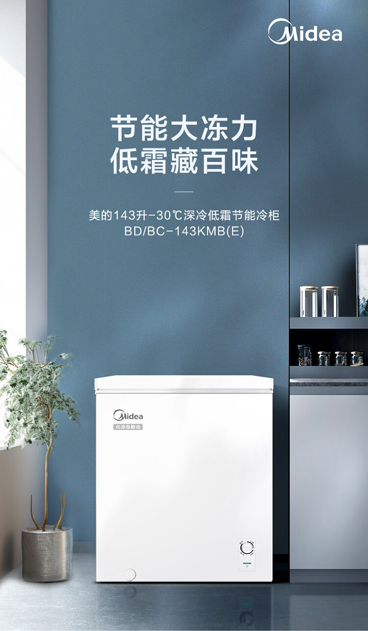 美的(Midea)【专利减霜】200/300升小冰柜单温家用非无霜 -30℃深冷大容量冷柜一级能效冷藏冷冻两用 家电补贴 200升 节能爆款|低温速冻|200KMF(E)