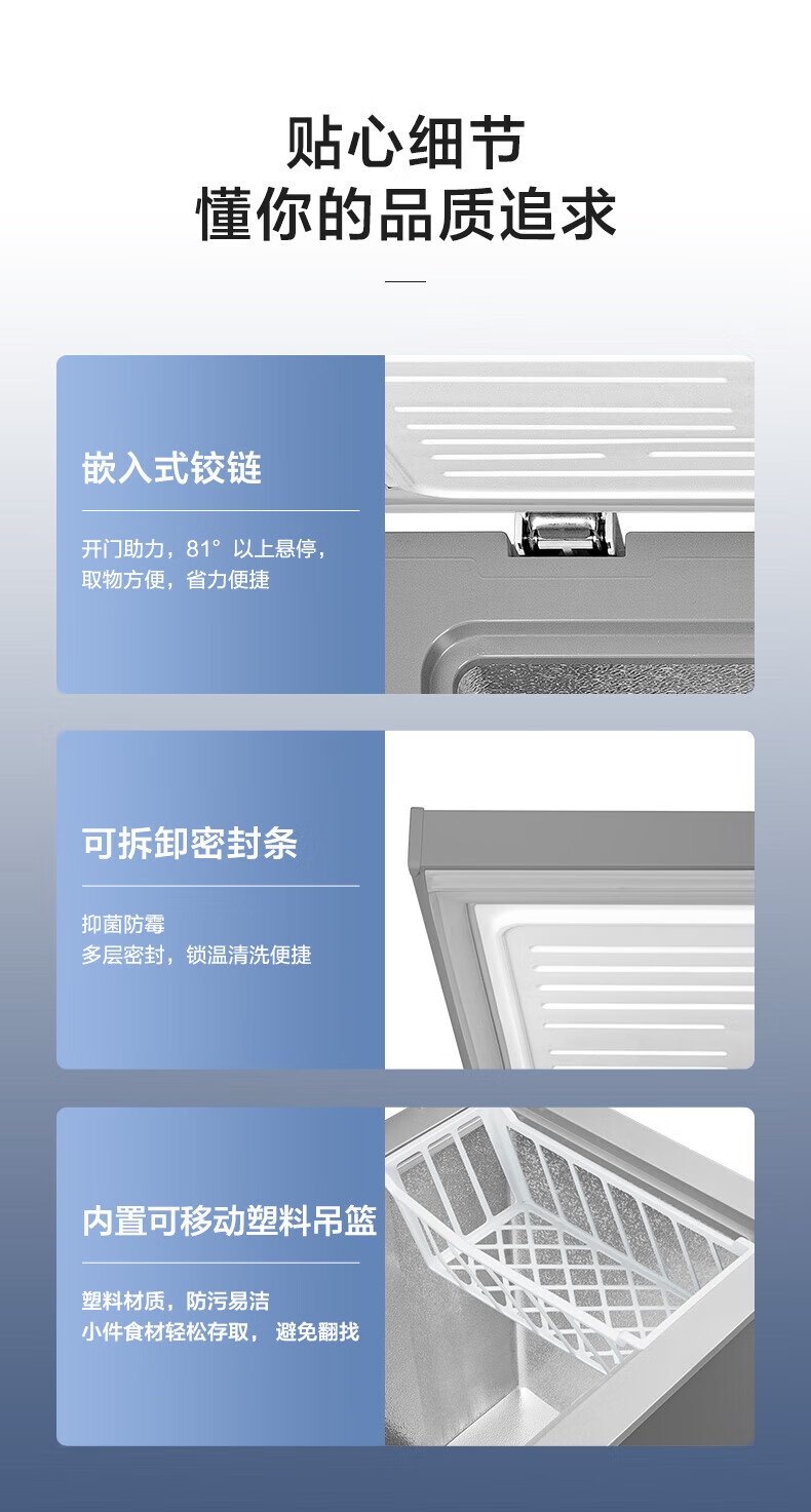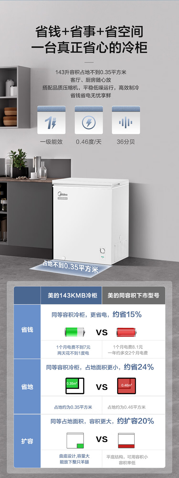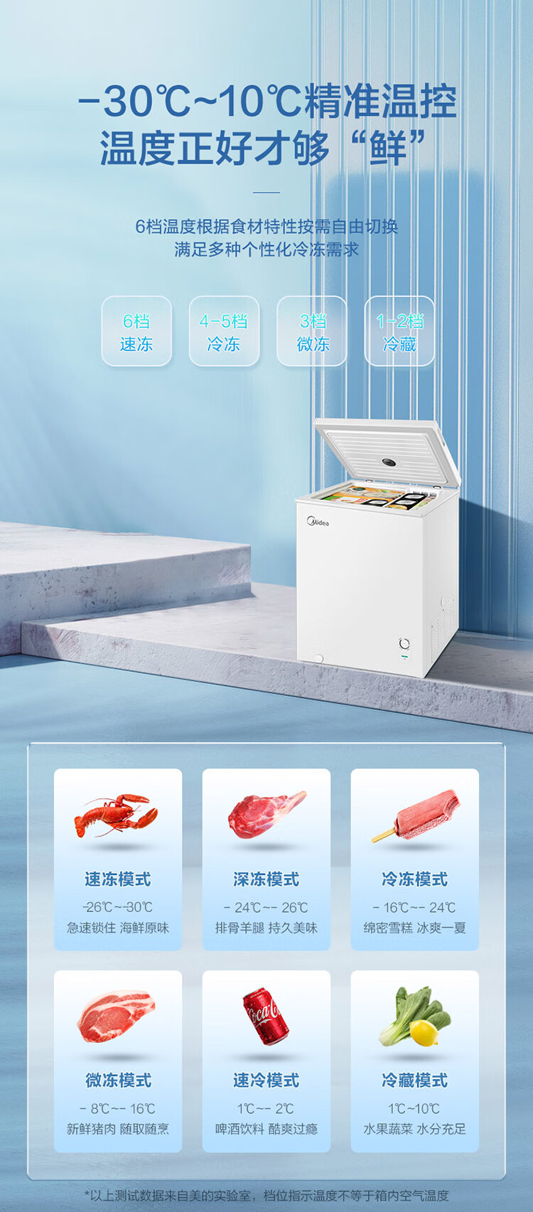 美的(Midea)【专利减霜】200/300升小冰柜单温家用非无霜 -30℃深冷大容量冷柜一级能效冷藏冷冻两用 家电补贴 200升 节能爆款|低温速冻|200KMF(E)