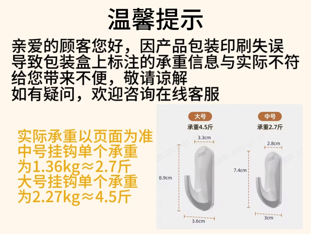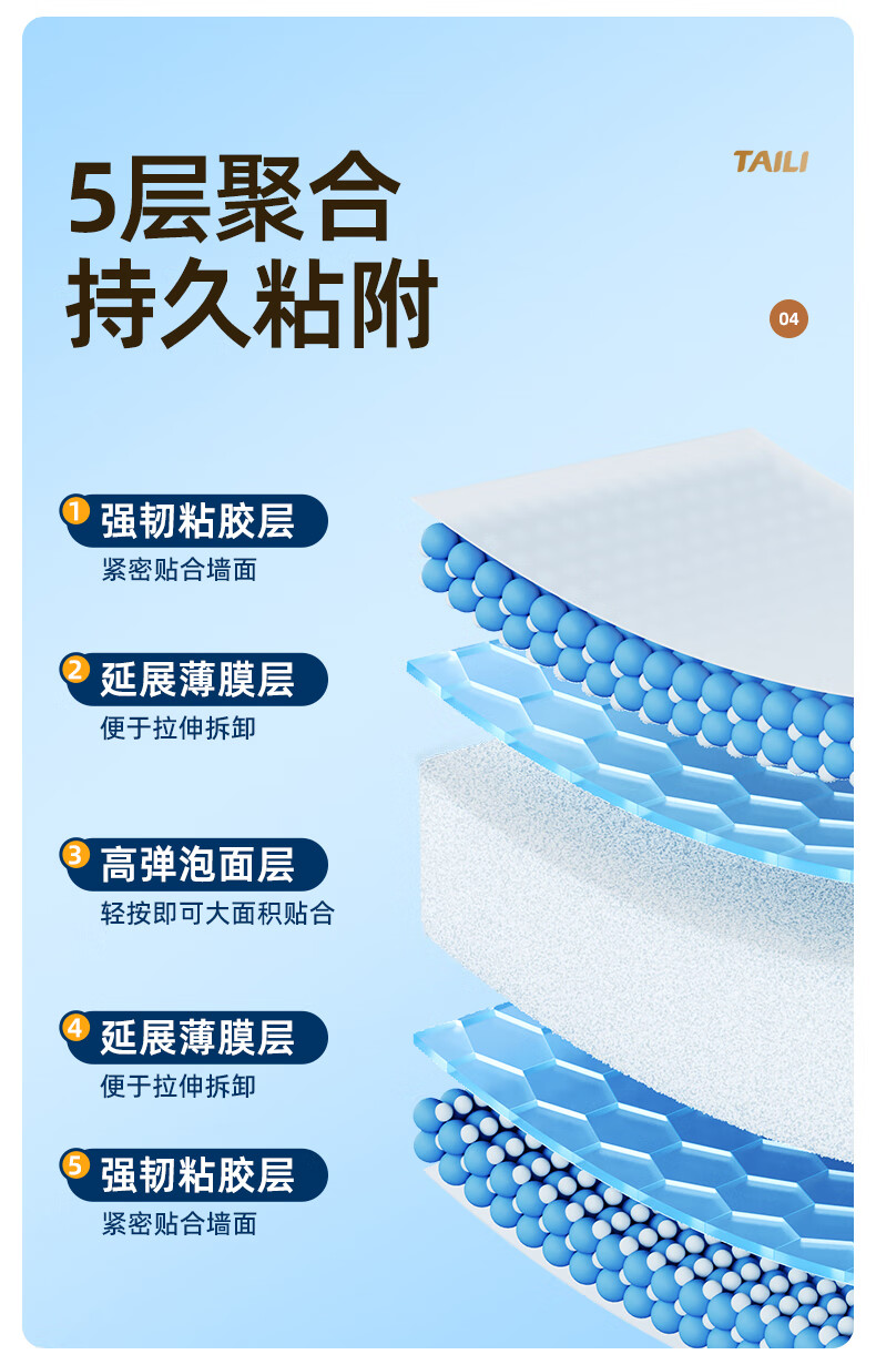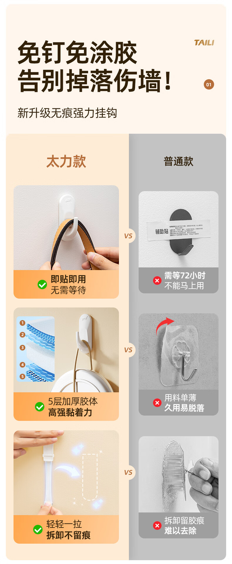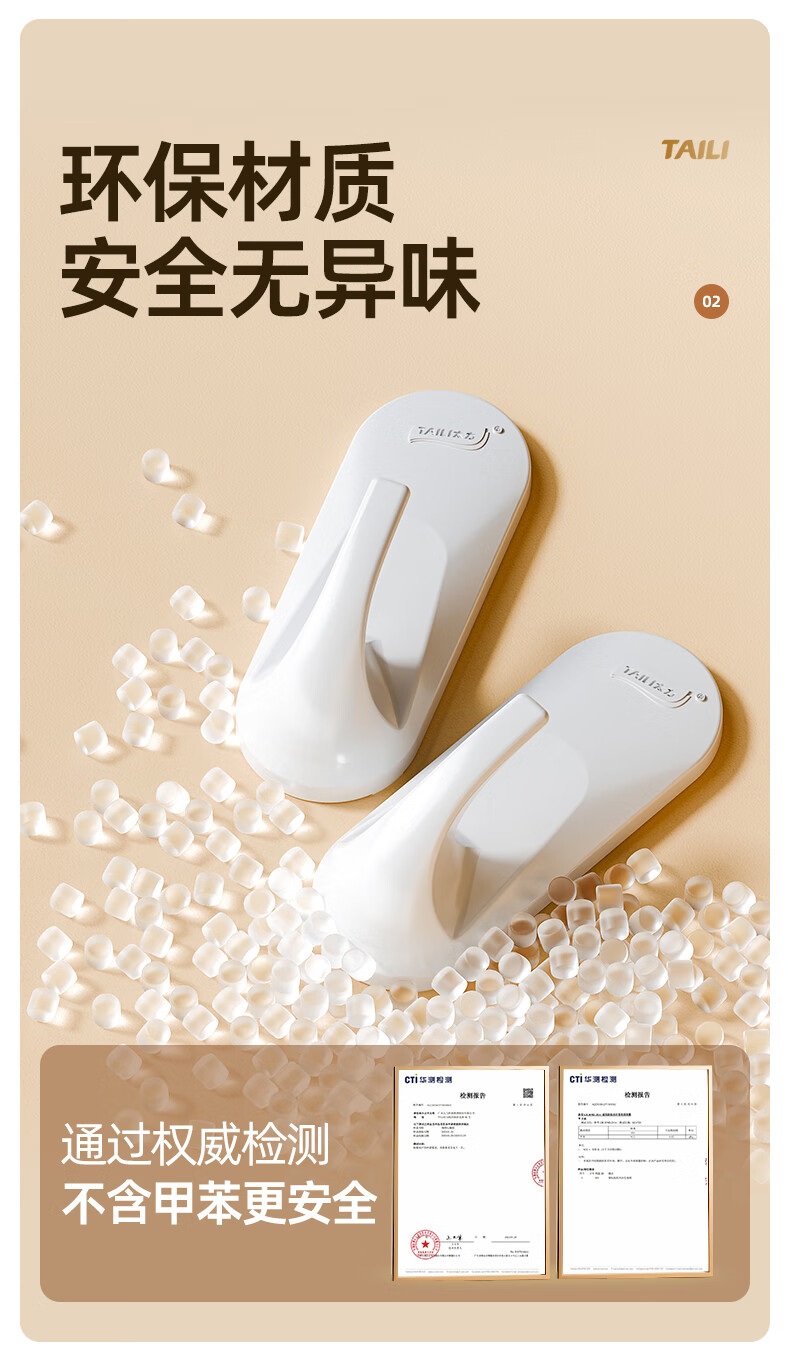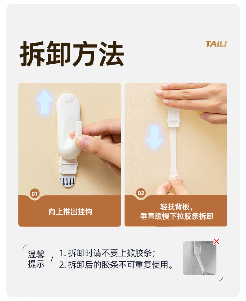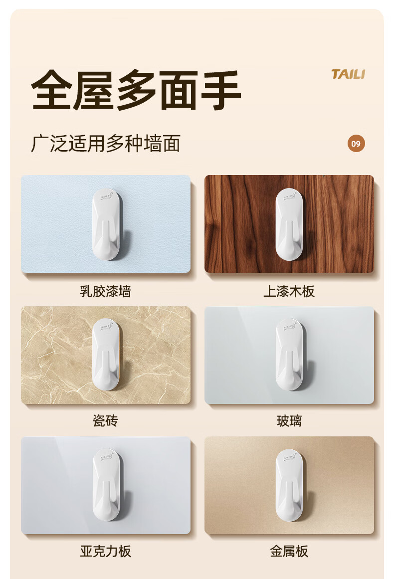太力无痕粘胶挂钩超强粘力免打孔门后挂衣钩乳胶墙面可用中号4个装