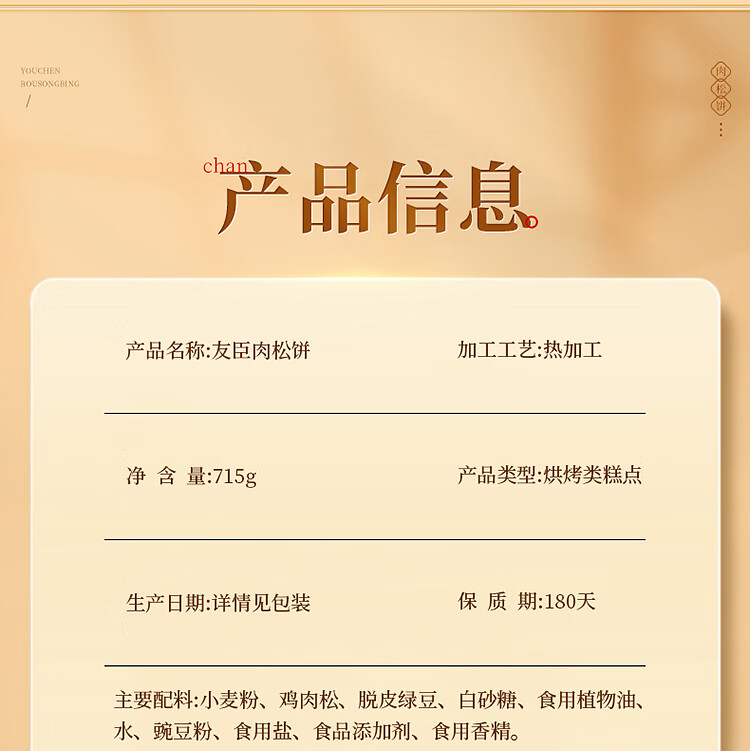 友臣肉松饼 715g 早餐代餐 饼干蛋糕 网红休闲零食 下午茶点 中式糕点