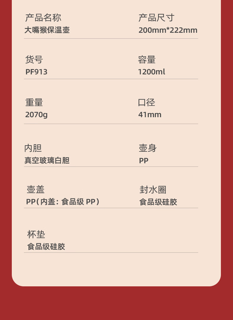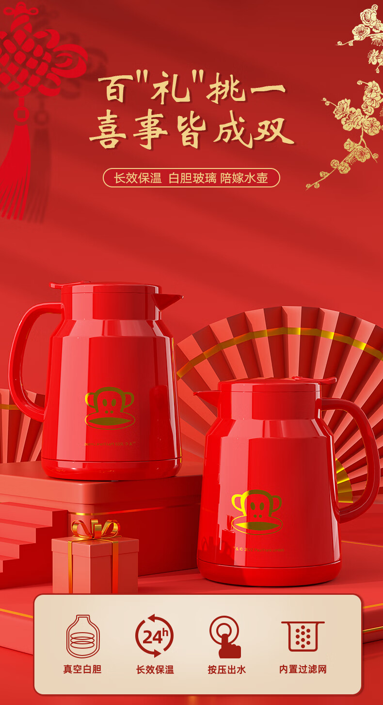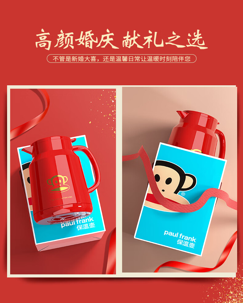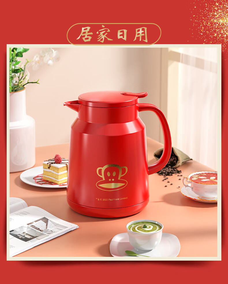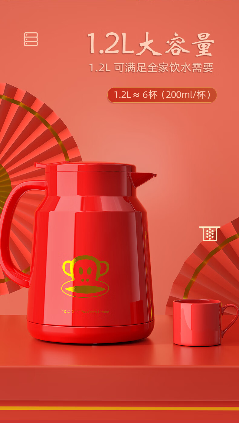 paul frank保温壶PFC913玻璃红胆大容量蓄水壶颜色随机发货