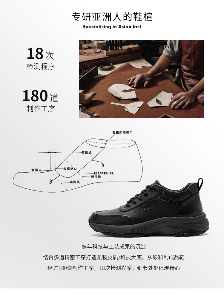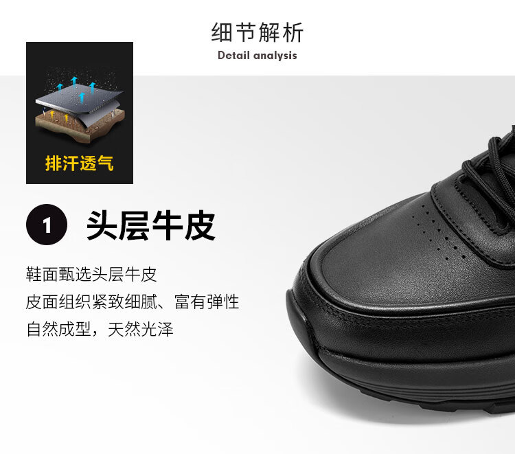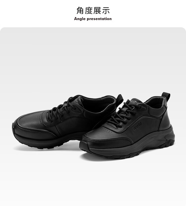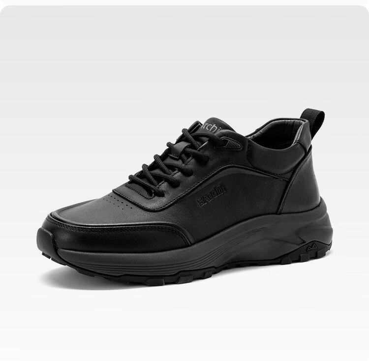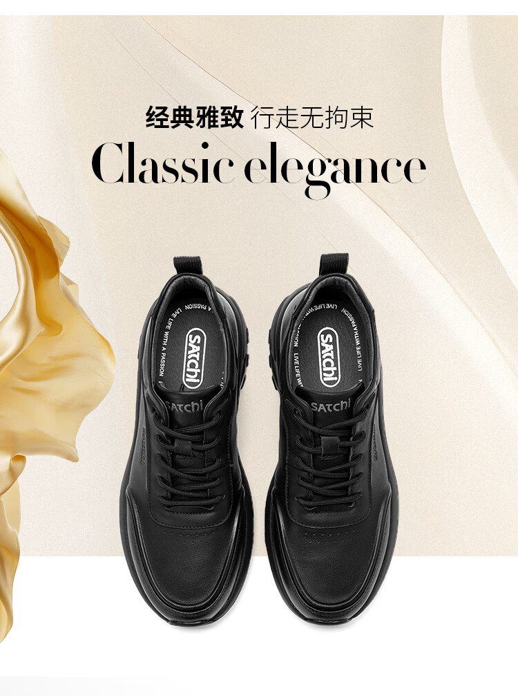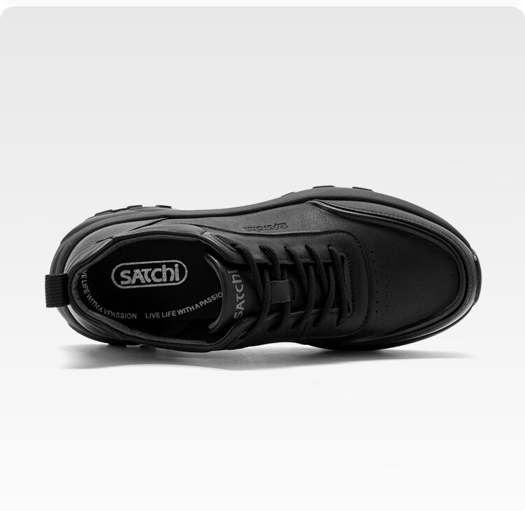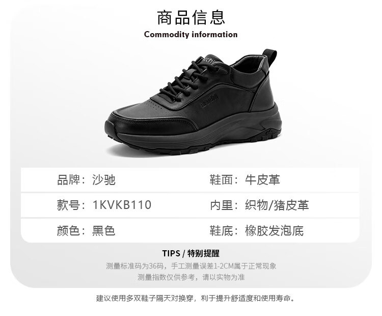 沙驰(SATCHI)男鞋【头层牛皮】轻便舒适通勤休闲鞋跑步鞋运动鞋老爹鞋 黑色(1KVKB110) 37 欧码(选小一码)