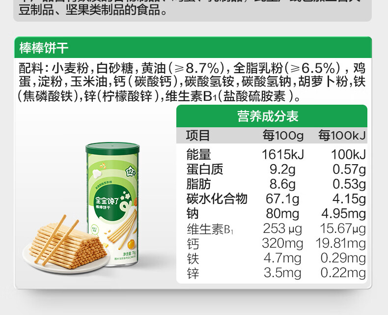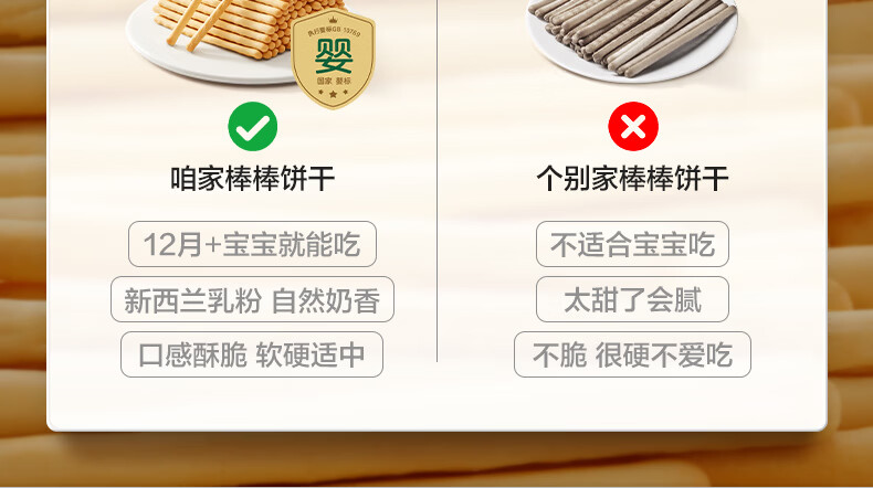 宝宝馋了婴幼儿棒棒饼干手指饼干一岁宝宝零食炭烧棒不添加食盐70g