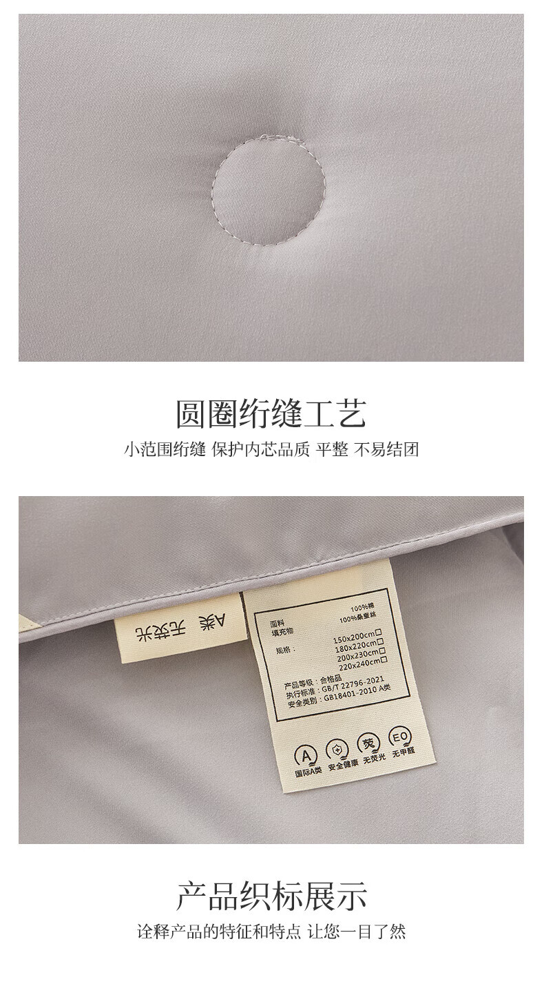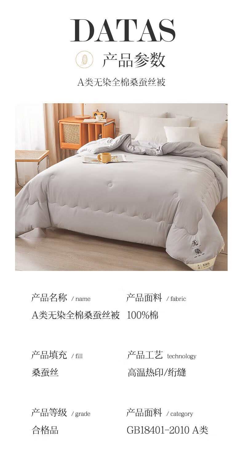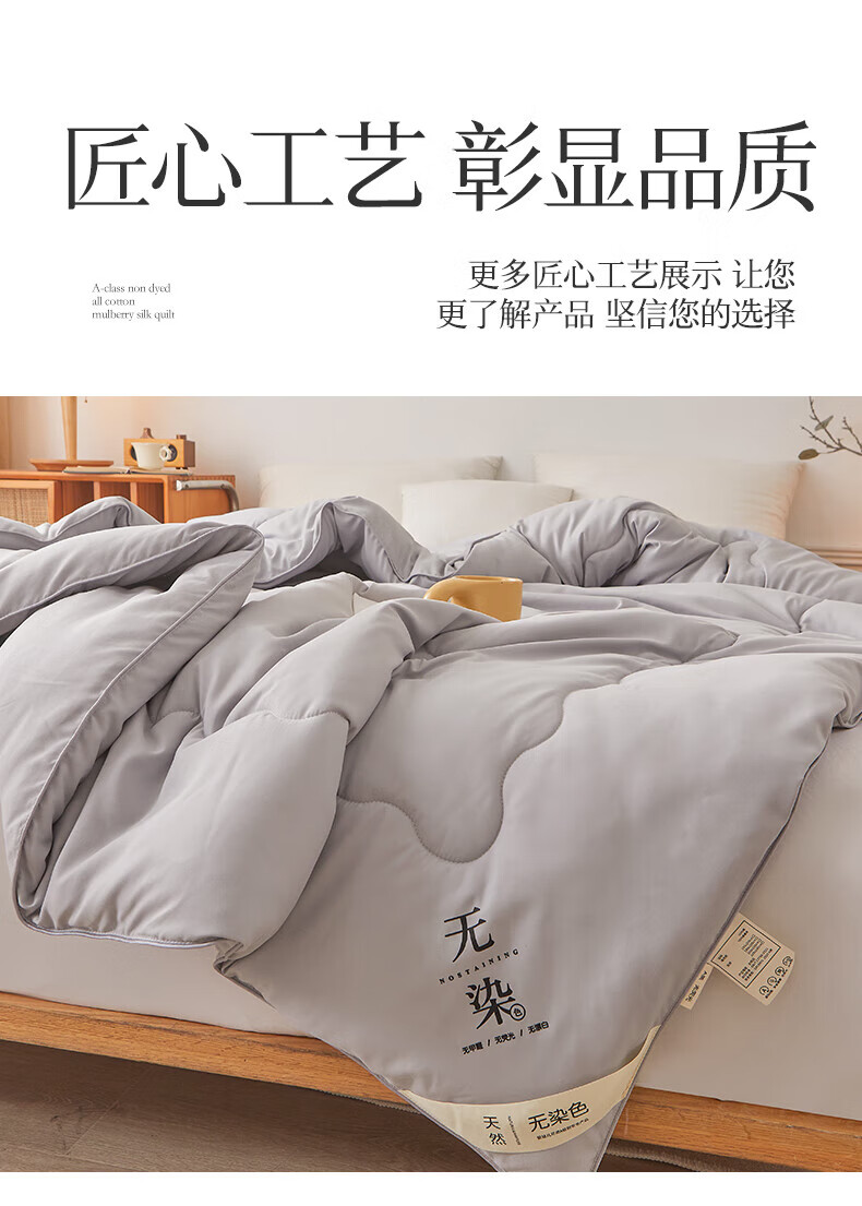 恒源祥A类全棉无染蚕丝被100桑蚕丝被子被芯春秋被加厚保暖8-10斤冬被褥 典雅玉-全棉蚕丝被 150*200cm-8斤冬被