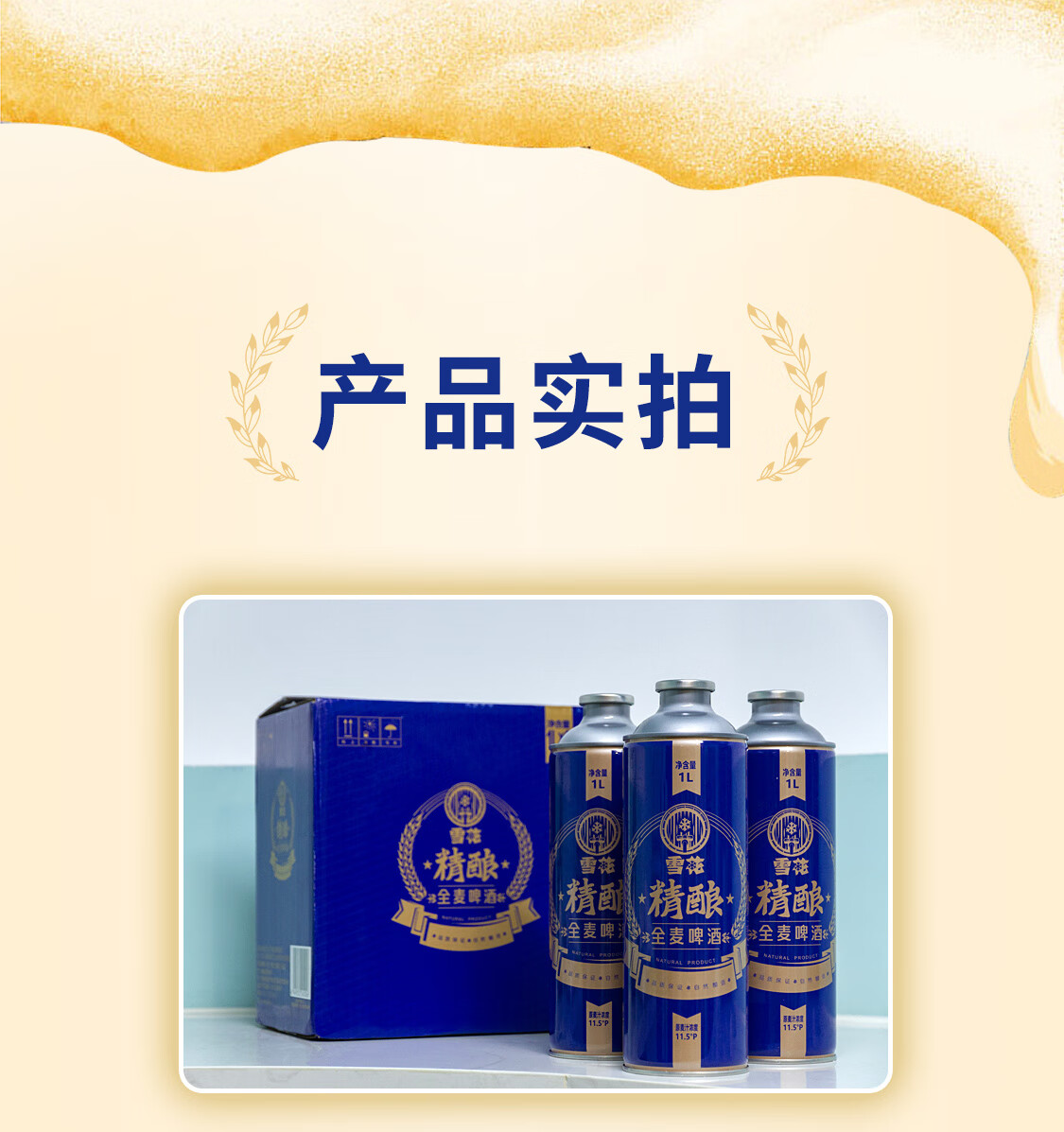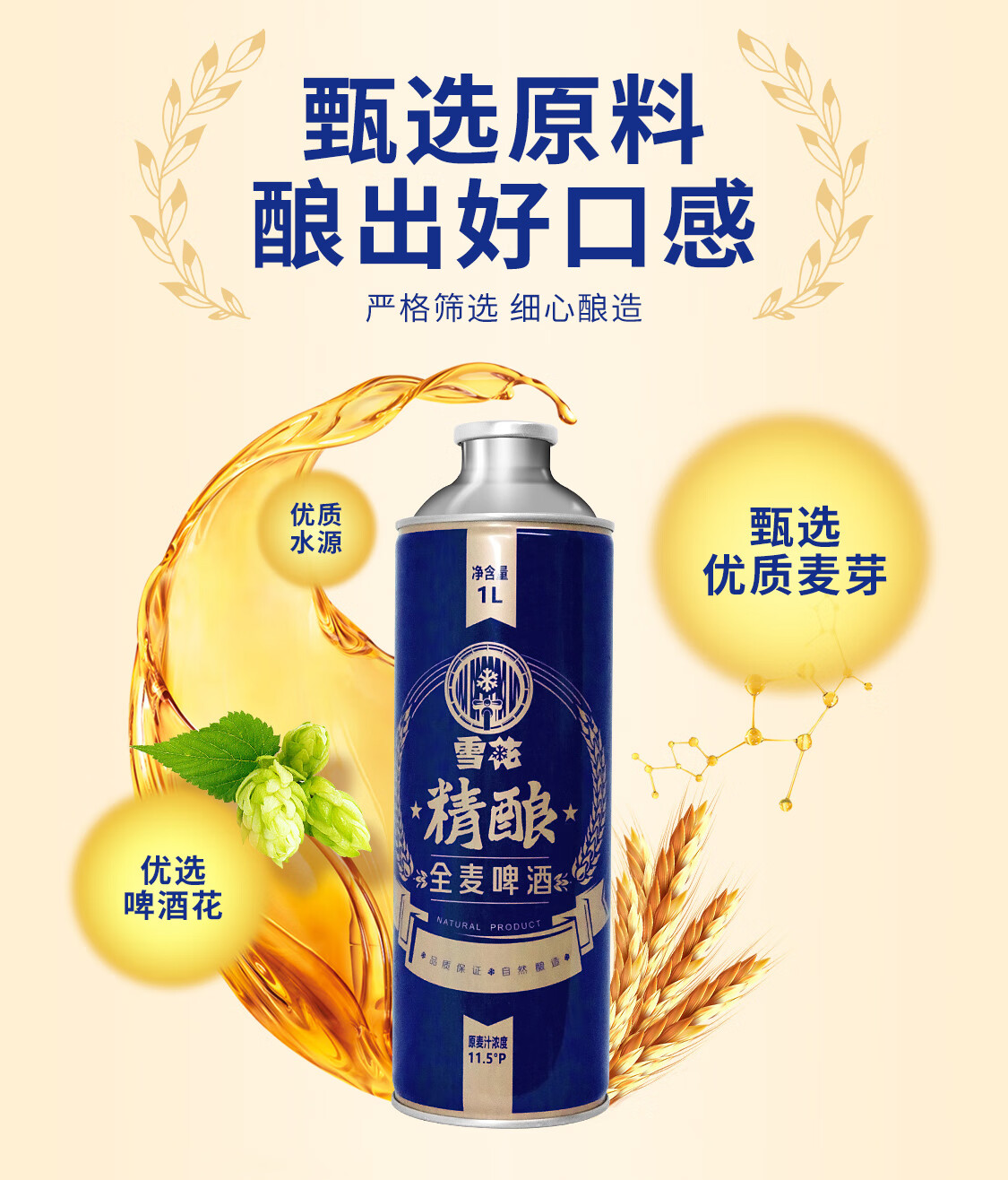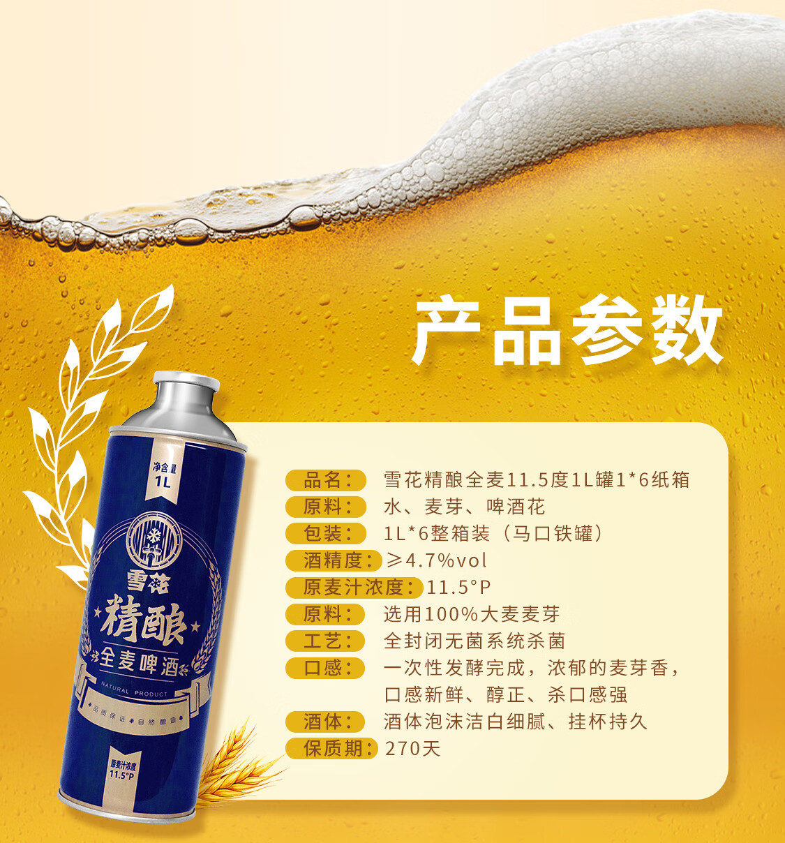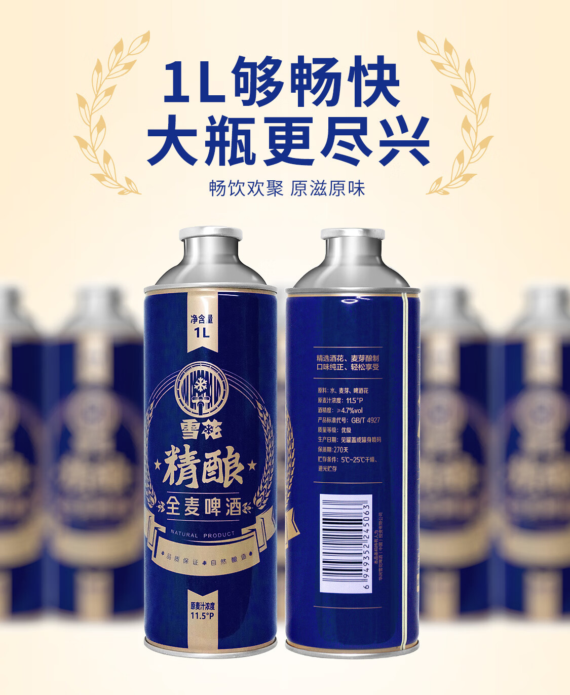 雪花(SNOW)啤酒 全麦精酿11.5度1L*6罐高端精酿大容量全麦芽酿造 新年送礼