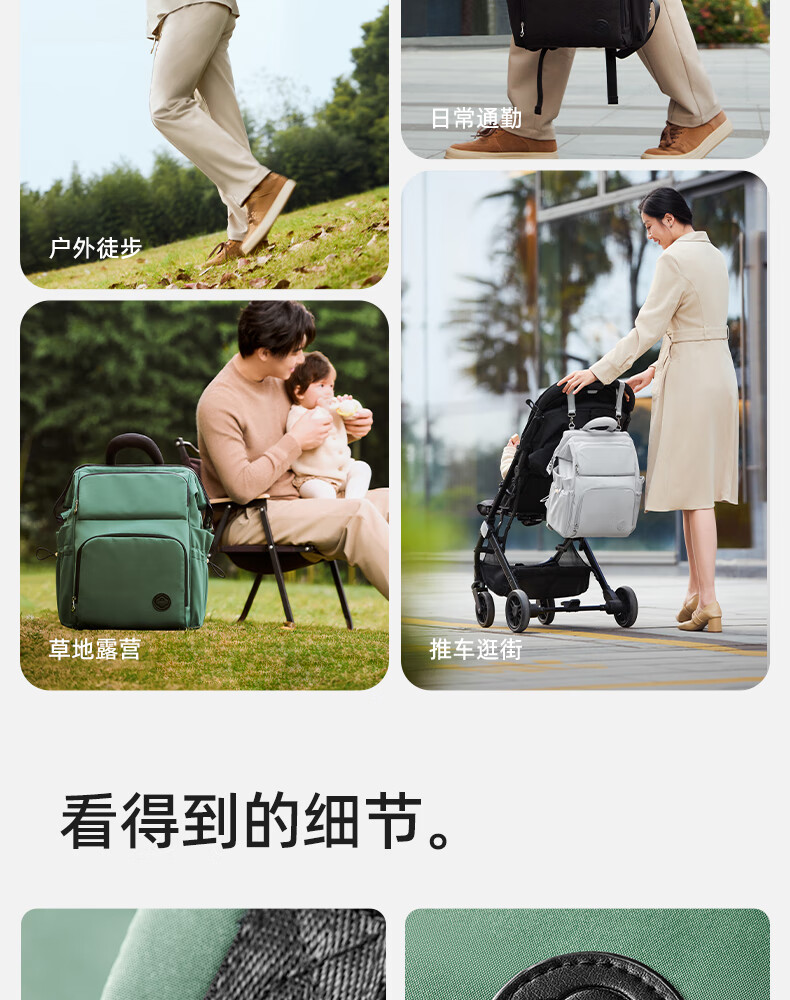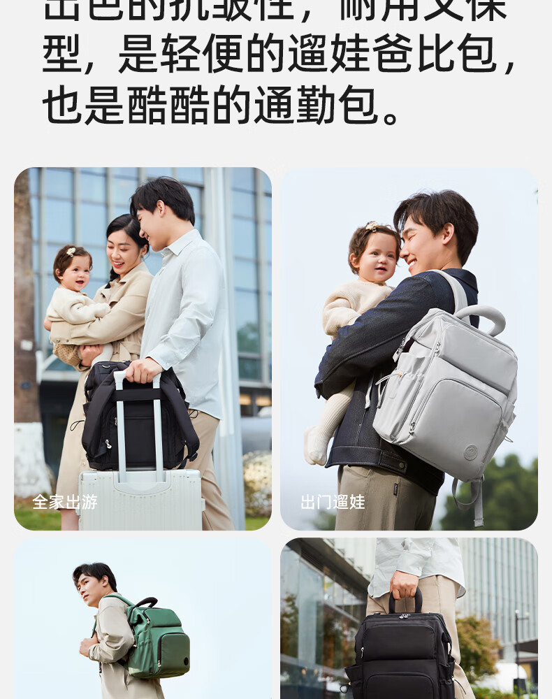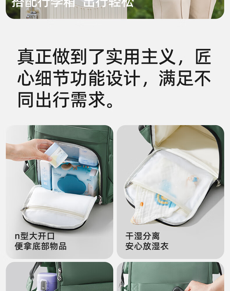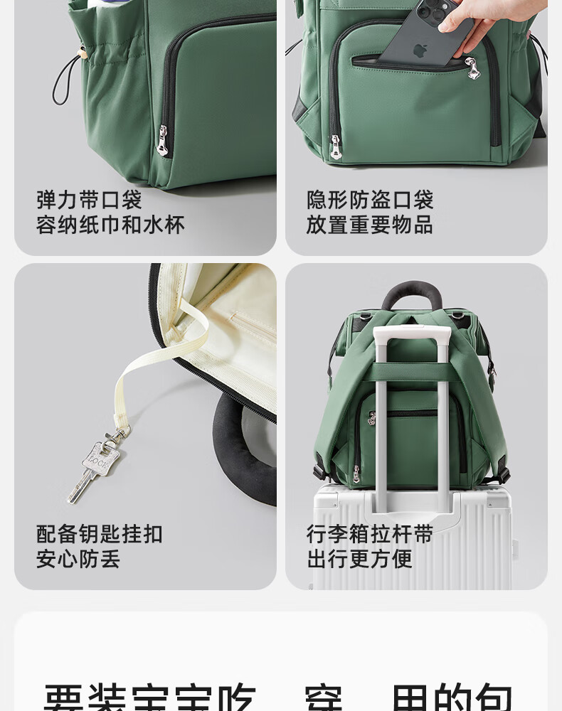 十月结晶妈咪包奶爸上班旅行双肩包多功能大容量母婴包时尚背包 云杉绿