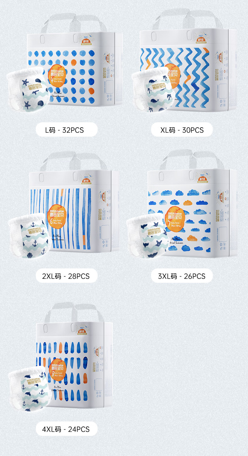 碧芭宝贝盛夏拉拉裤夏季专用薄透气宝宝成长裤薄柔亲肤学步裤 拉拉裤XXL28片*2包(15kg以上)