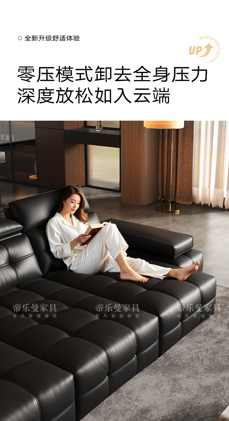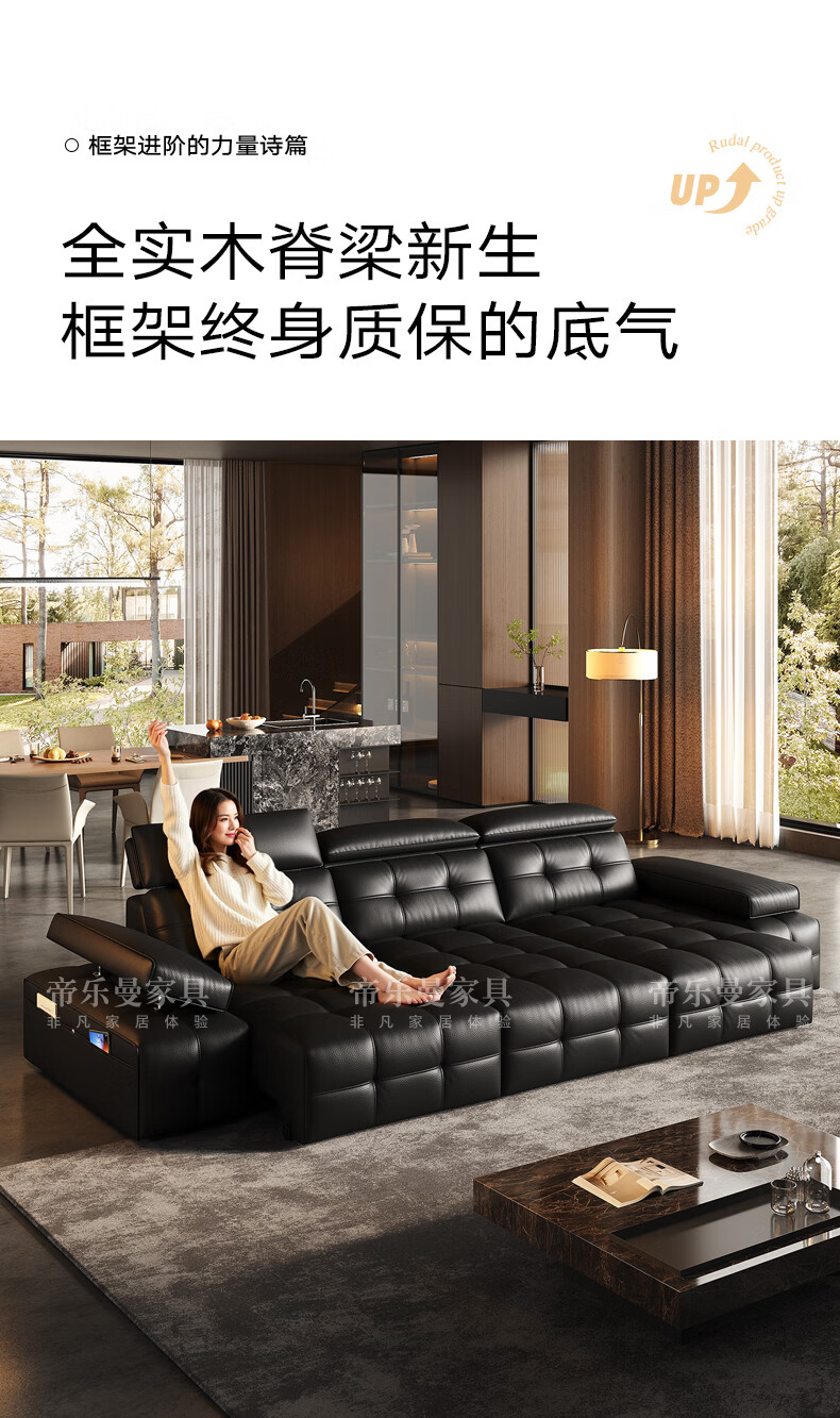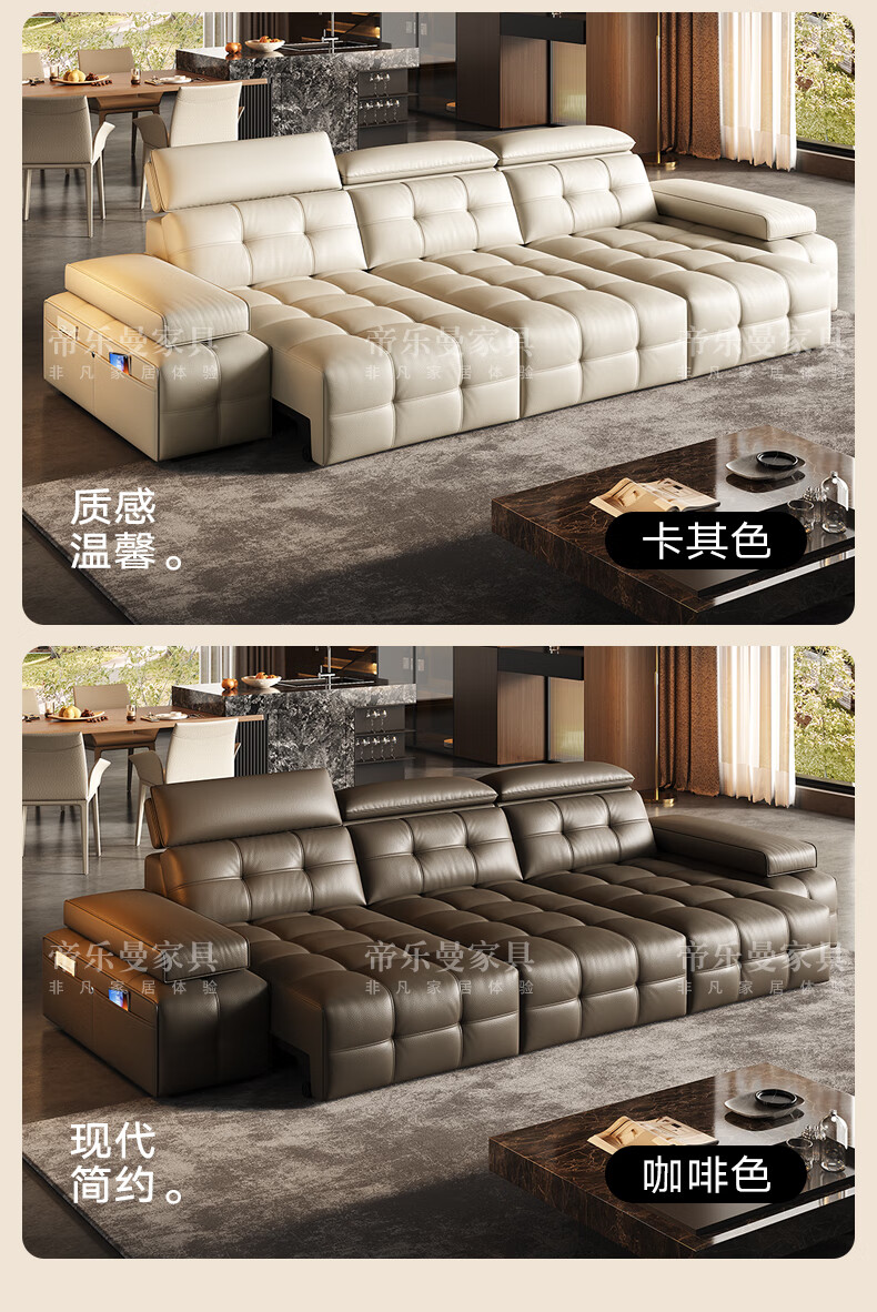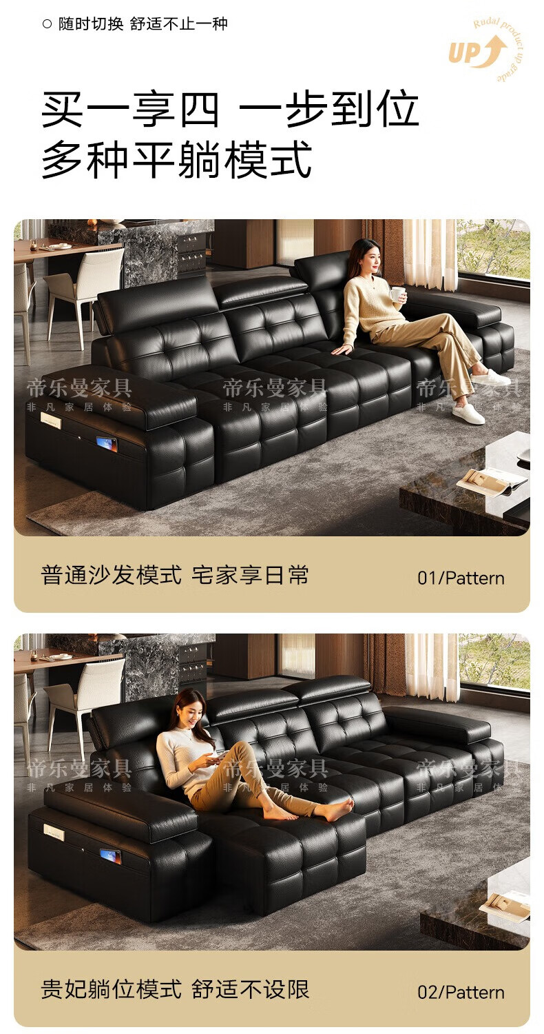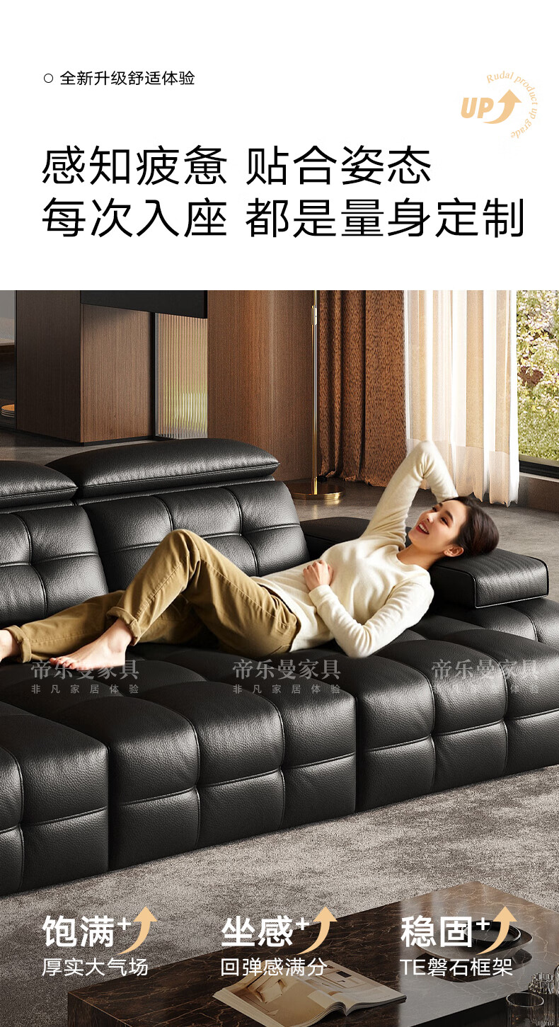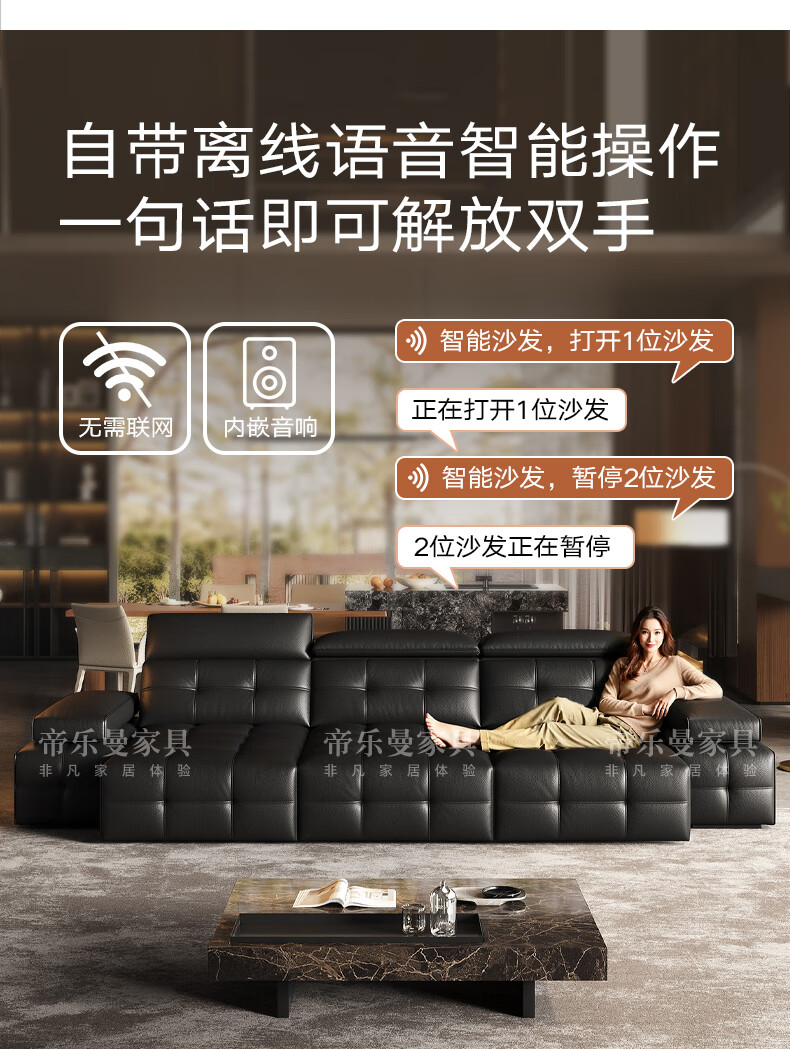 帝乐曼意式极简劳伦斯真皮电动沙发客厅家用2025新款功能沙发皮艺沙发床 【智能·四控】3.0米三位【三电动】 【接触面】2.4mm进口头层真皮