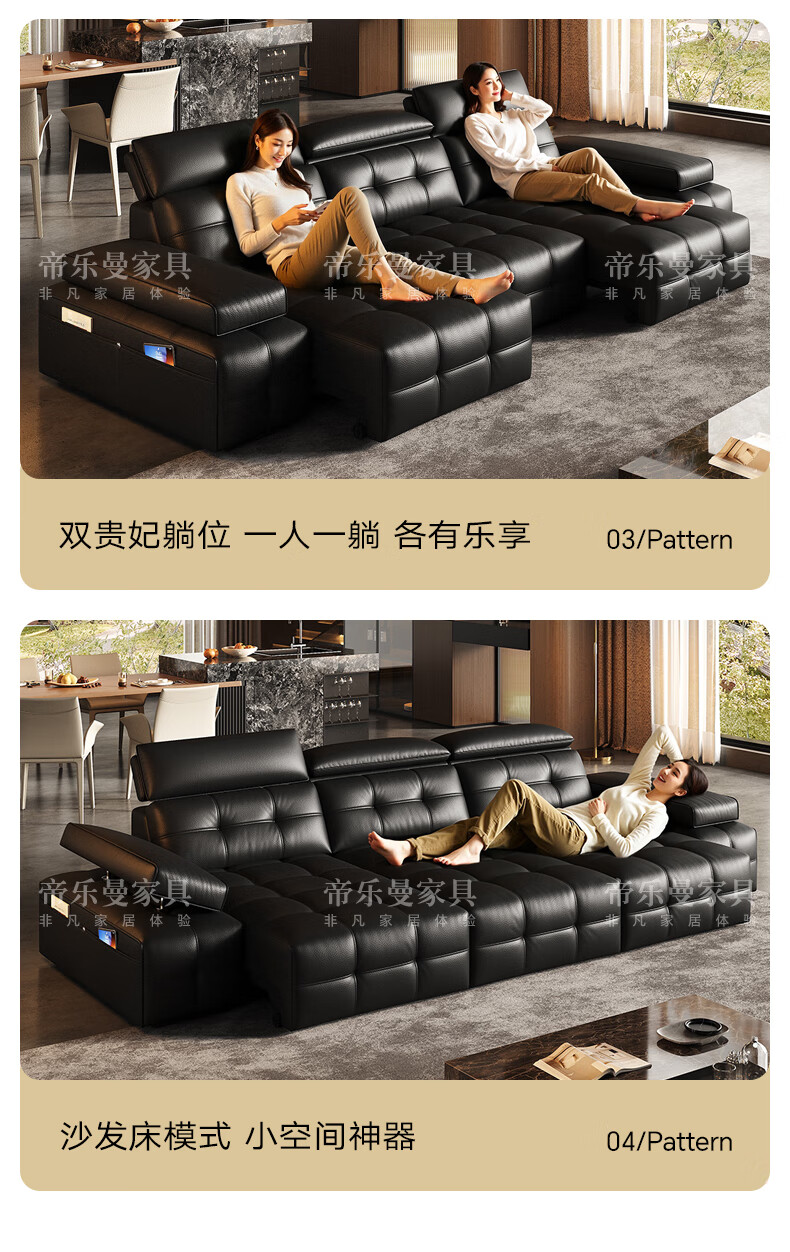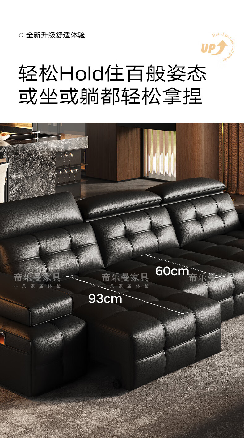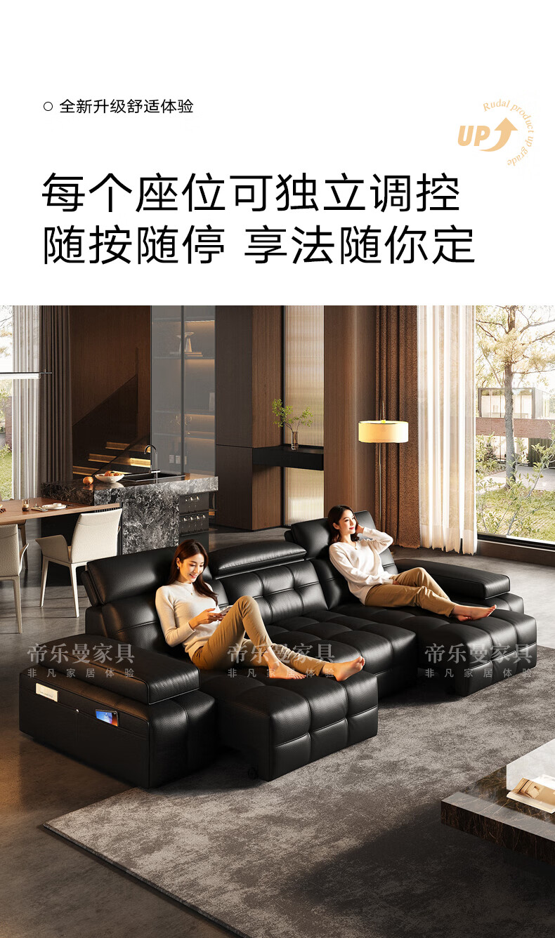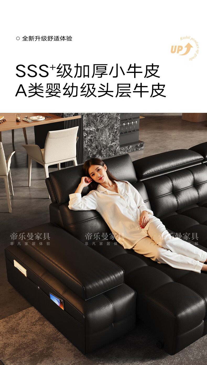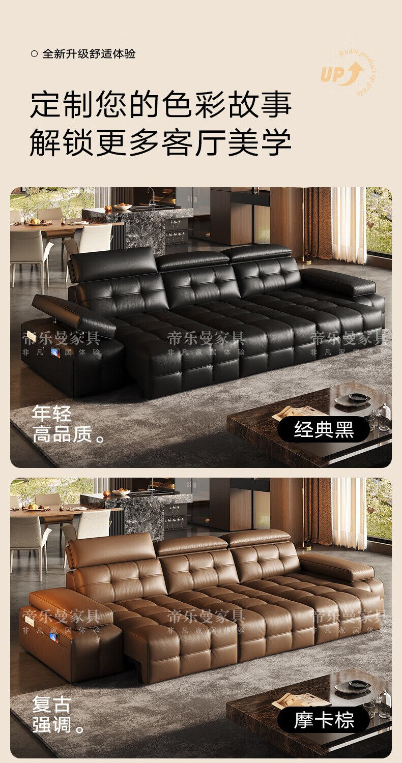 帝乐曼意式极简劳伦斯真皮电动沙发客厅家用2025新款功能沙发皮艺沙发床 【智能·四控】3.0米三位【三电动】 【接触面】2.4mm进口头层真皮