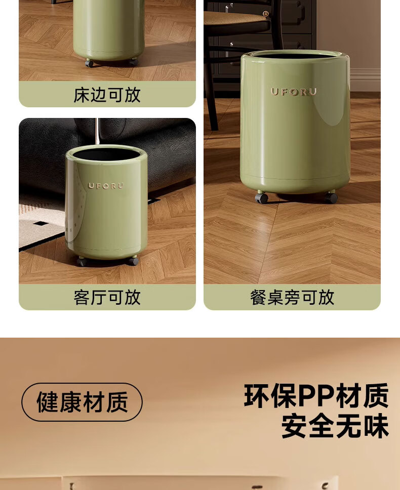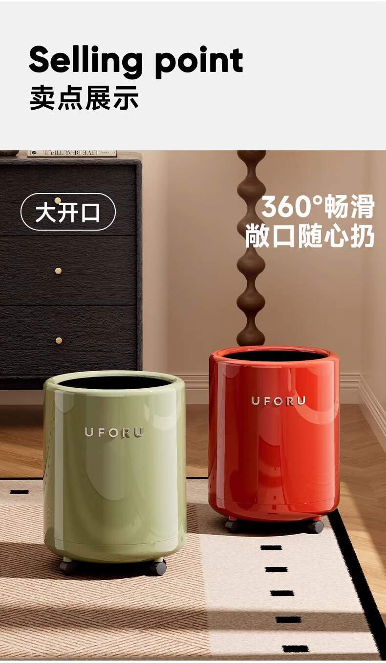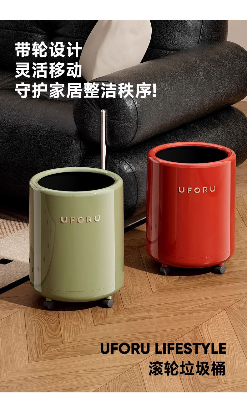 吱凡日本垃圾桶家用2026款客厅高颜值卧室宿舍卫生间大容量高级收纳箱 12L-安可拉红【带轮 360度随心滑】